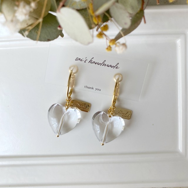 ゆらゆらクリアハートピアス♡⃛ クリアが夏らしくておすすめです⸝⸝⸝ ✧︎ 全長:約6.5cm 1つの重さ:約3g ✔︎金具 ピアス(写真通り)▶︎プラス料金なし 樹脂ピアス▶︎+100円 チタンピアス▶︎+100円 クリップイヤリング▶︎+100円 ネジバネイヤリング▶︎+100円 フープイヤリング▶︎+100円 ✍︎変更希望の方は"金具変更ページ"よりご希望の金具をカートに追加してくださいませ( ⁎ᵕᴗᵕ⁎ ) ✔︎1つ1つ丁寧に作成していますが 海外製パーツを使用した、 素人のハンドメイド作品になりますので 完璧なものをお求めの方はご遠慮くださいませ。