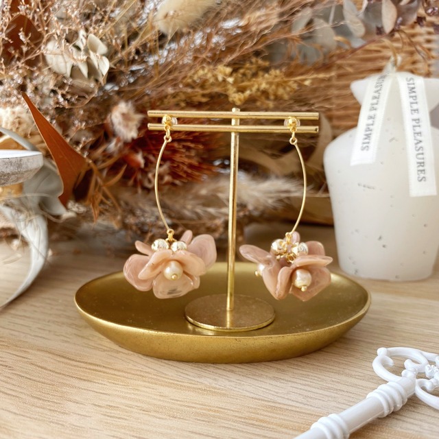 マーブルフラワーの揺れるアクセサリー ⚮̈ .゜ クリアベージュなのでどんなスタイルでも合わせやすいです✧‧˚ 全長:約5.5cm 重さ:約7g ✔︎金具 ピアス(写真通り)▶︎プラス料金なし 樹脂ピアス▶︎+100円 チタンピアス▶︎+100円 クリップイヤリング▶︎+100円 ネジバネイヤリング▶︎+100円 フープイヤリング▶︎+100円 ✍︎変更希望の方は"金具変更ページ"よりご希望の金具をカートに追加してくださいませ( ⁎ᵕᴗᵕ⁎ ) ✔︎1つ1つ丁寧に作成していますが 海外製パーツを使用した、 素人のハンドメイド作品になりますので 完璧なものをお求めの方はご遠慮くださいませ。