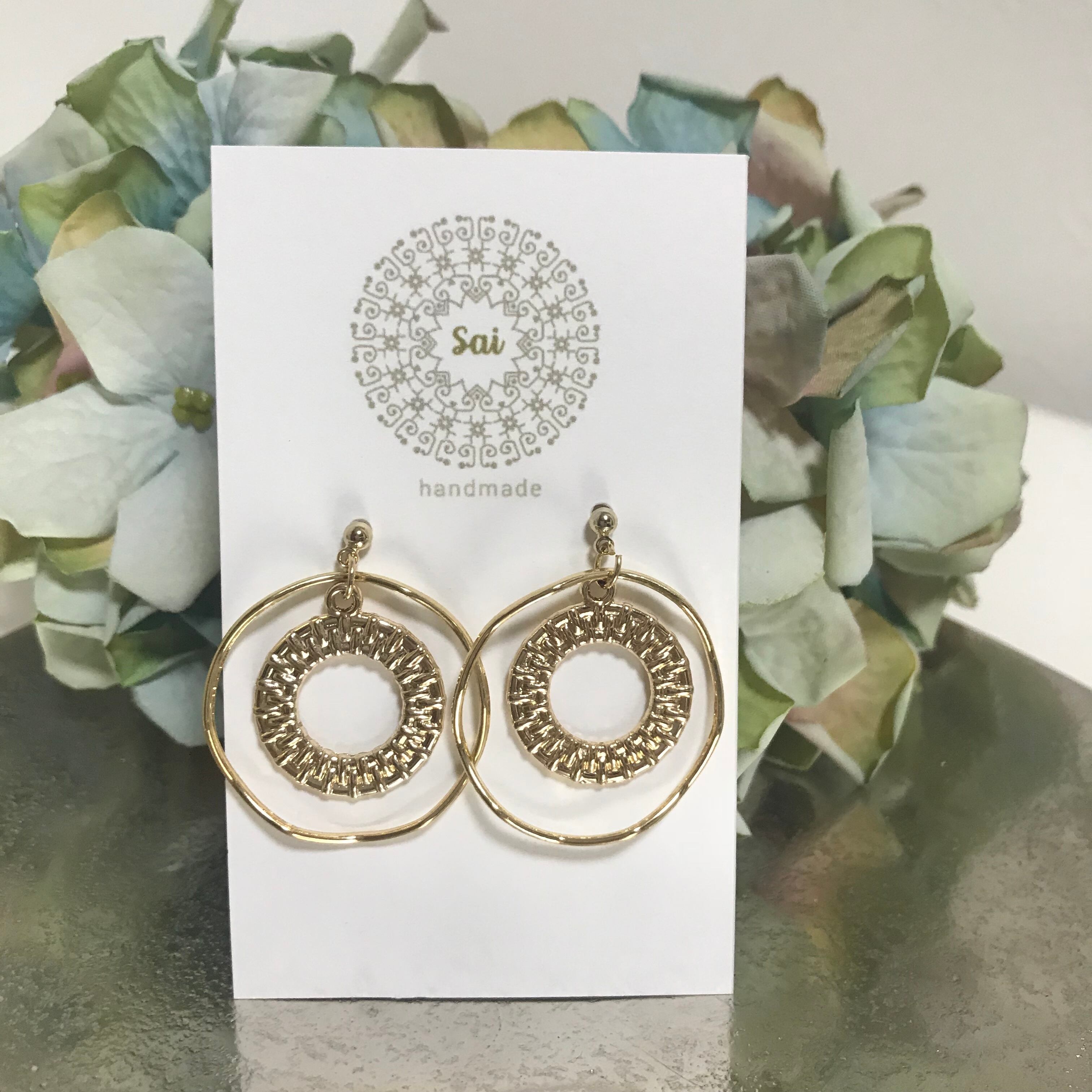 ゴールド二重フープピアス