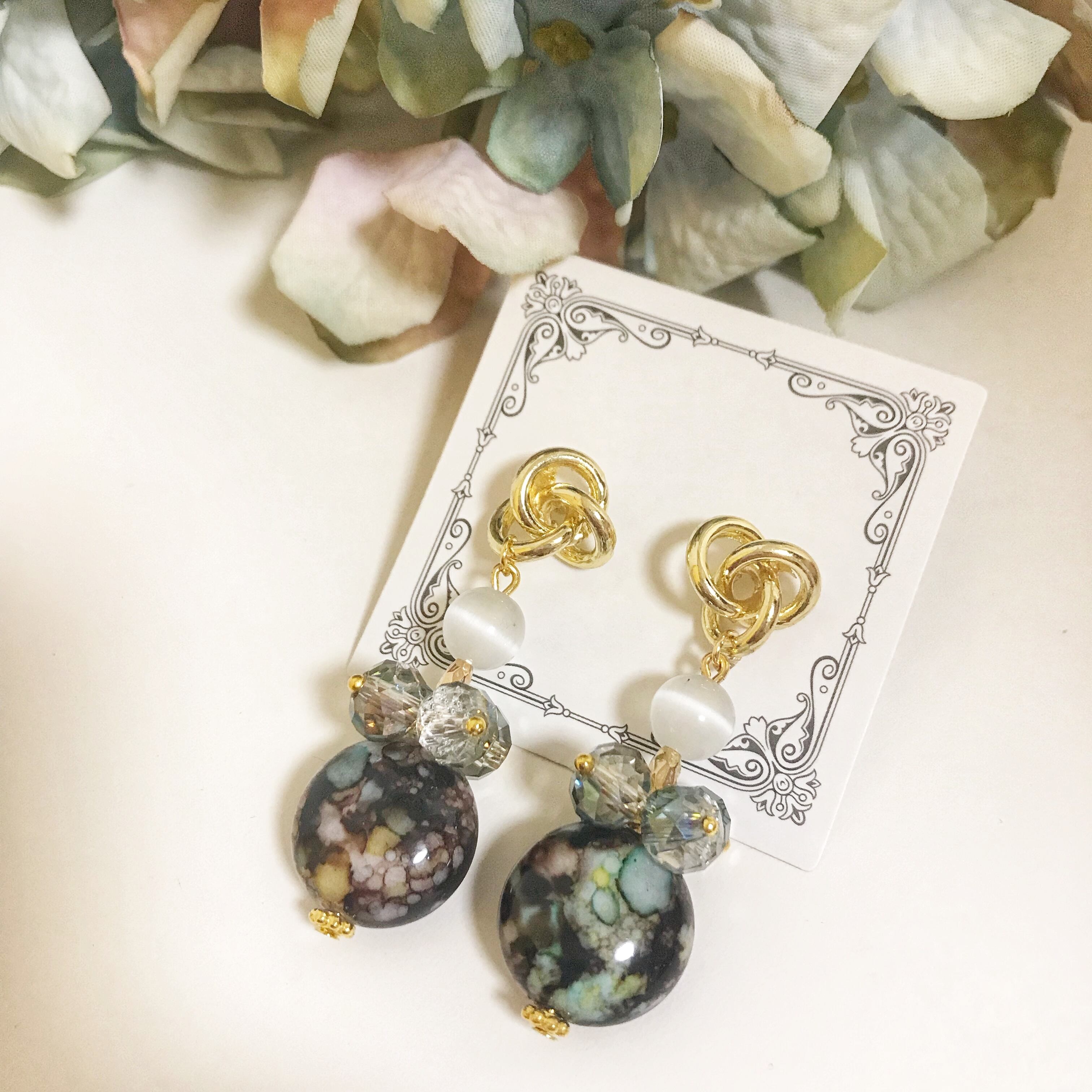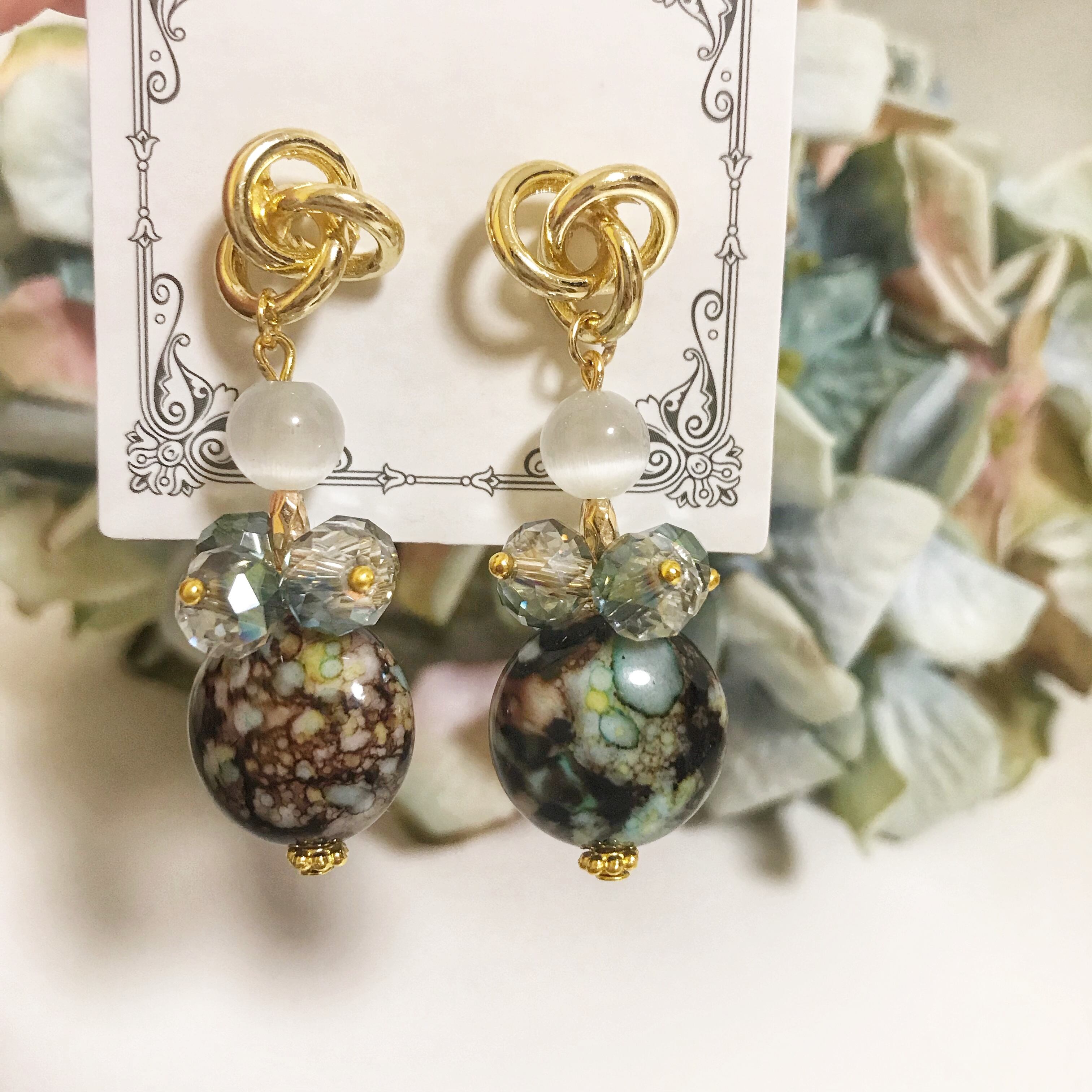アンティークビーズに天然石のホワイトキャッツアイ、カットガラスを合わせました❤︎