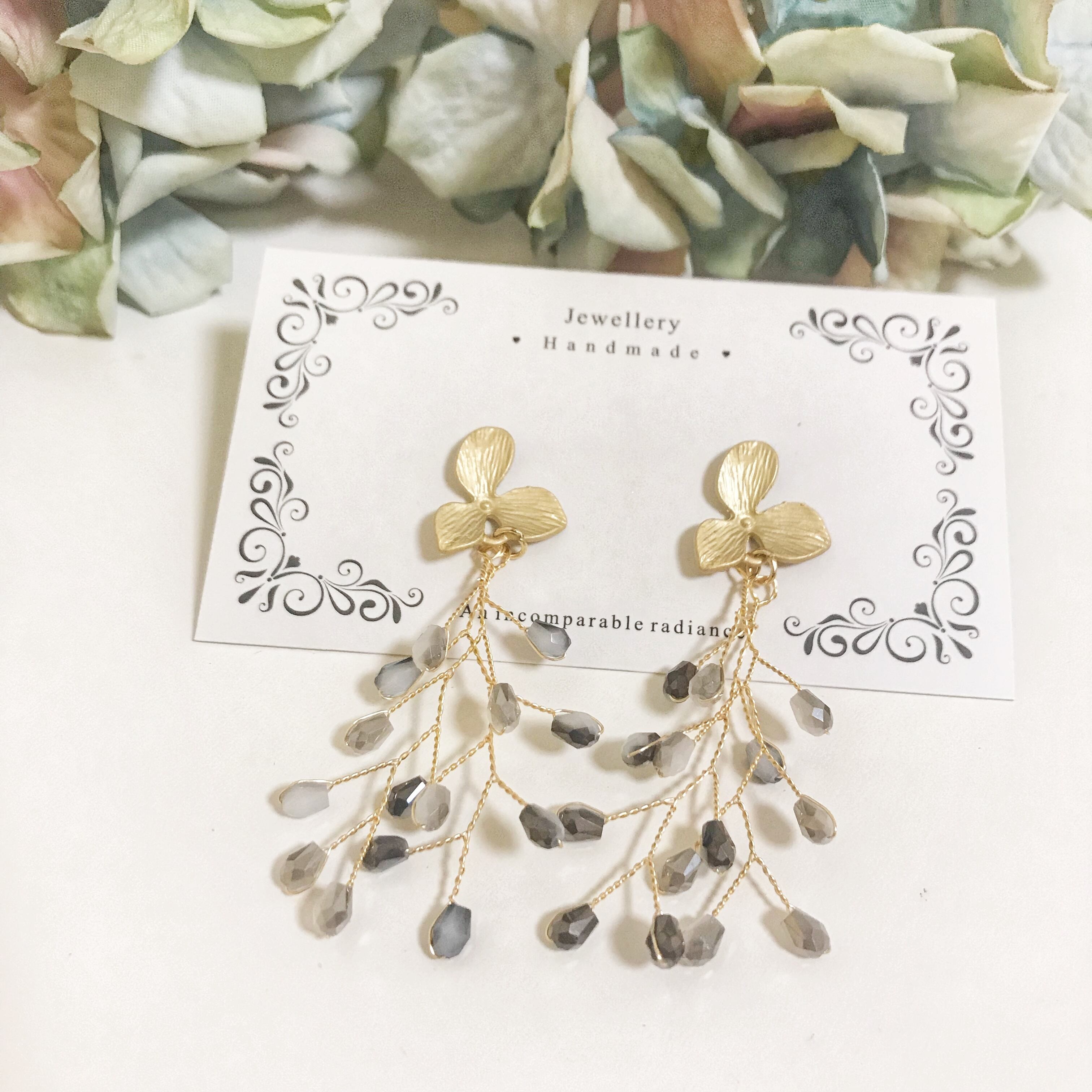 マットゴールドのフラワーに2色のクリスタルを合わせました❤︎