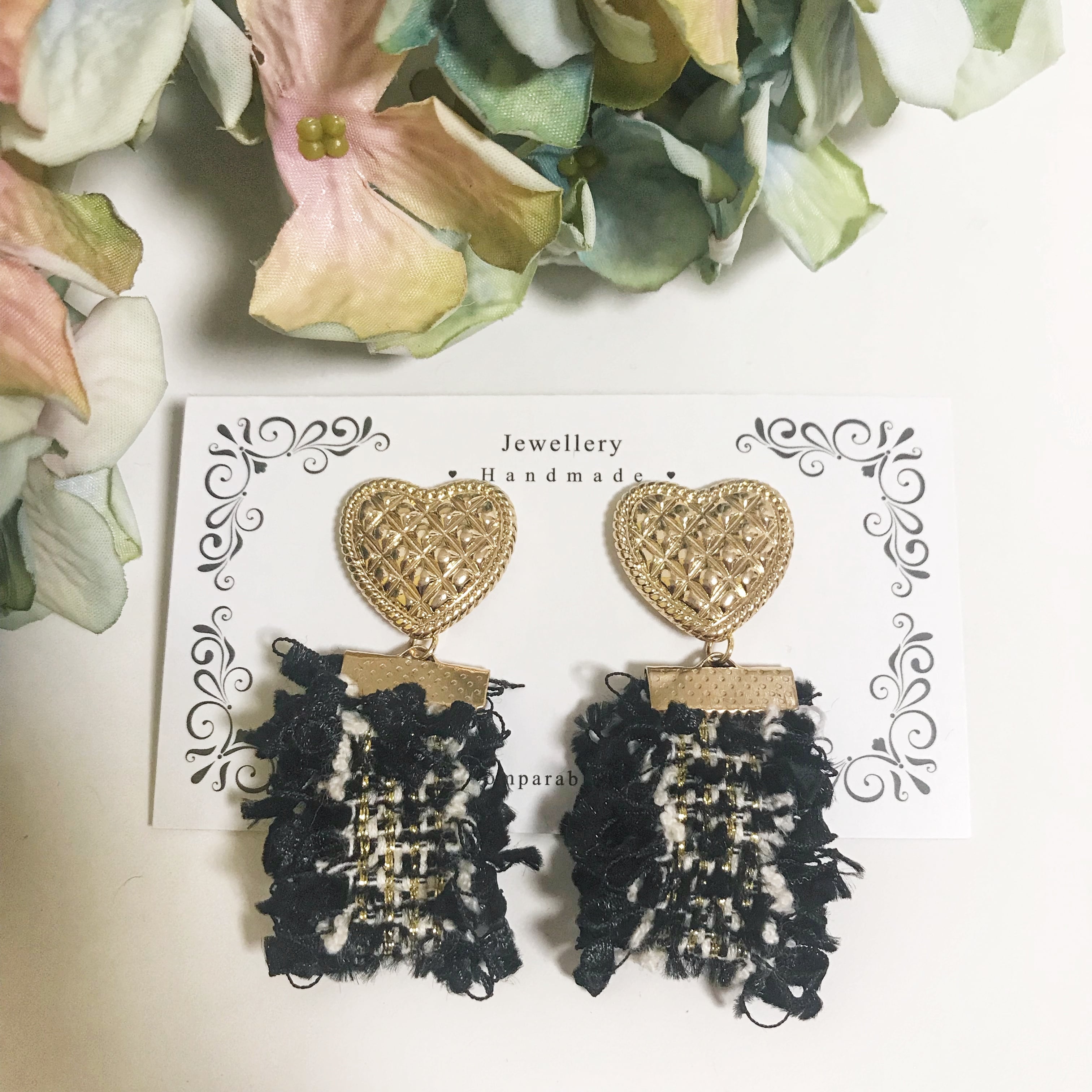 キルティングデザインのゴールドハートにツイードタッセルを合わせました( ¨̮ )*
