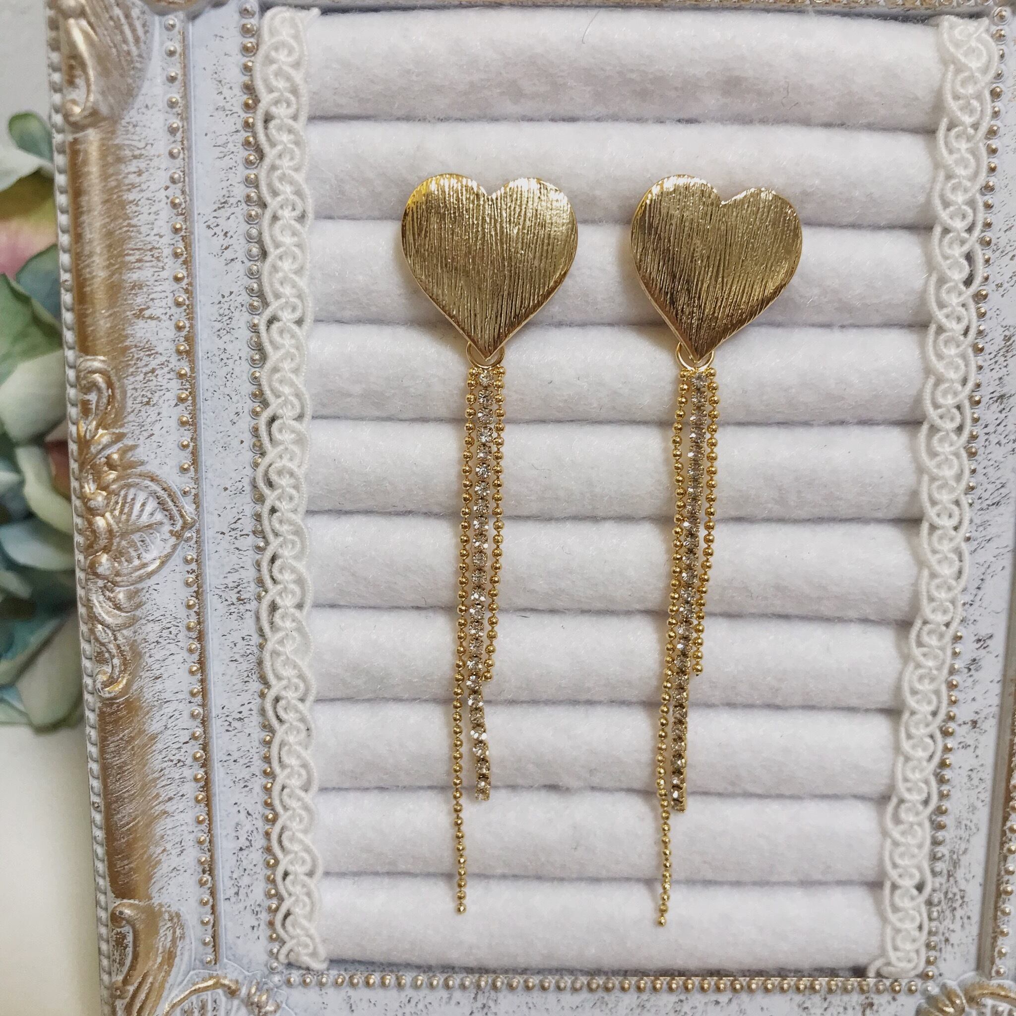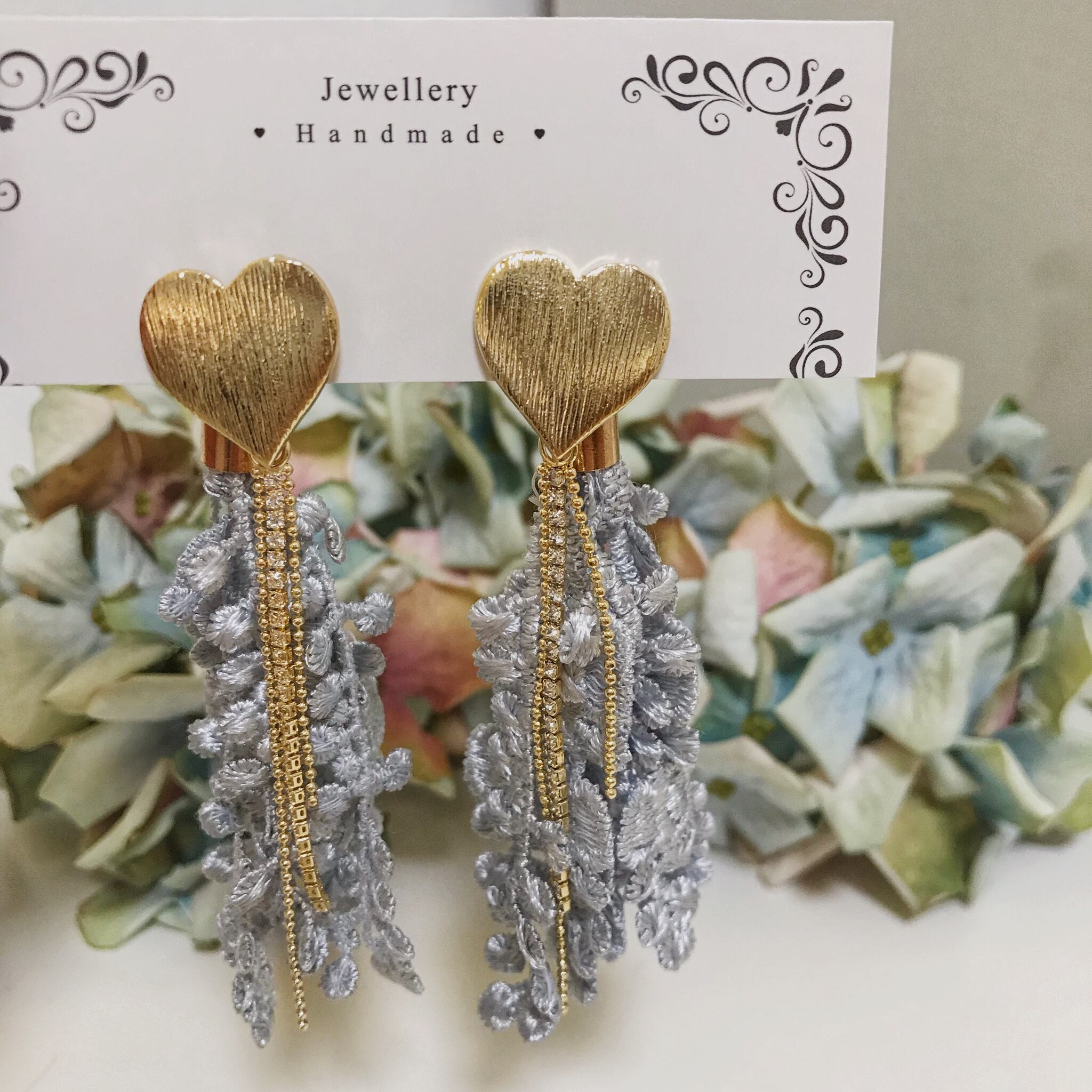 シンプルロングなハートピアスのパターンとレースタッセルを合わせたボリュームたっぷりなパターンと2wayでお使い頂けます( ¨̮ )*