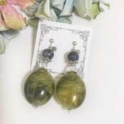 大ぶりのマーブルビーズに多面カット加工の天然石ブラックラブラドライトを合わせました( ¨̮ )*