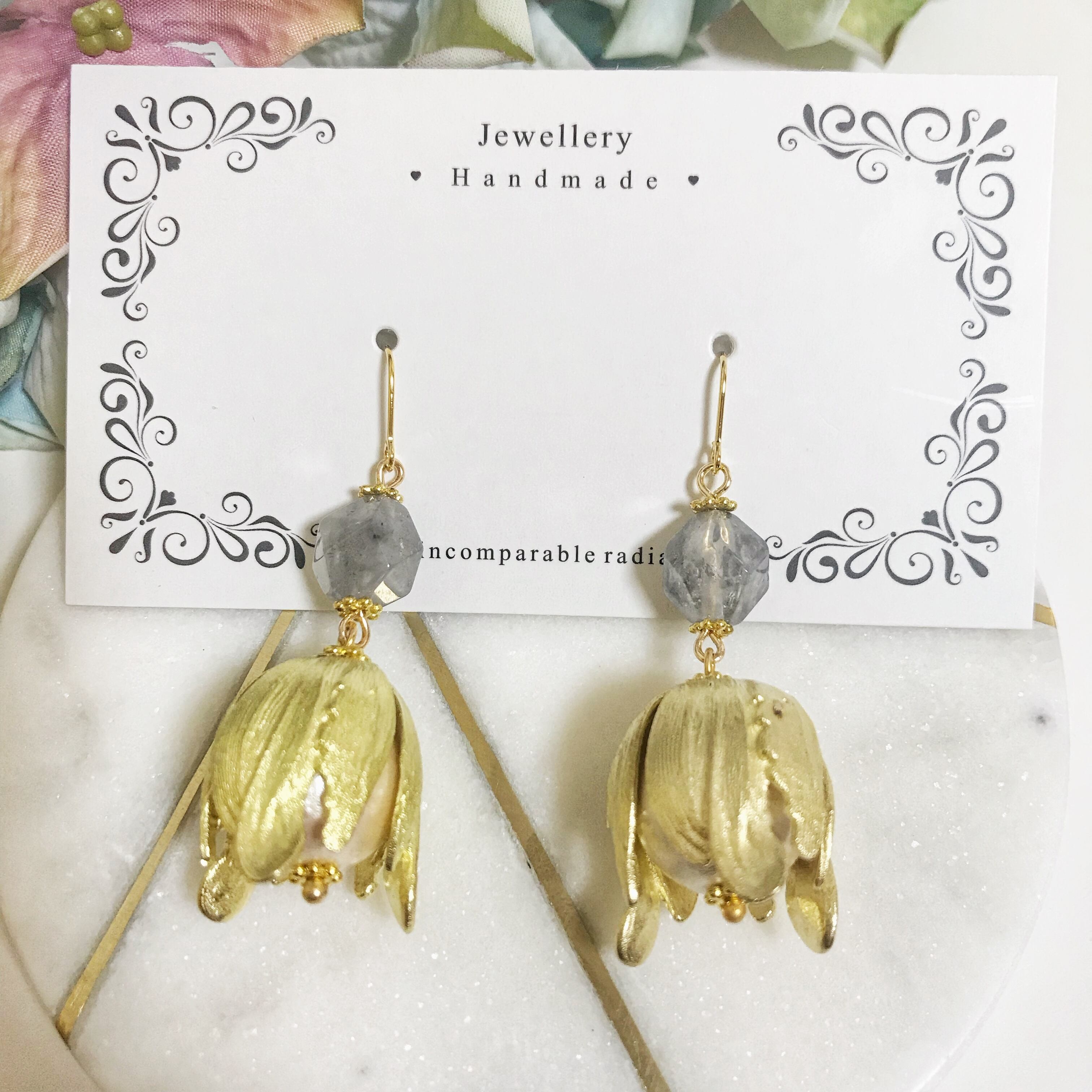 大きめのお花のつぼみに天然石のクラウディクォーツ を合わせました( ¨̮ )*