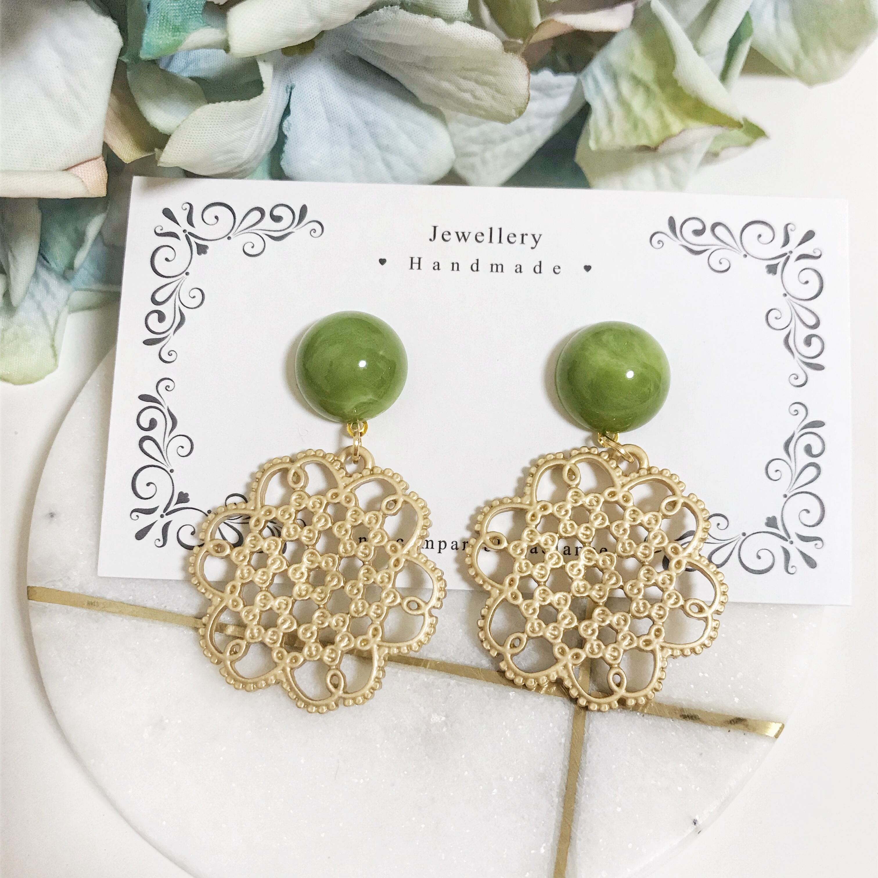 マーブルグリーンに大ぶりのレースチャームを合わせました⌄̈⃝❤︎