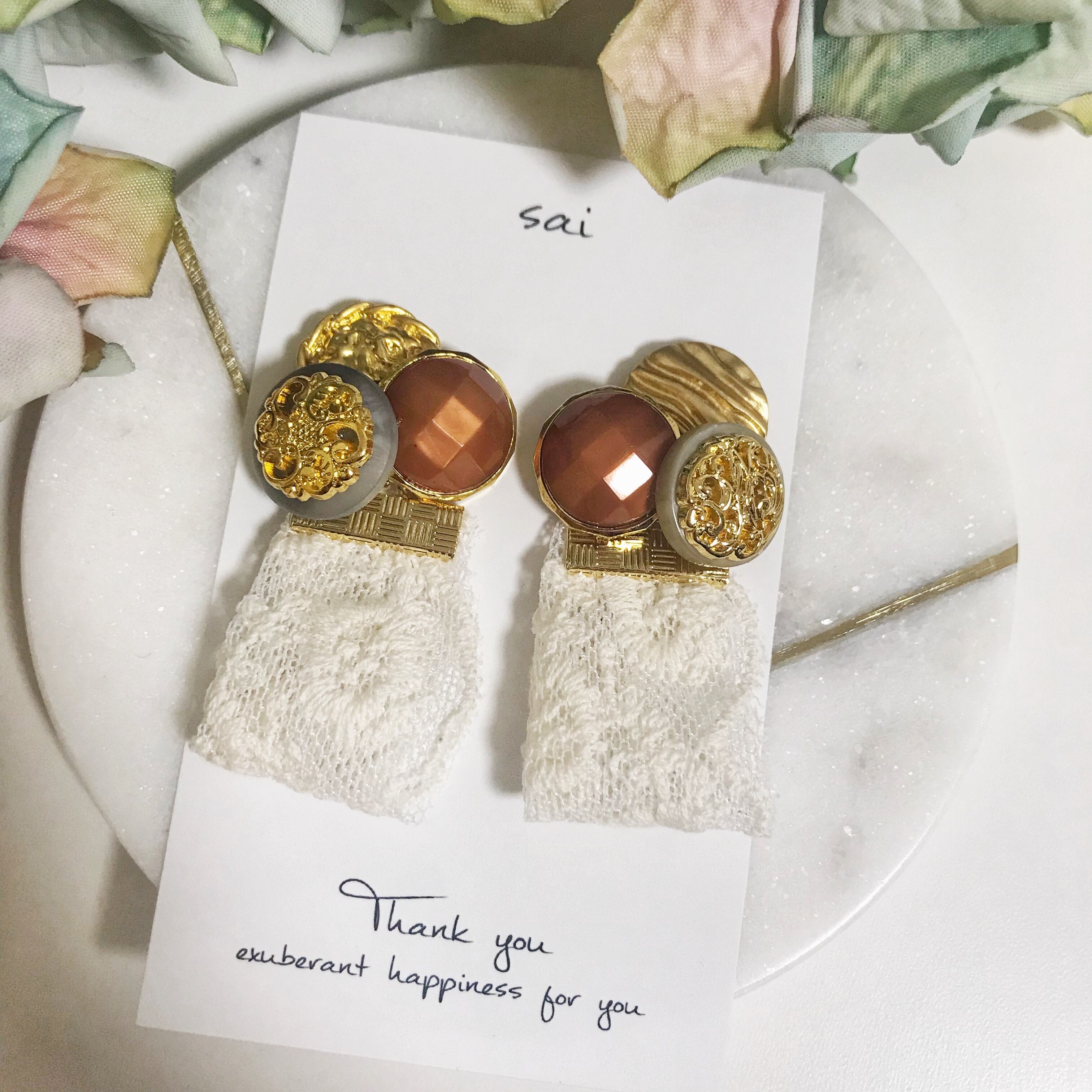 ブラウン系のボタンにレースタッセルを合わせました( ¨̮ )*