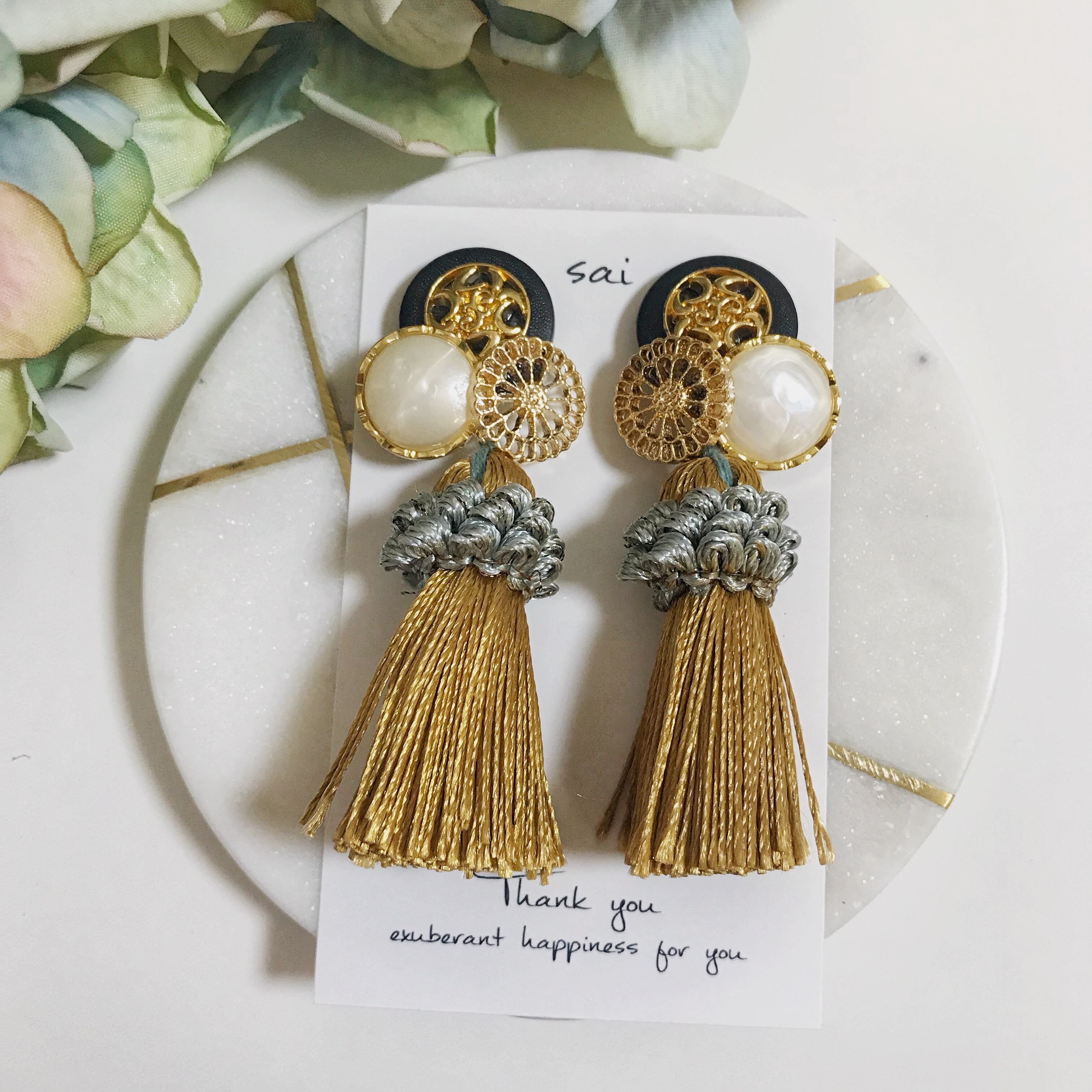 ブラック×ゴールド系のボタンにバイカラーのデザインタッセルを合わせました( ¨̮ )*