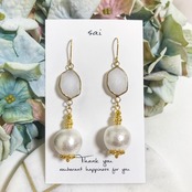 ガラスコネクターに大ぶりのコットンパールを合わせたシンプルなpierce/earringです( ¨̮ )*