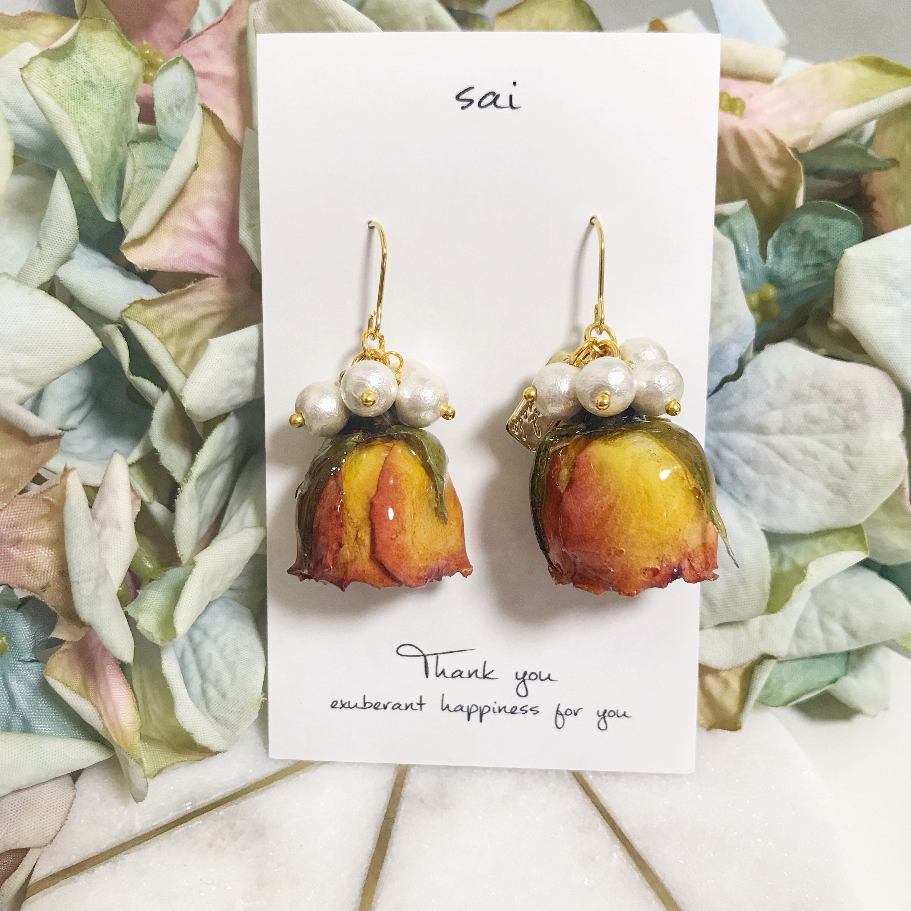 コットンパールとドライフラワーなのでとても軽くて付けやすいです❁
