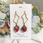 ゴールドのラフシルエットにミニバラを合わせたシンプルなpierce/earringです❤︎