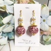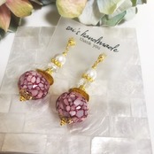 ピンクのフレークシェルの大ぶりのビーズに、ガラス、コットンパールを合わせました( ¨̮ )*