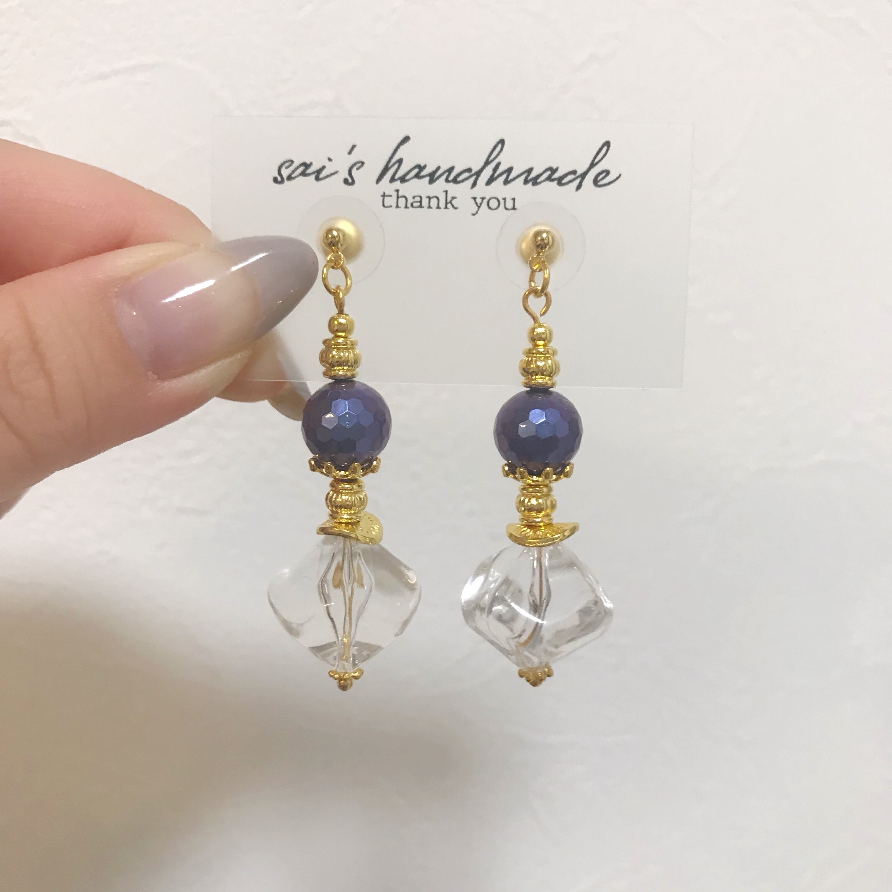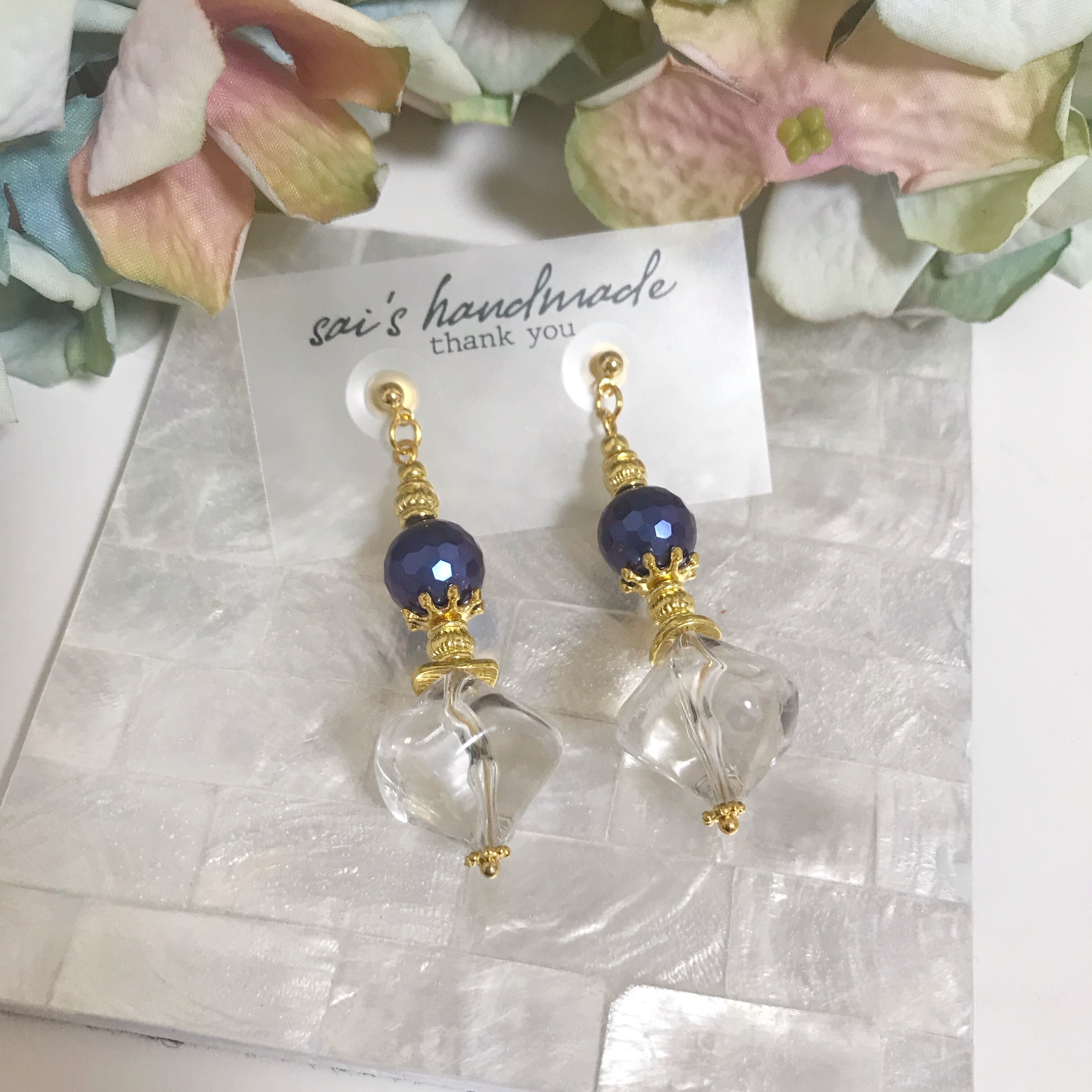 ブルーのマザーパールにビーズにちゅるんとしたクリアのビーズを合わせました( ¨̮ )*