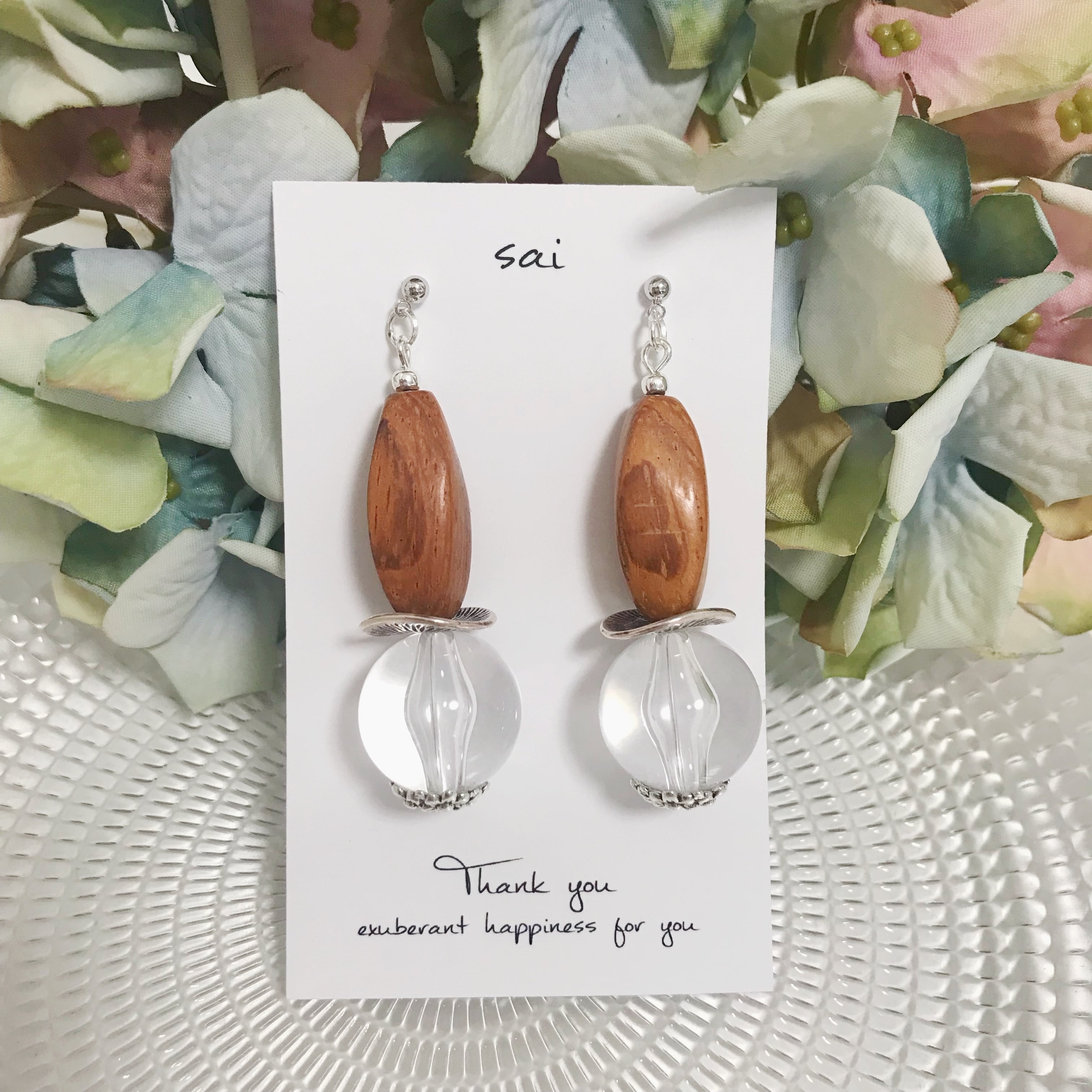 シルバーにウッドビーズと大きめのクリアビーズを合わせました⌄̈⃝