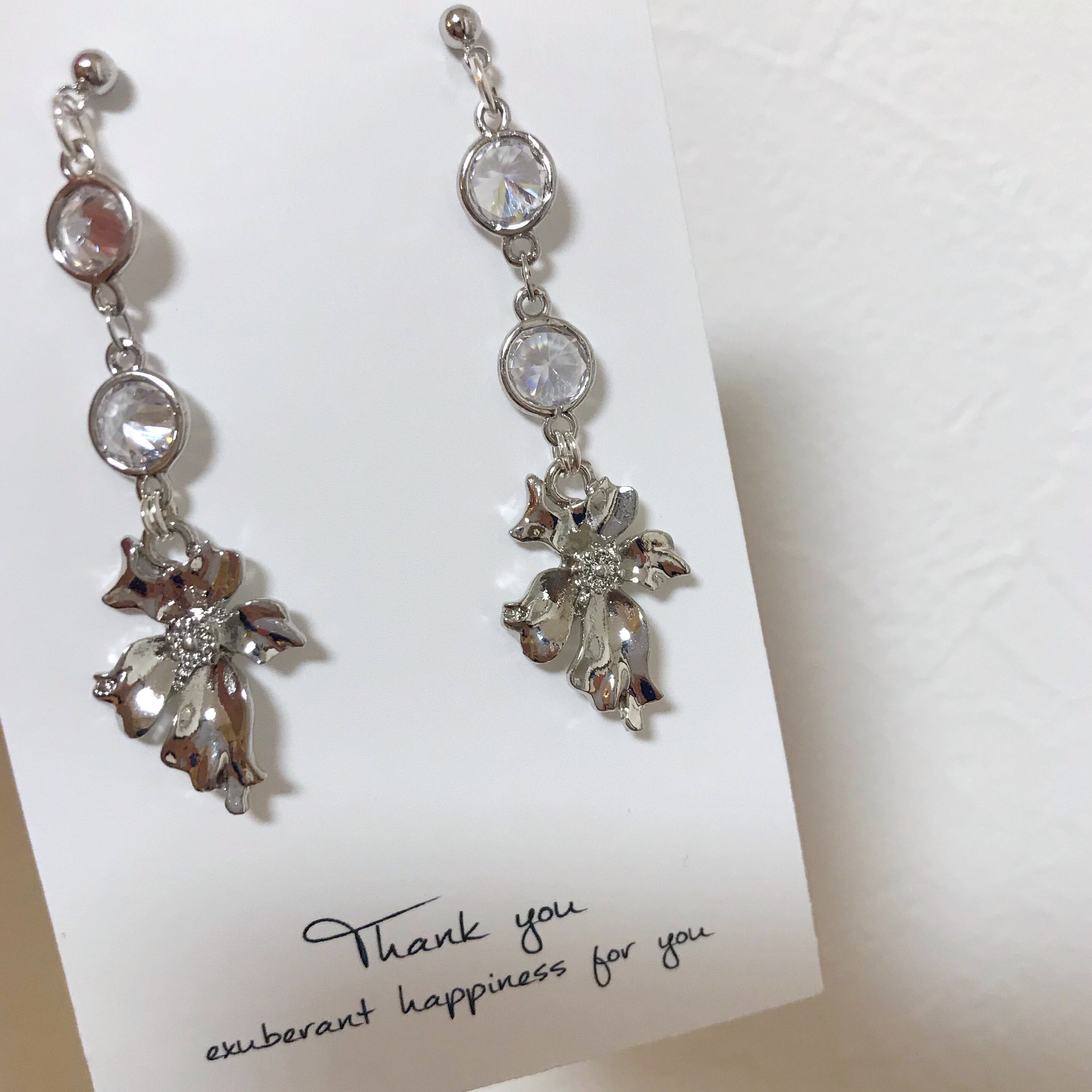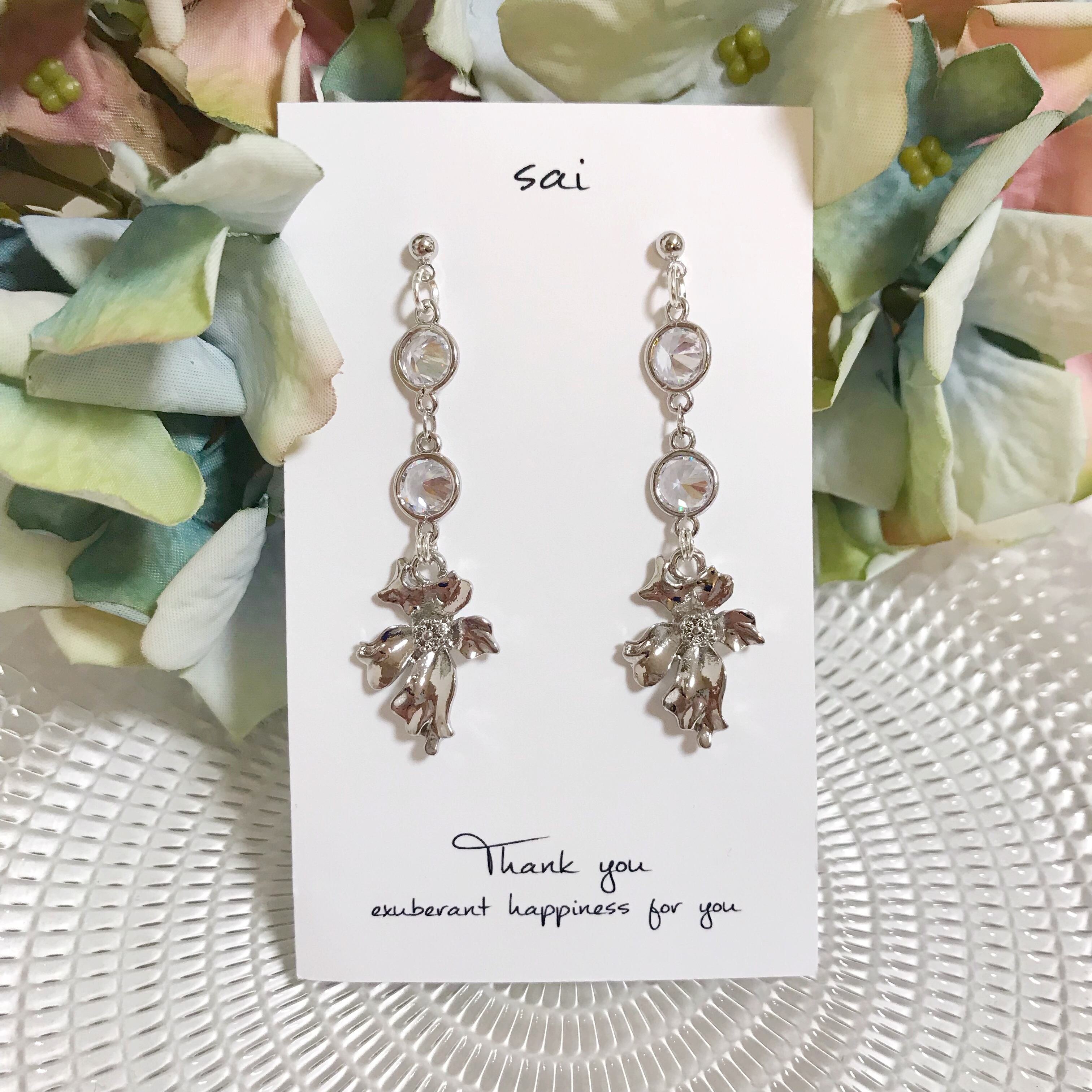 ガラスのストーンにお花を合わせたシンプルなpierce/earringです⌄̈⃝❤︎
