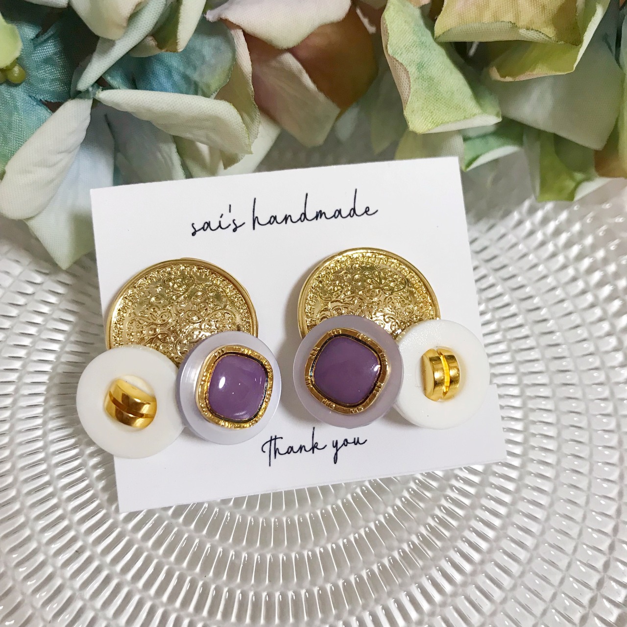 ゴールド系のボタンとパープルのボタンを重ねました⌄̈⃝❤︎