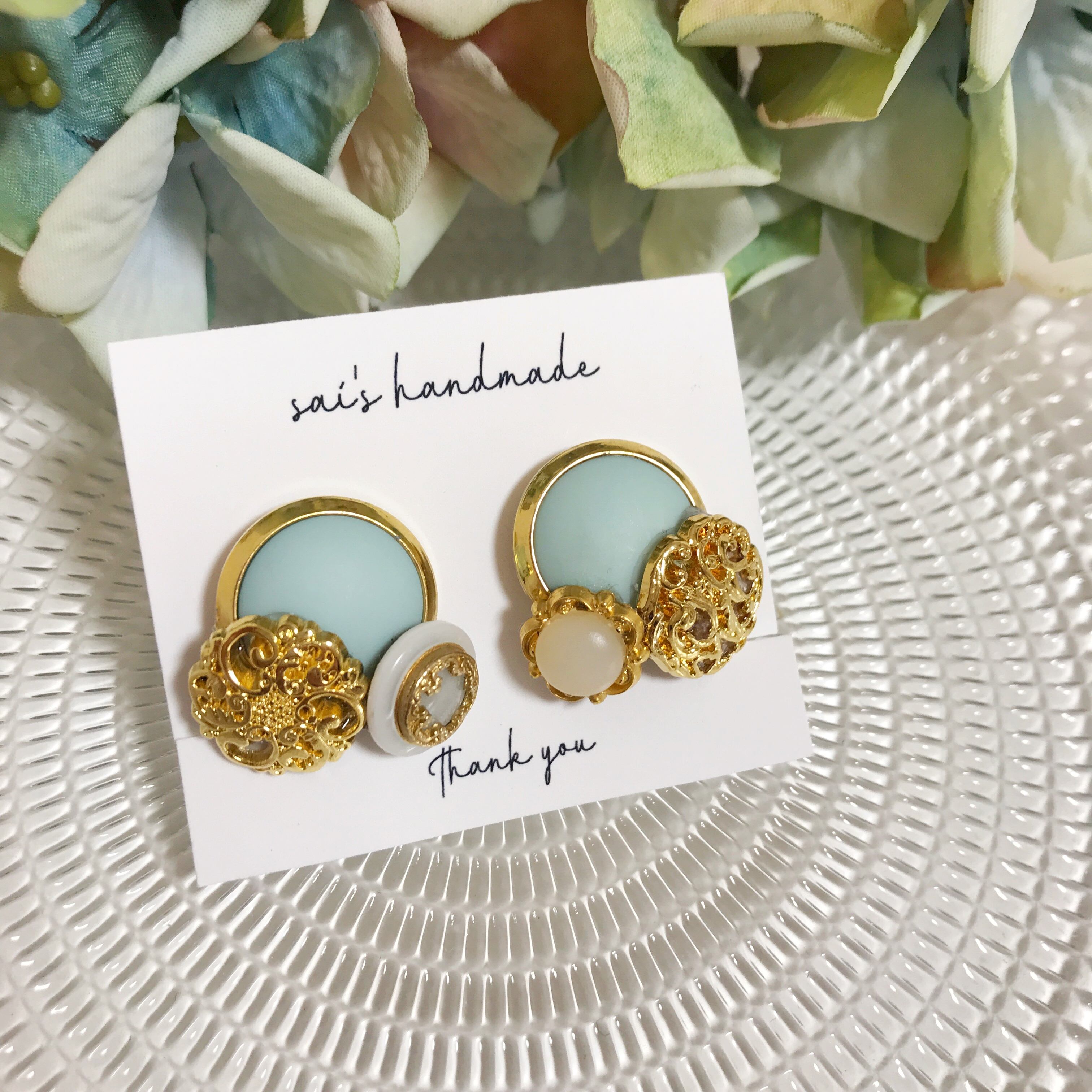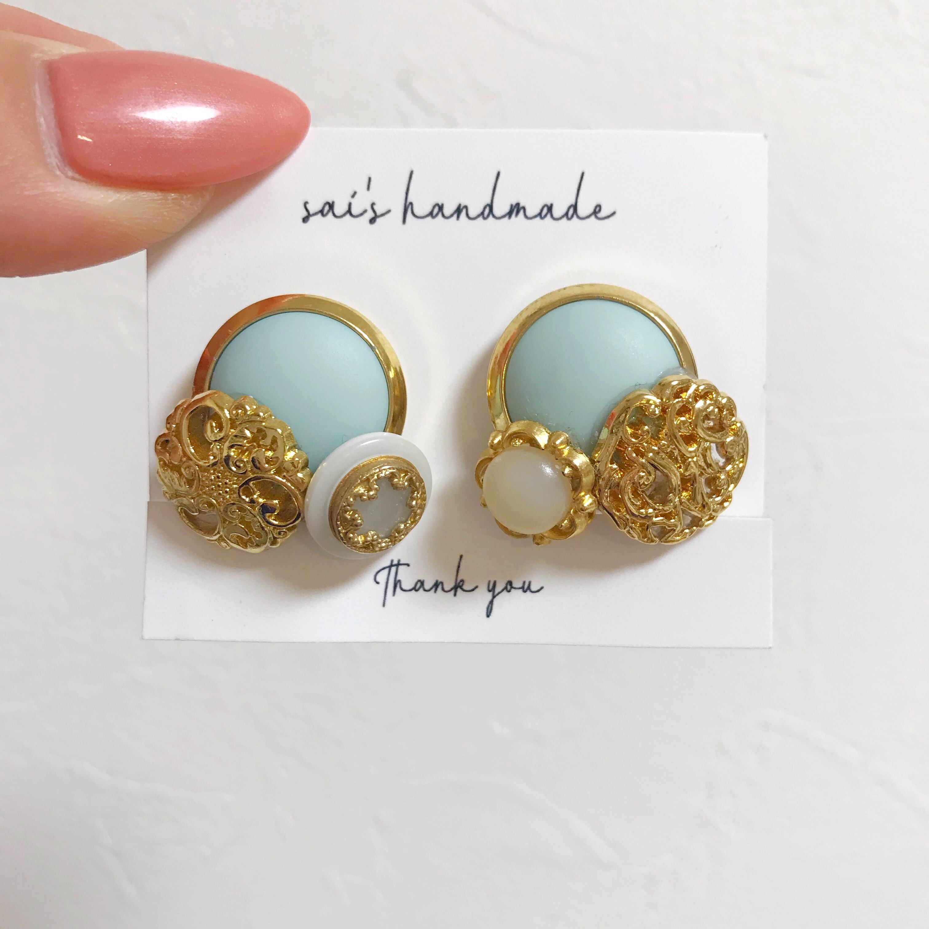 ゴールド系のボタンとアイスブルーのボタンを重ねました⌄̈⃝❤︎