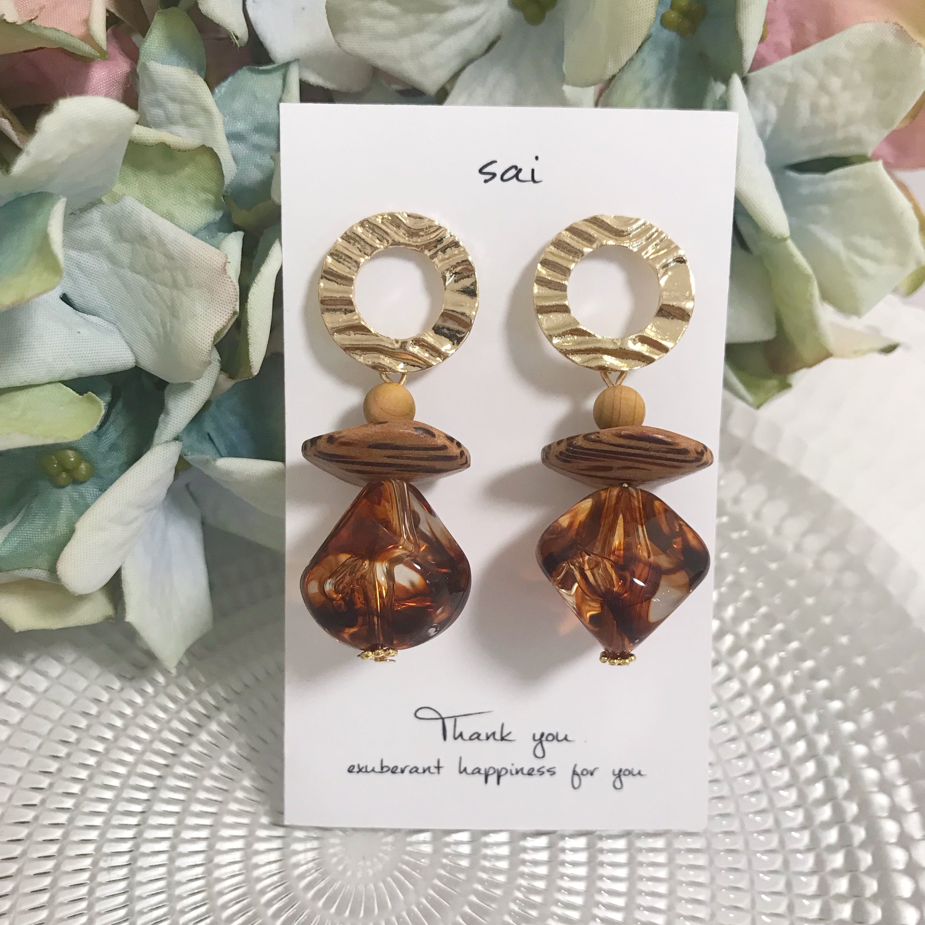 大ぶりサークル×鼈甲ちゅるんビーズ×大ぶりウッド