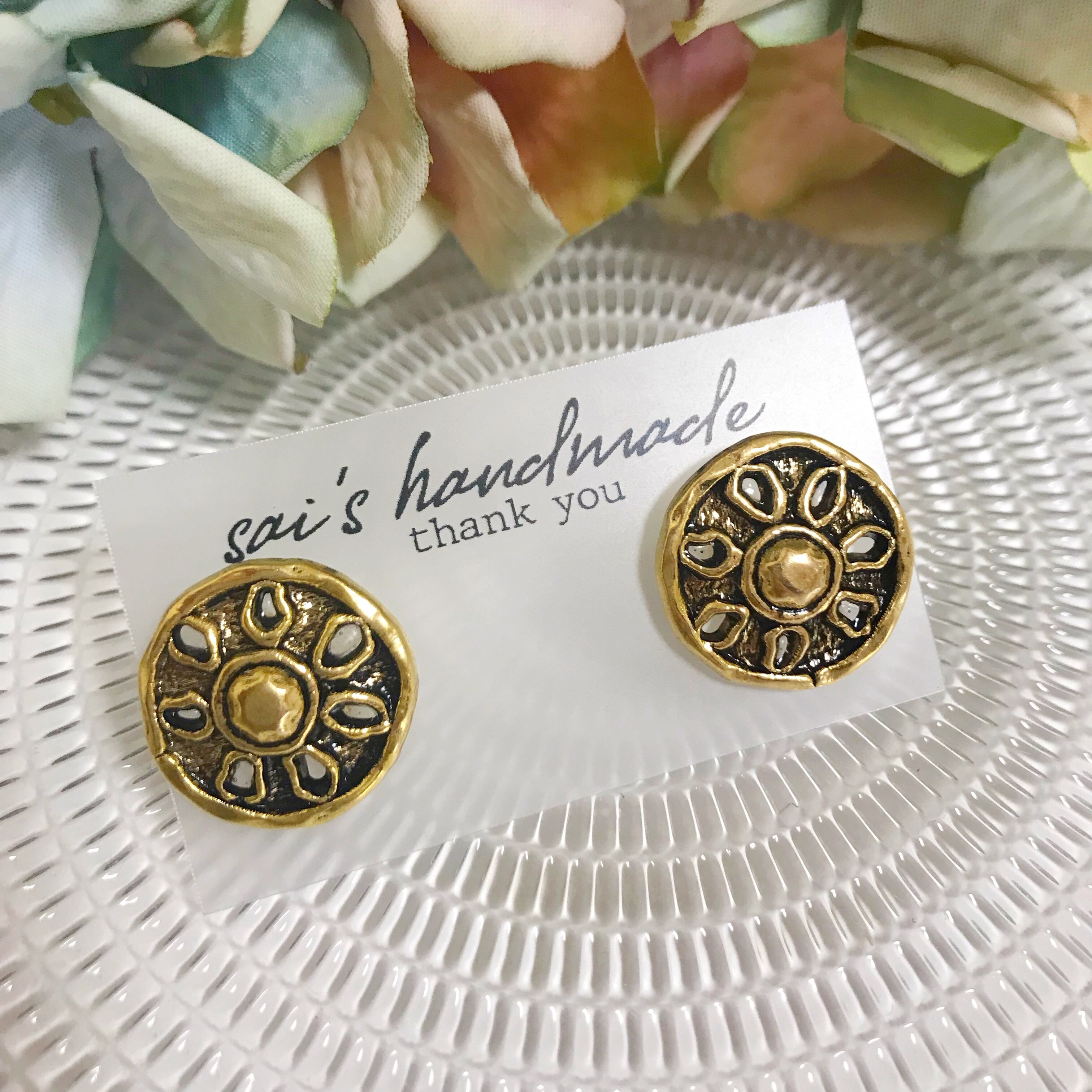アンティークゴールドのボタンピアスです⌄̈⃝❤︎