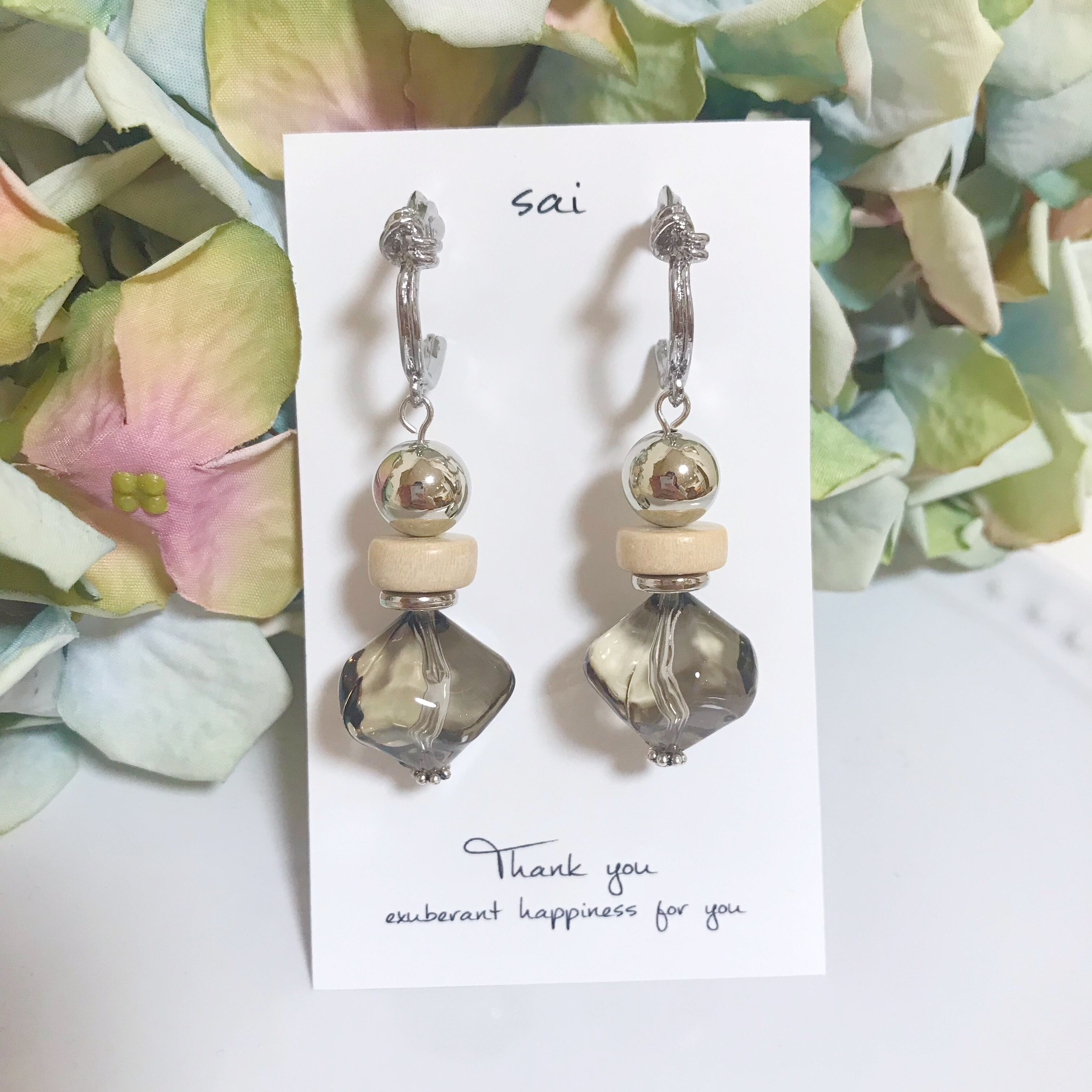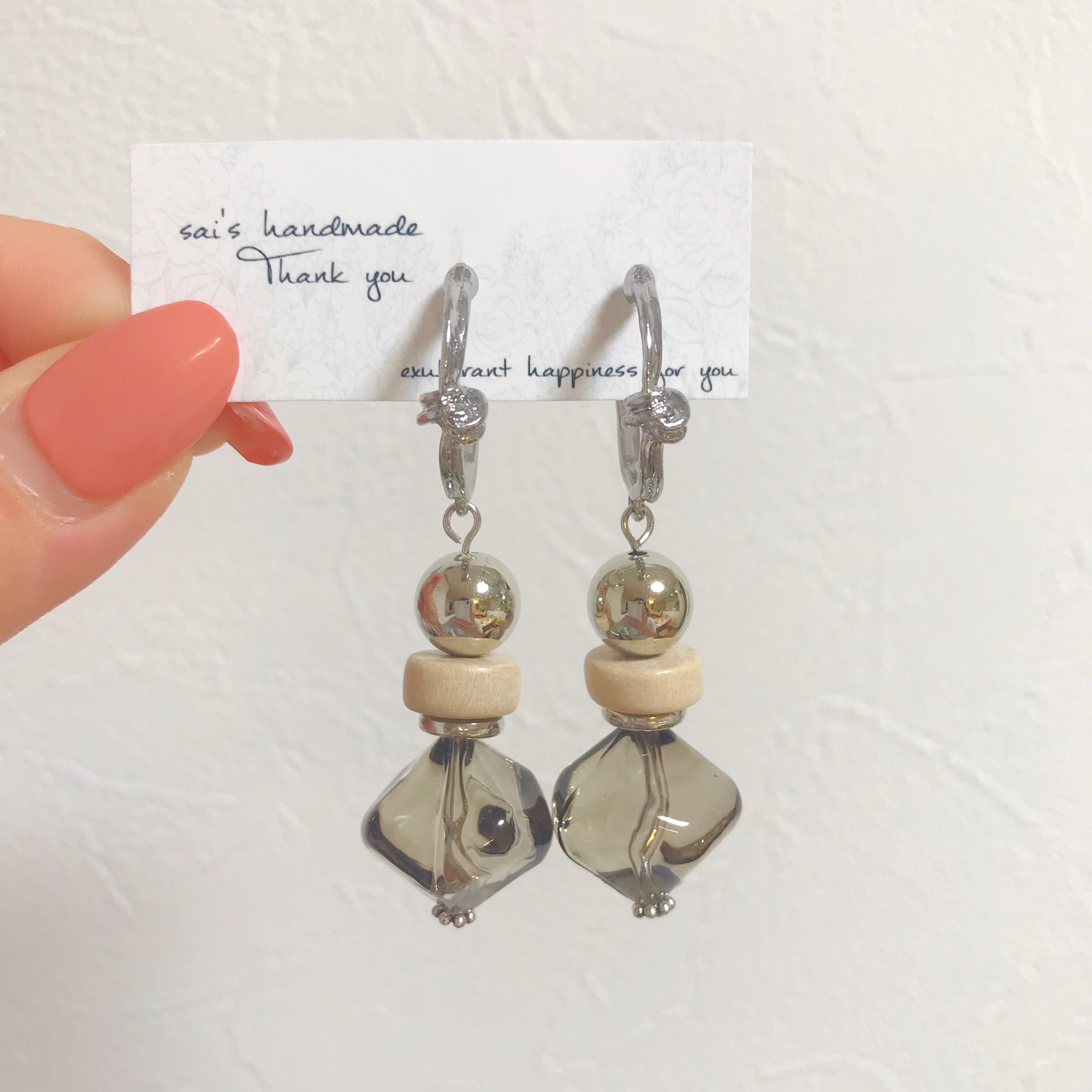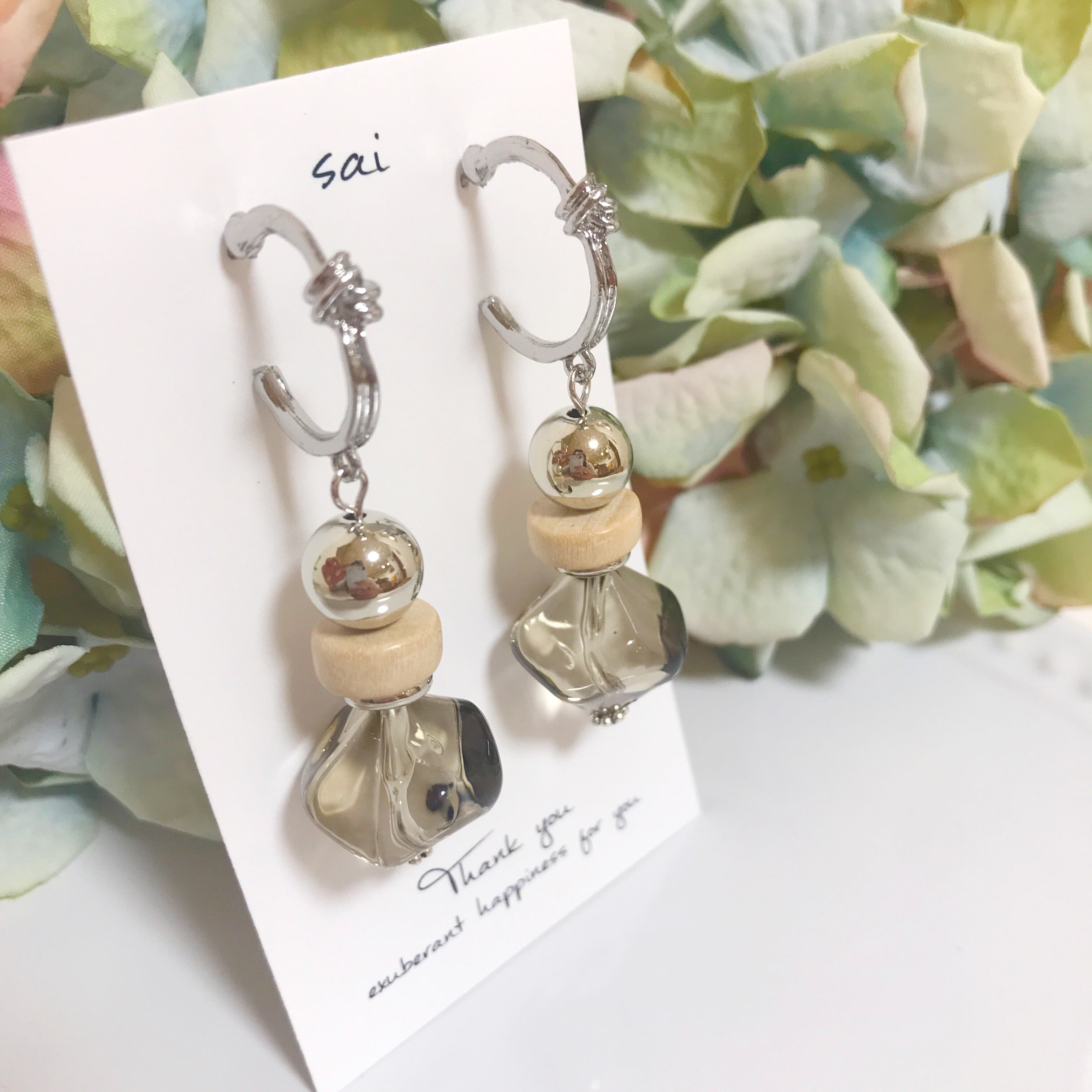 シルバー×ウッド×クリアブラックのちゅるんビーズ