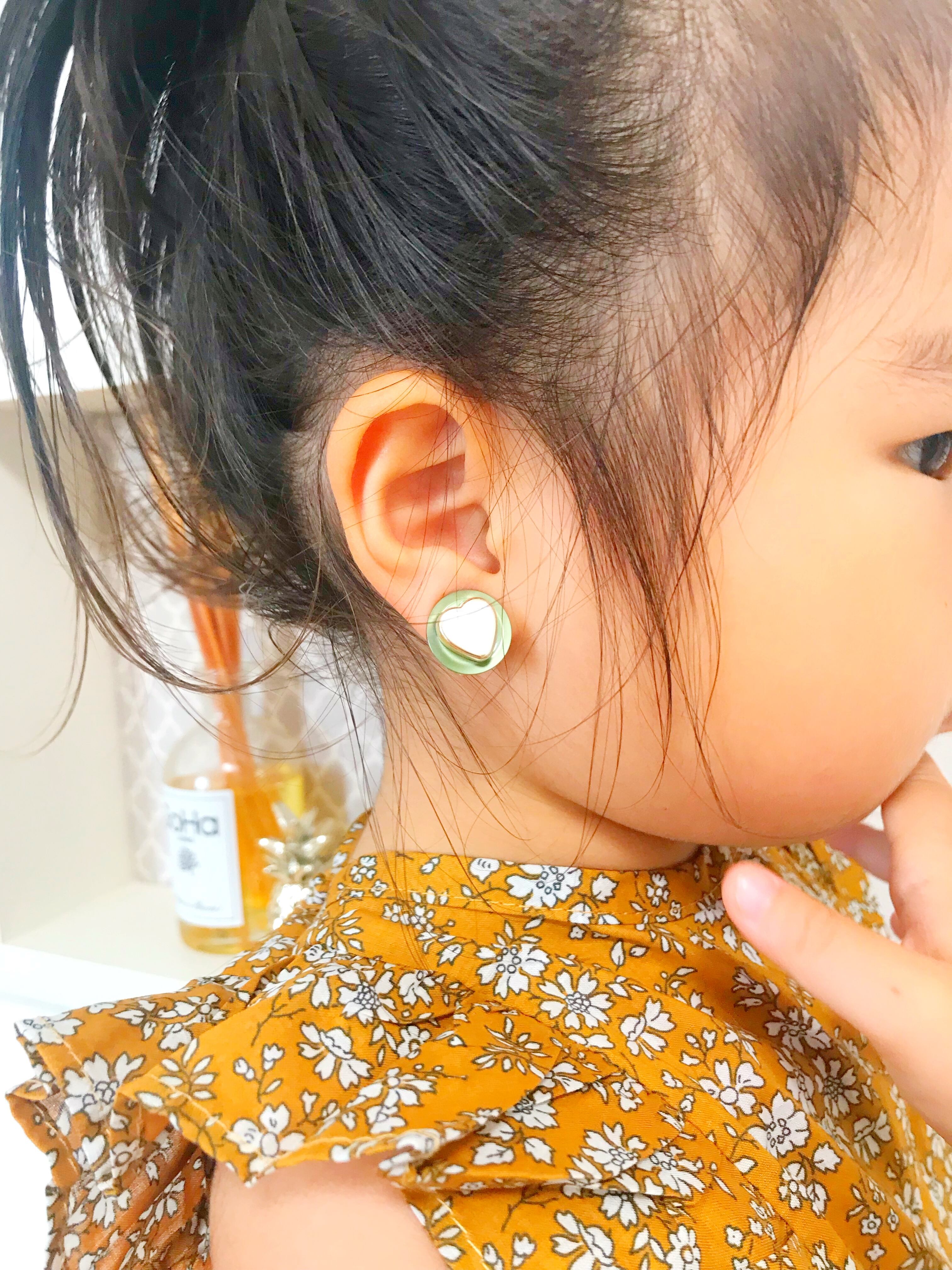 我が家の娘は3歳で、初めてのイヤリングはプラスチックにしたのですが、お気に入りでカチカチと何度も開閉してるとプラスチックは割れやすいです⍨⃝笑