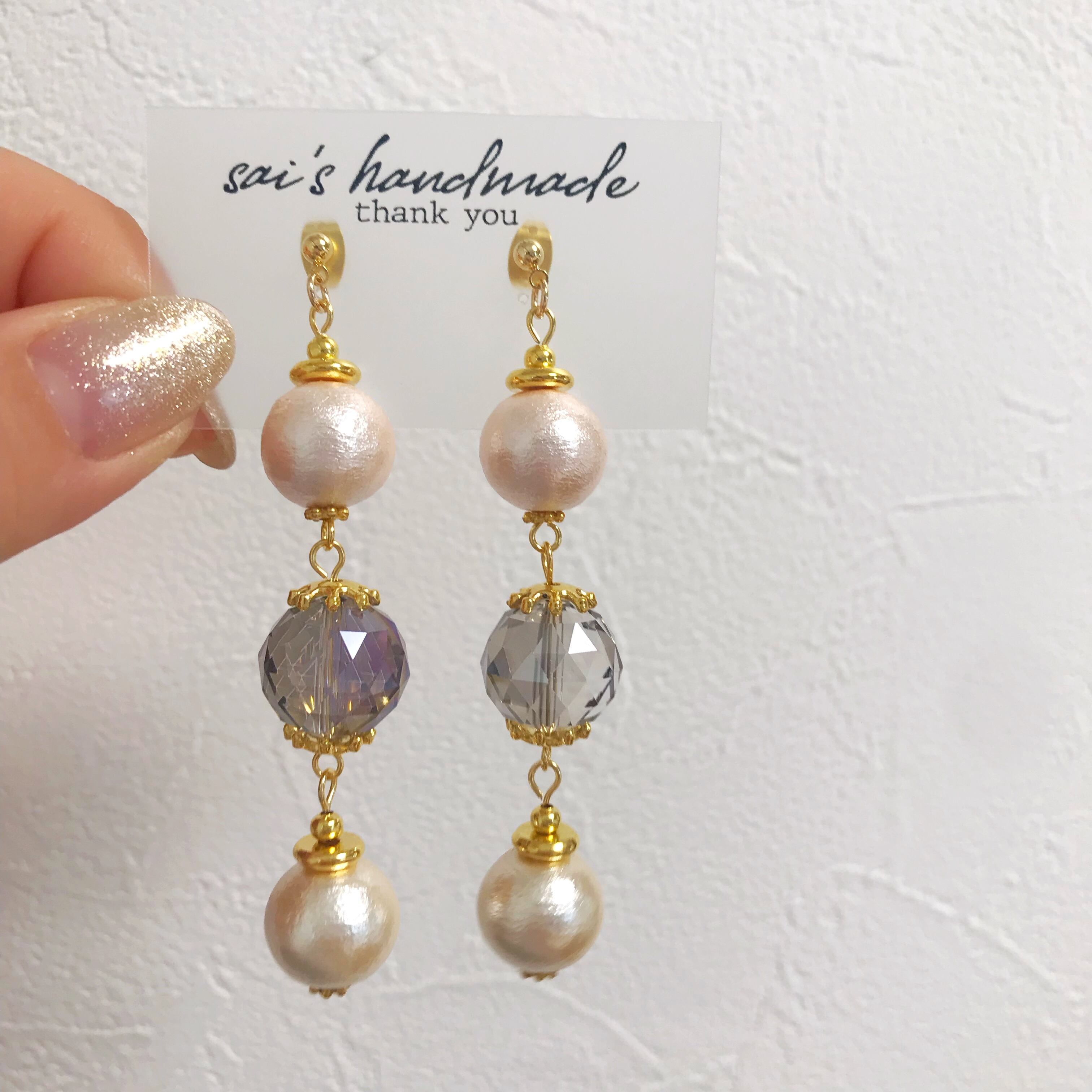 コットンパール×ダブルフェイスガラスのロングピアス、イヤリングです⌄̈⃝❤︎