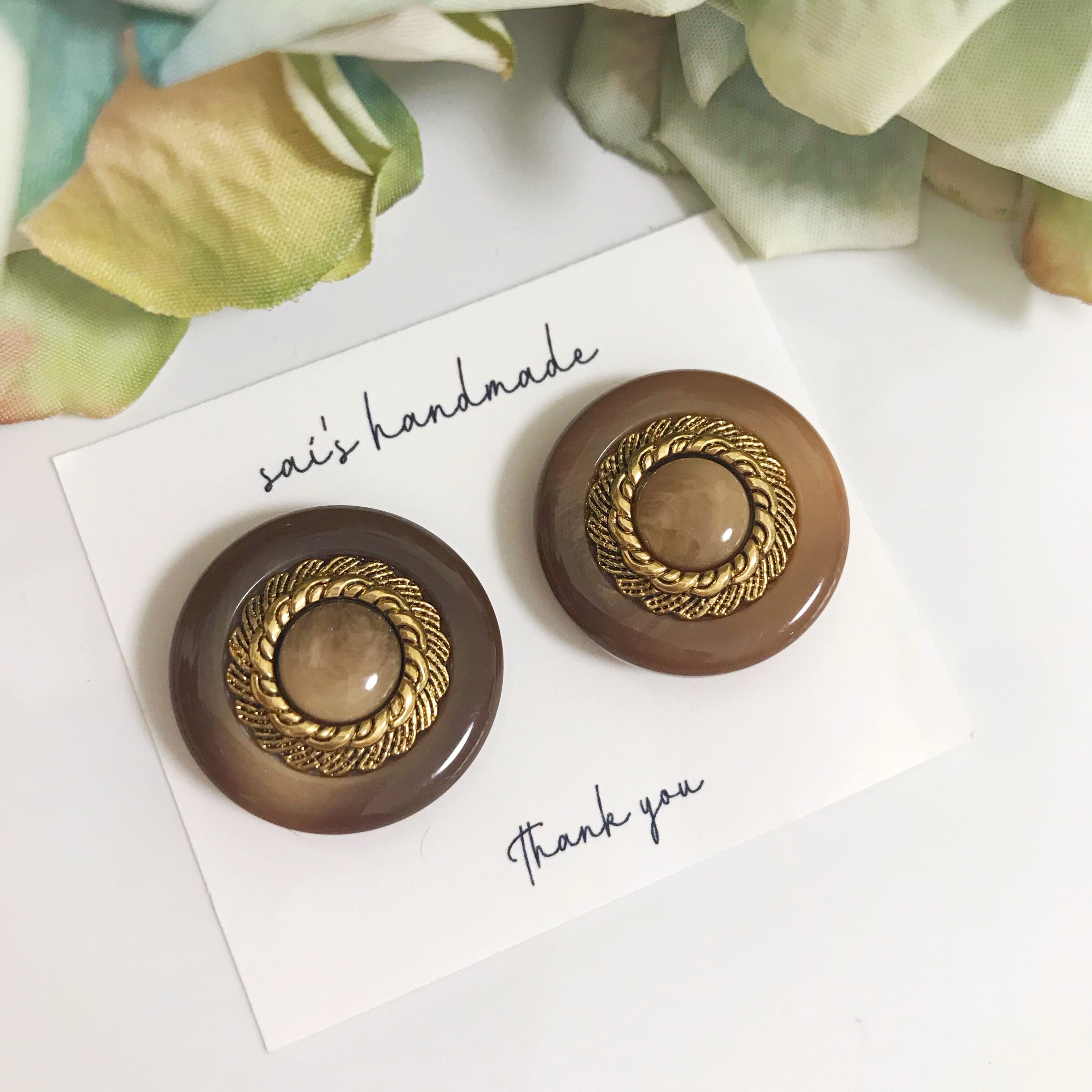 ブラウン×ゴールドのアンティークボタンです⌄̈⃝❤︎