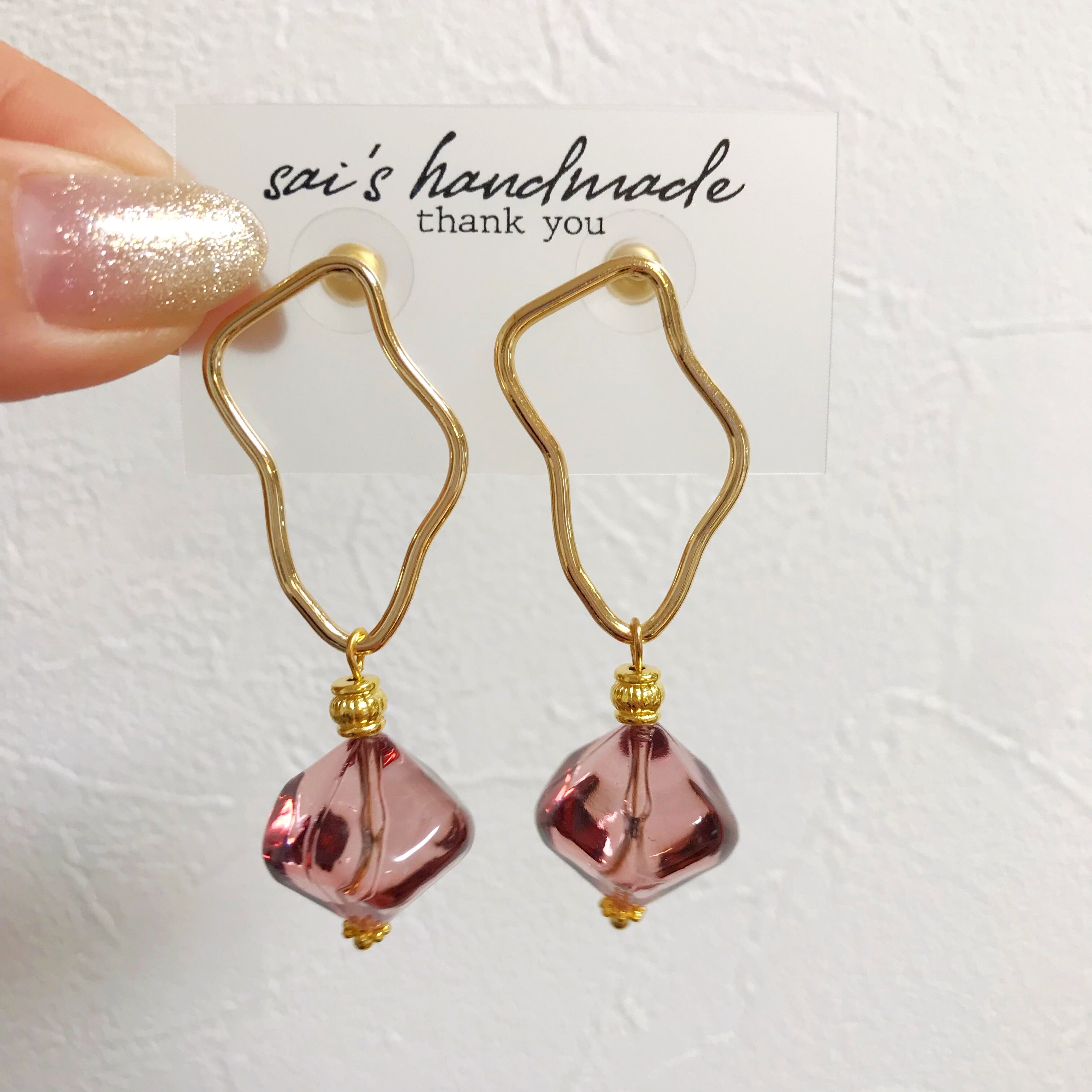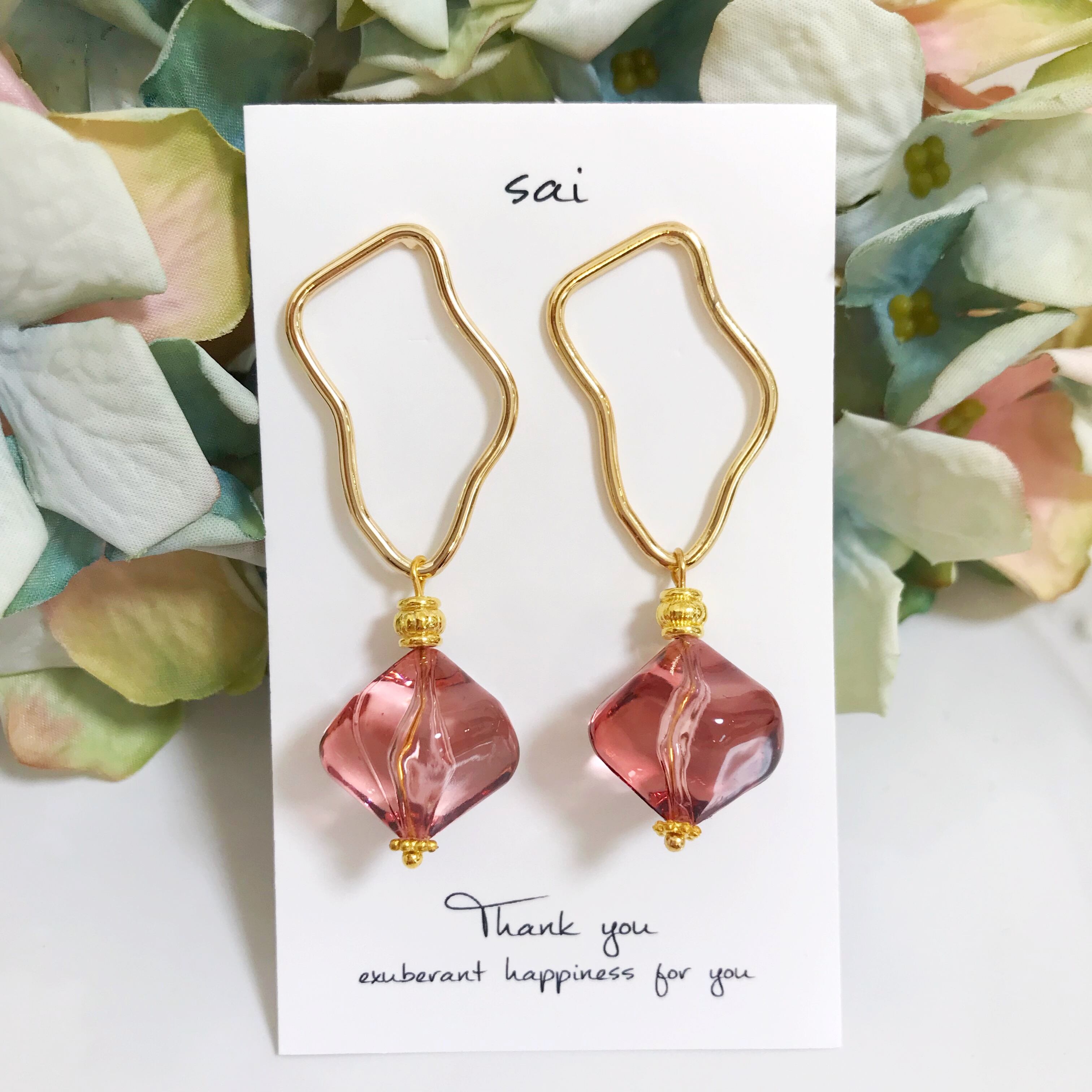 ゴールドのラフシルエット×クリアピンクのちゅるんビーズ⌄̈⃝❤︎