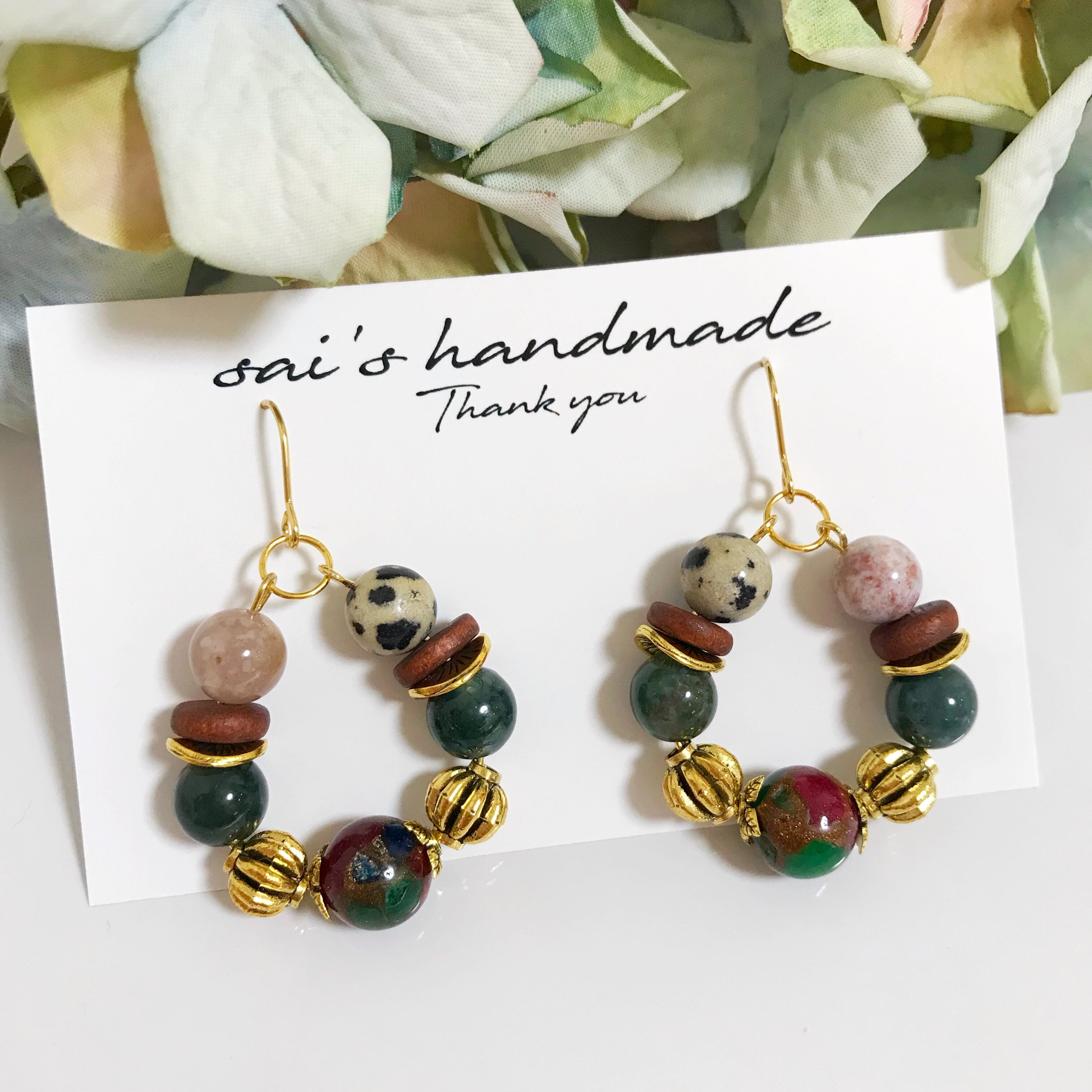 アースカラーの天然石フープpierce/earringです⌄̈⃝❤︎