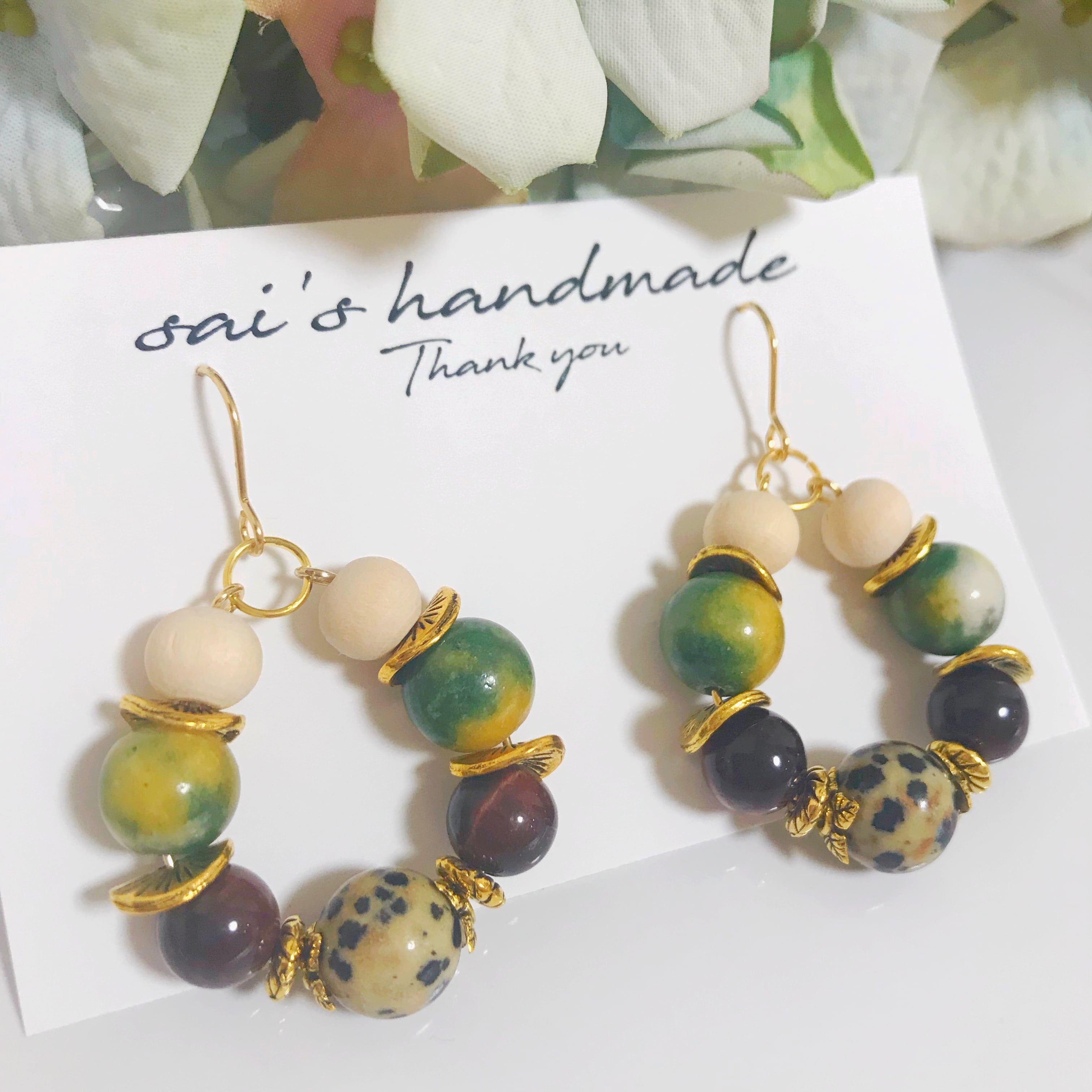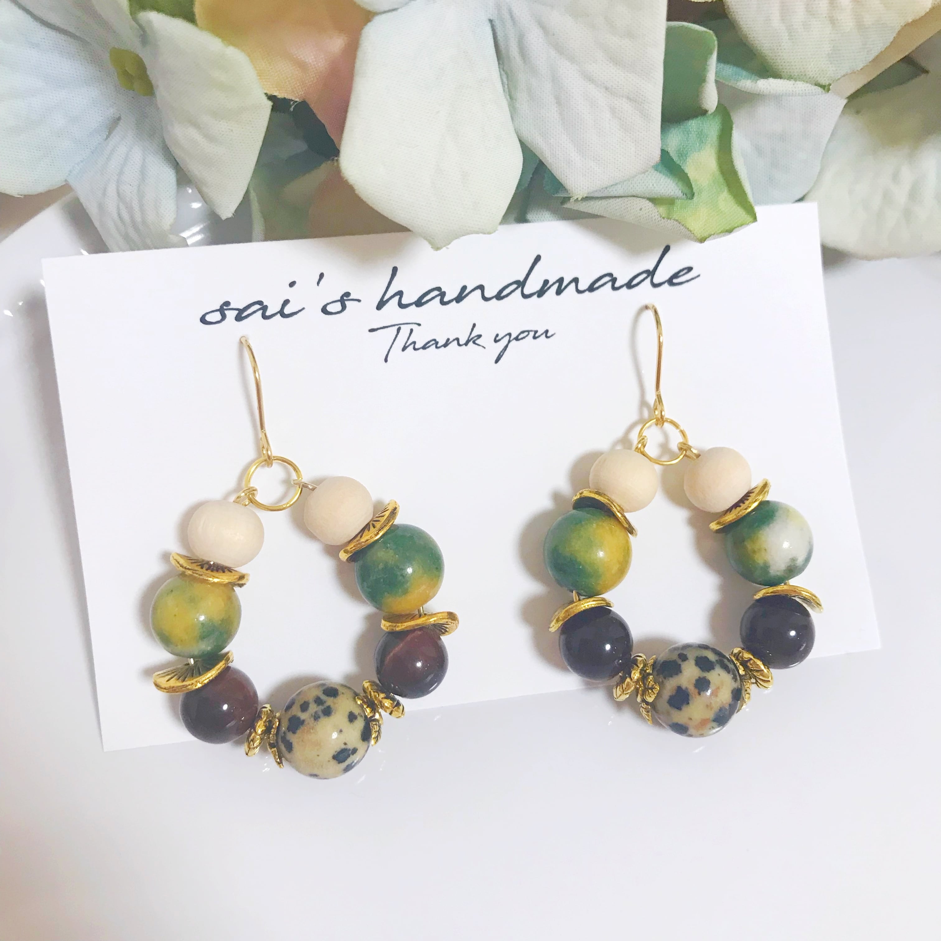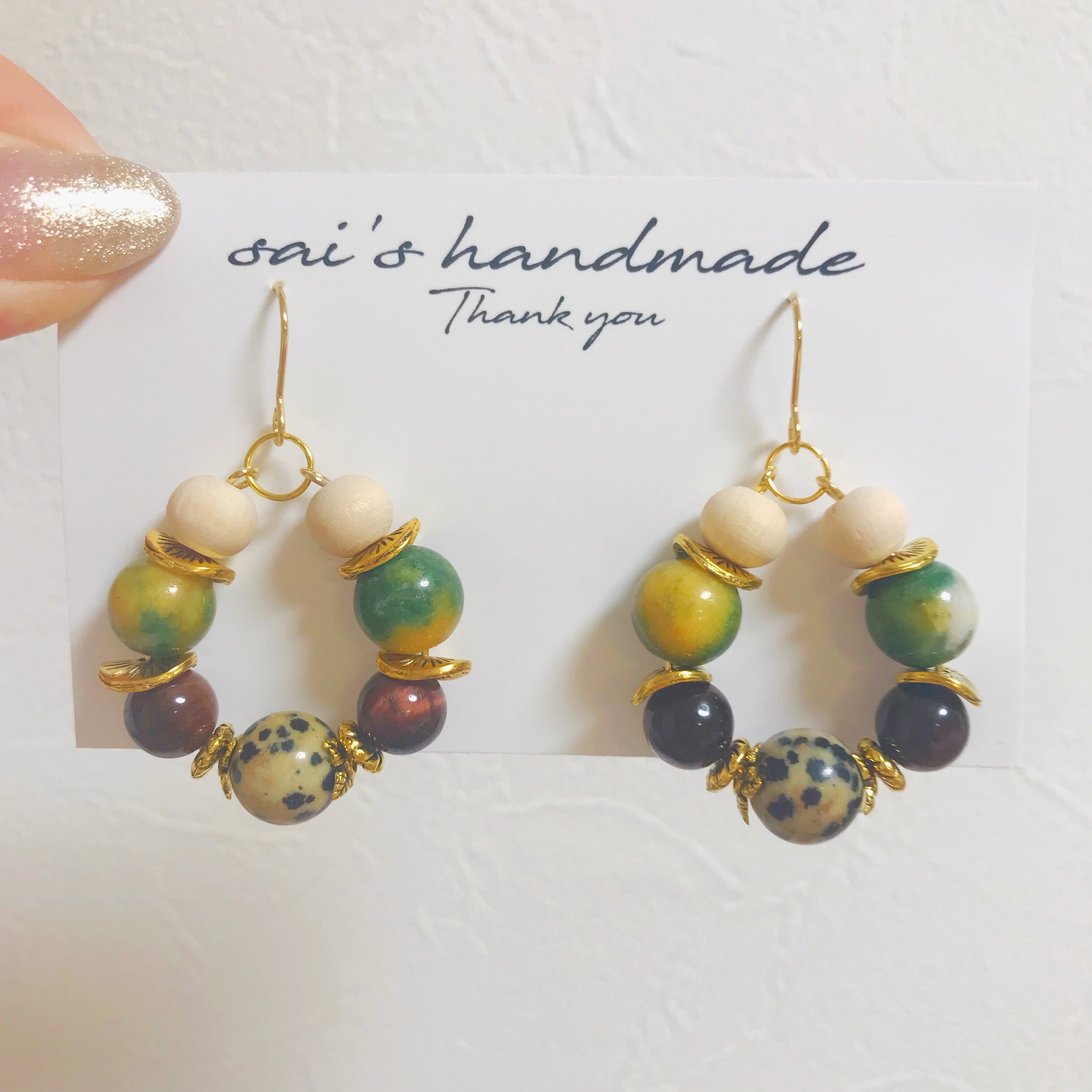 ウッド×天然石フープのpierce/earringです⌄̈⃝❤︎