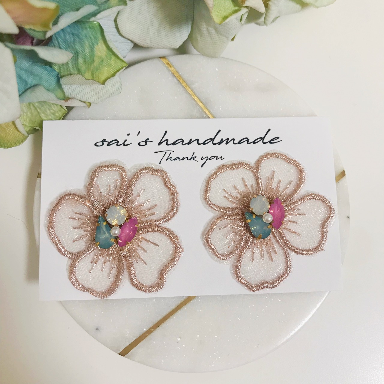 刺繍フラワー×ビジューpierce/earring⌄̈⃝❤︎