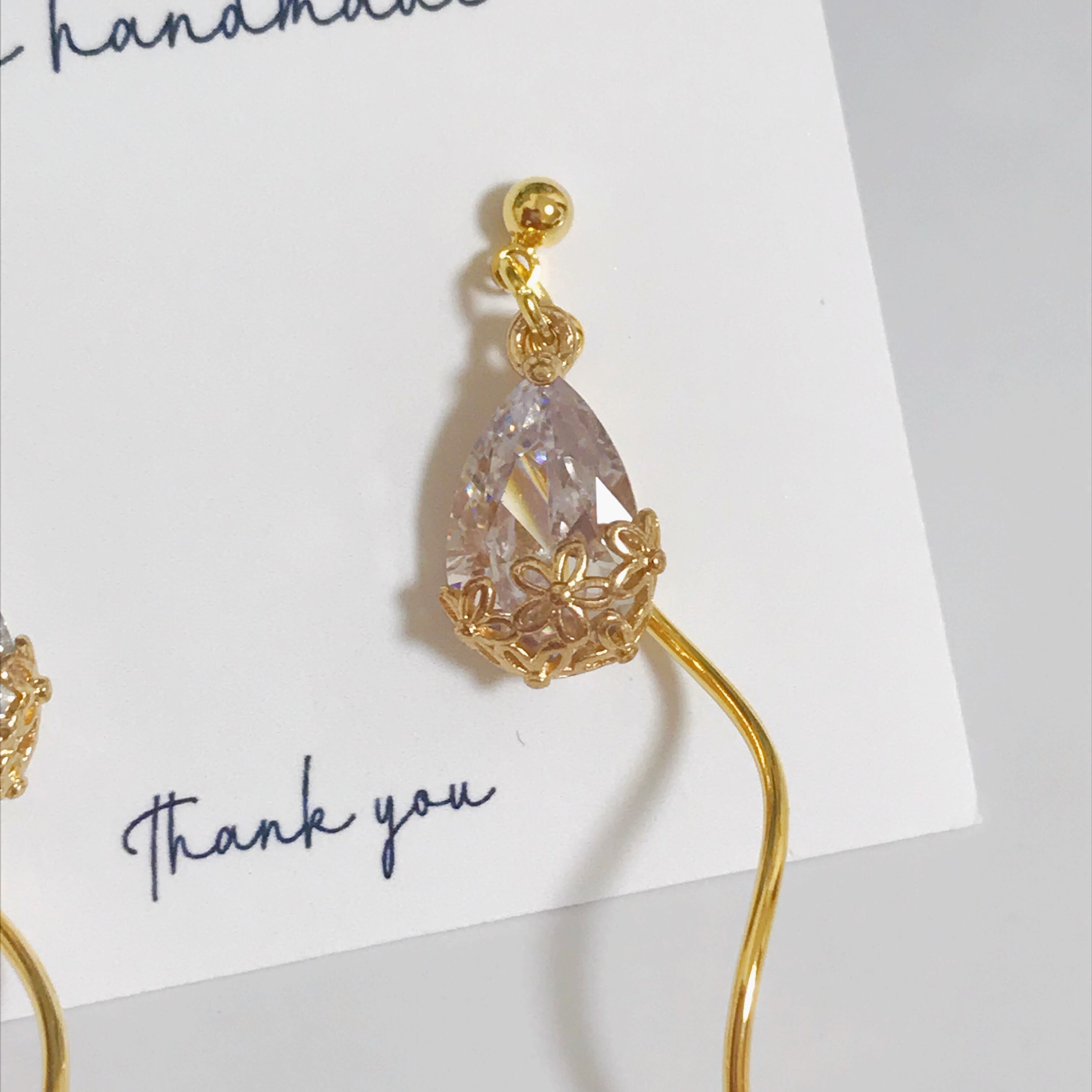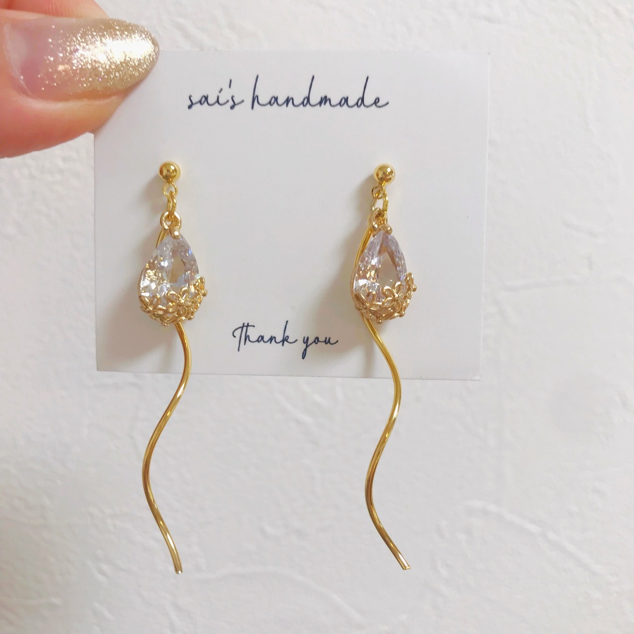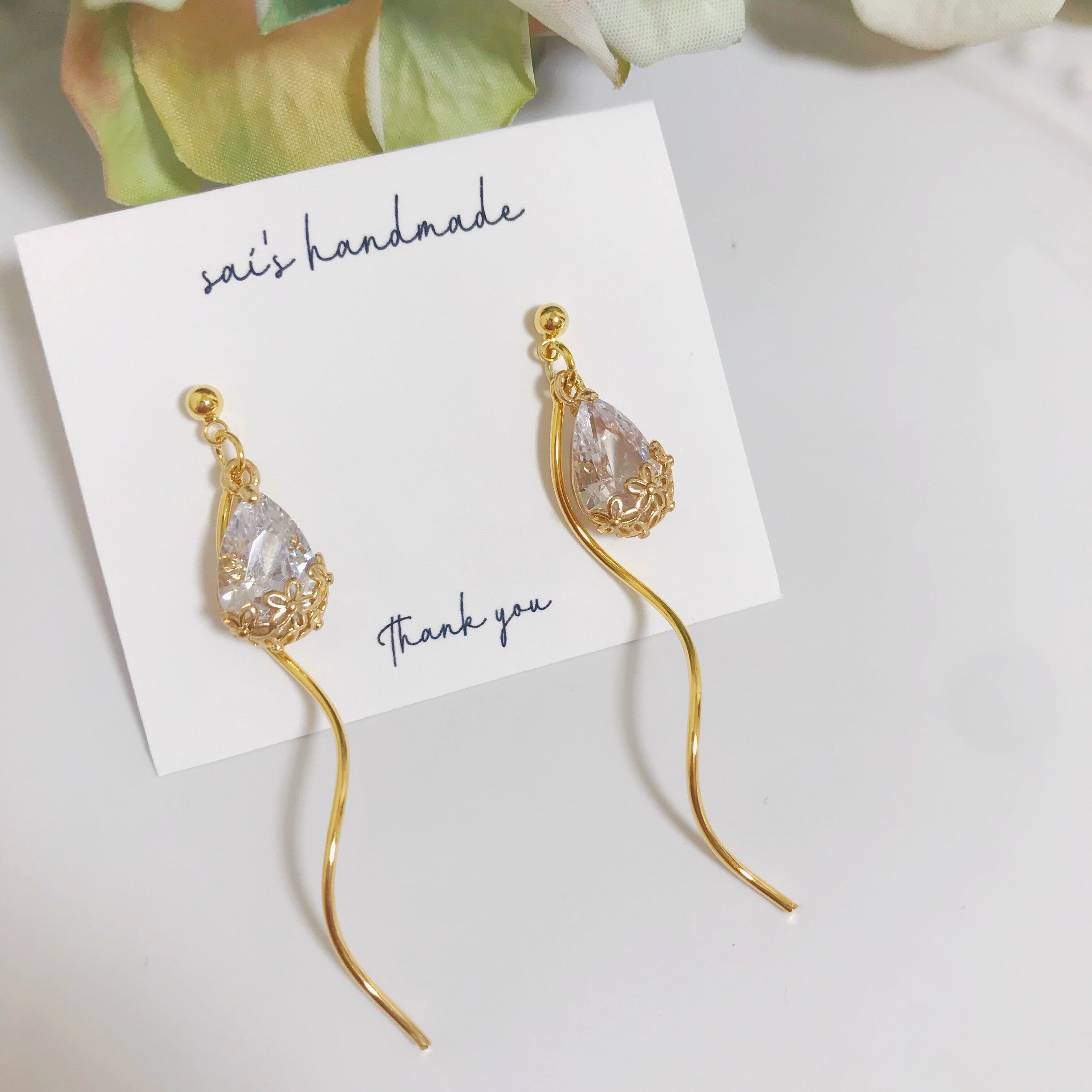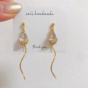 華奢なガラスストーンにウェーブチャームを合わせたシンプルなpierce/earringです⌄̈⃝❤︎