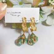 大ぶりグリーンの巻貝シェルのフープピアス⌄̈⃝❤︎