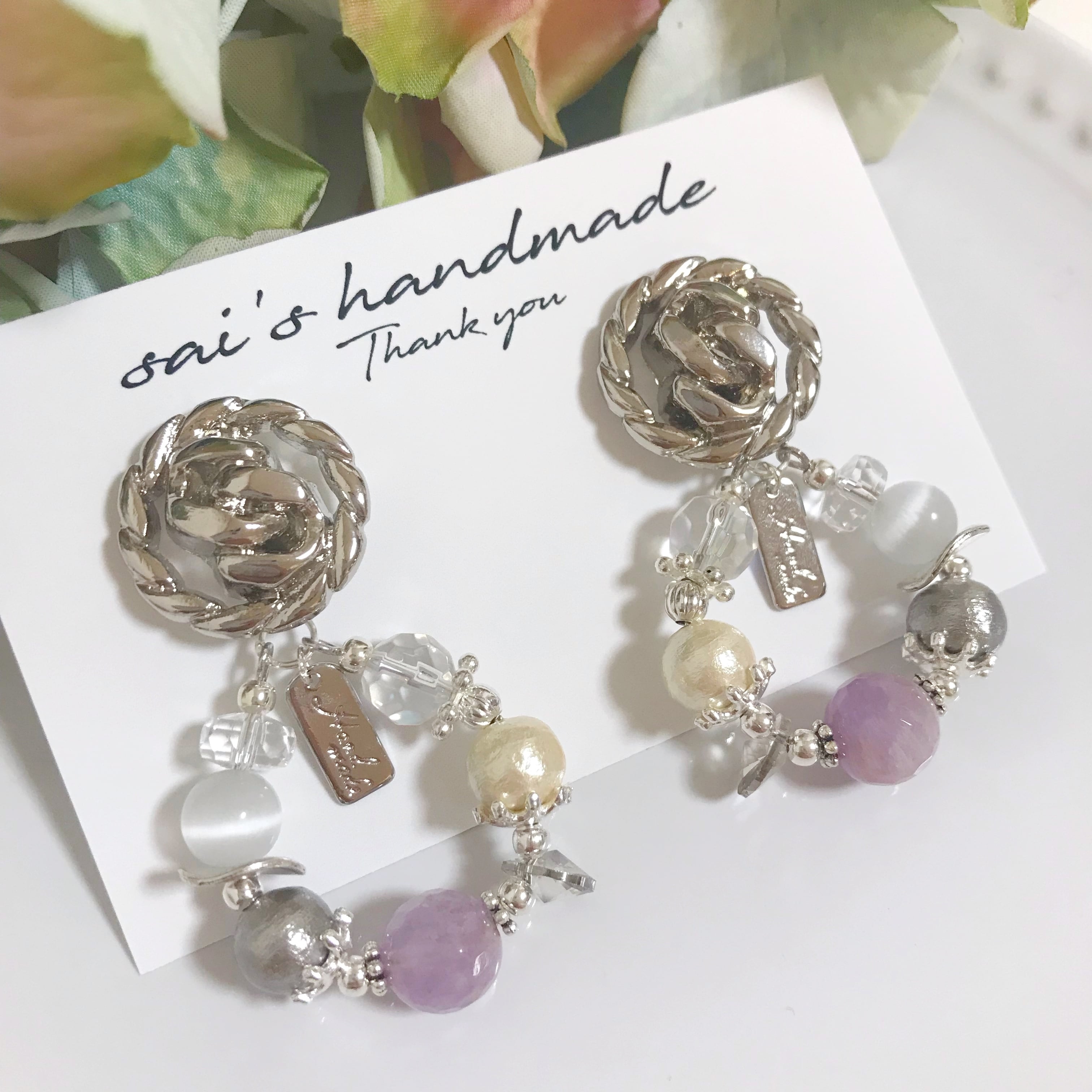 ☝︎樹脂ピアス、イヤリングご希望の方は商品ページ"パーツ金具"よりご希望の金具をカートに追加してくださいませ☺︎❤︎