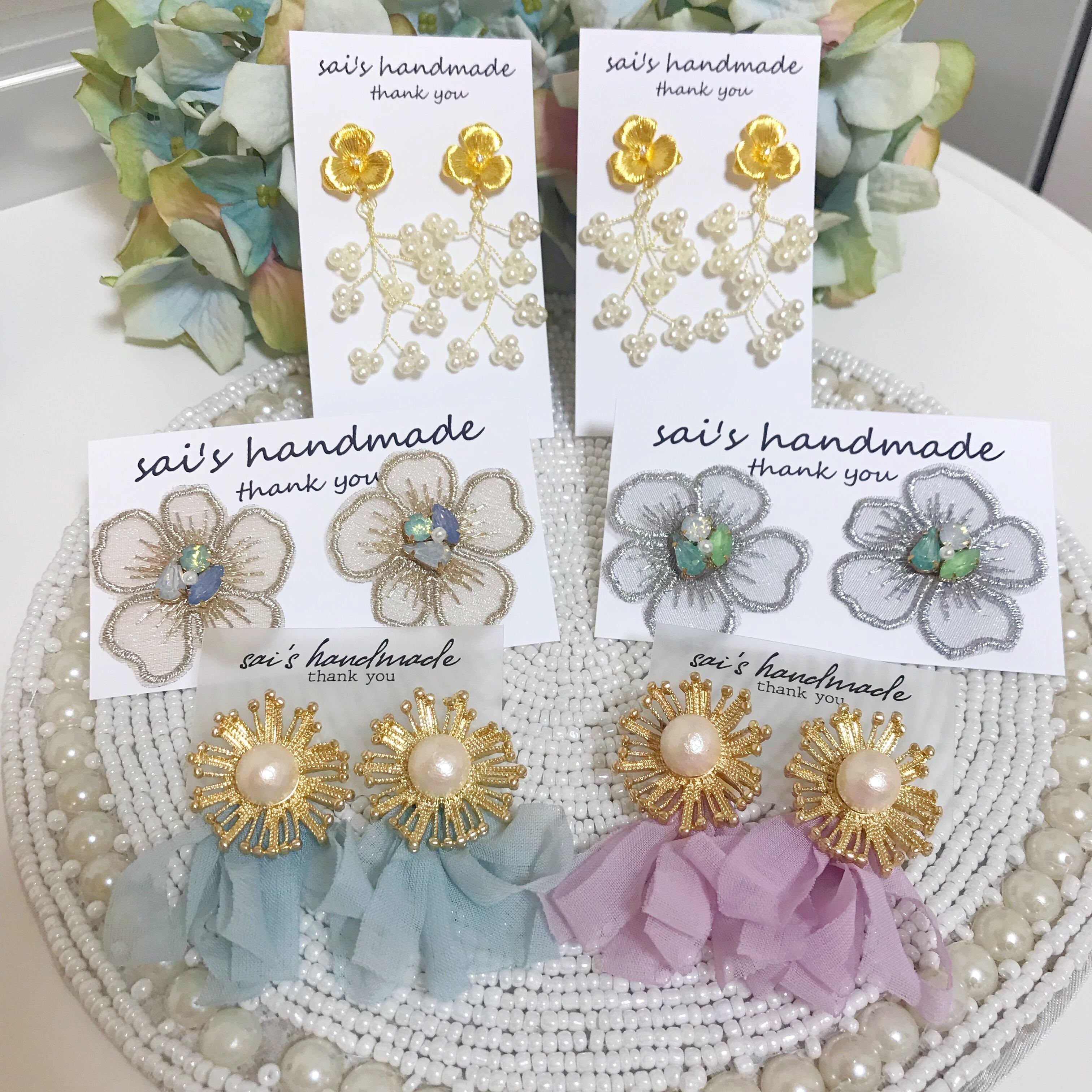 ✔︎フラワーポストピアス×ワイヤーパール×2