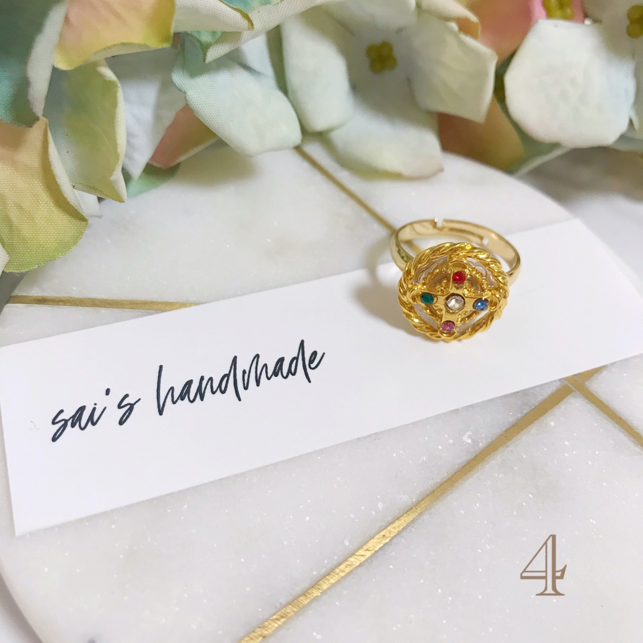 4 ゴールド×カラフルストーン