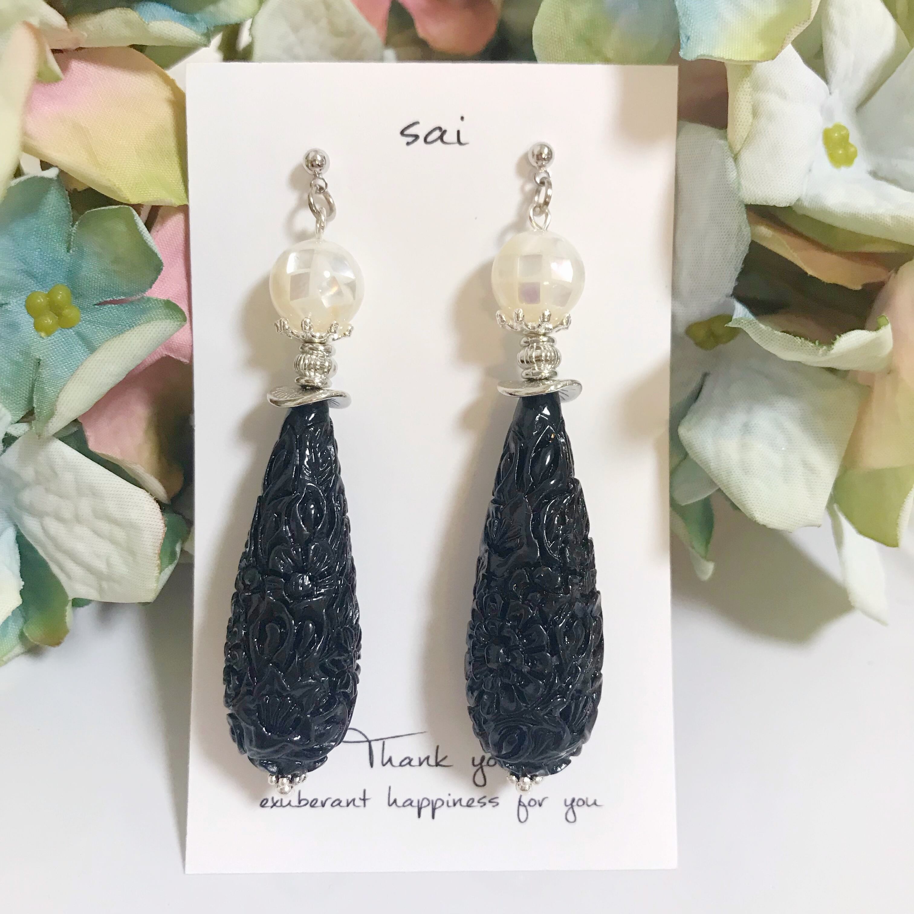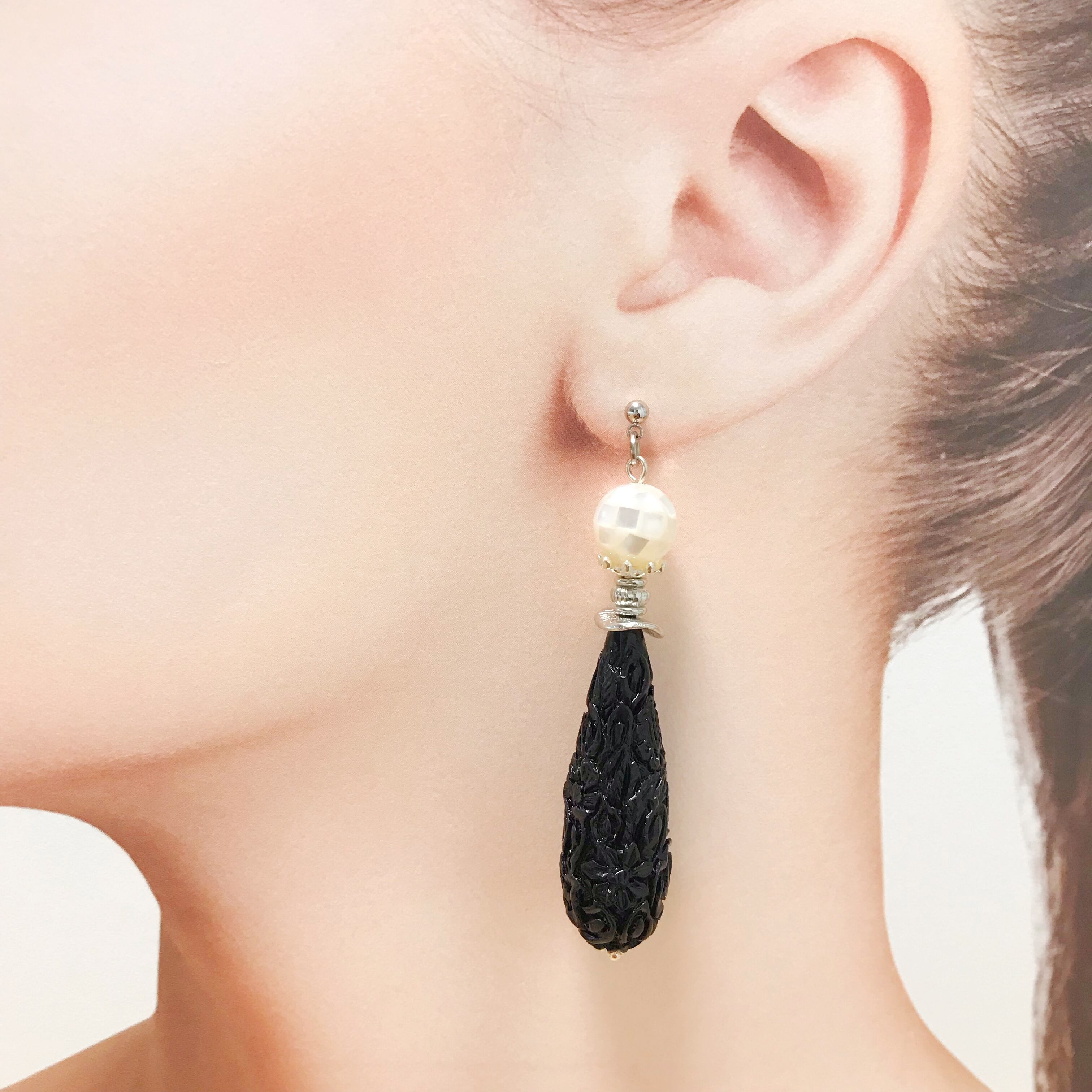 シックな珊瑚の雫にホワイトのモザイクシェル を合わせたpierce/earringです⌄̈⃝❤︎