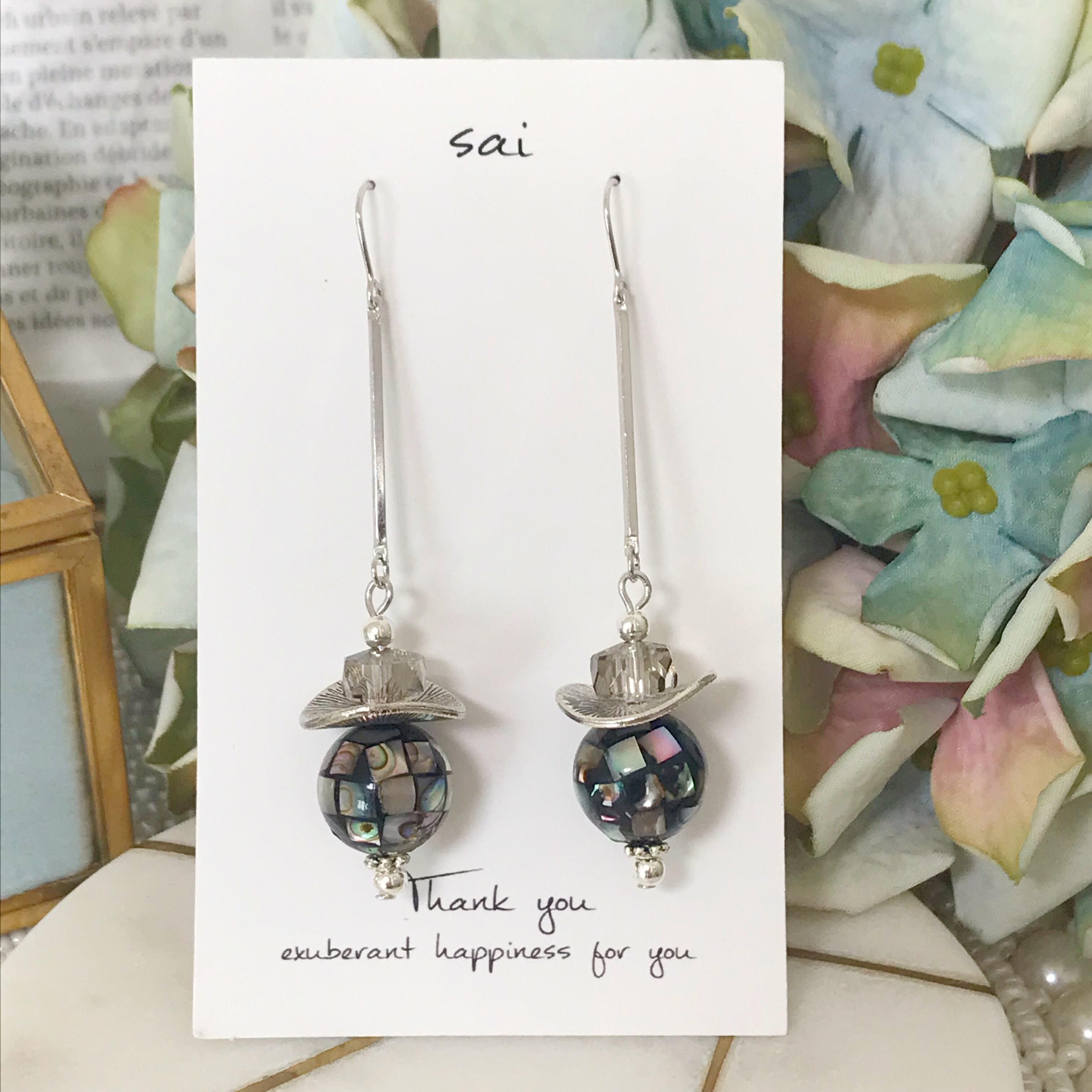 ブラックのモザイクシェルを使ったシンプルなpierce/earringです⌄̈⃝❁