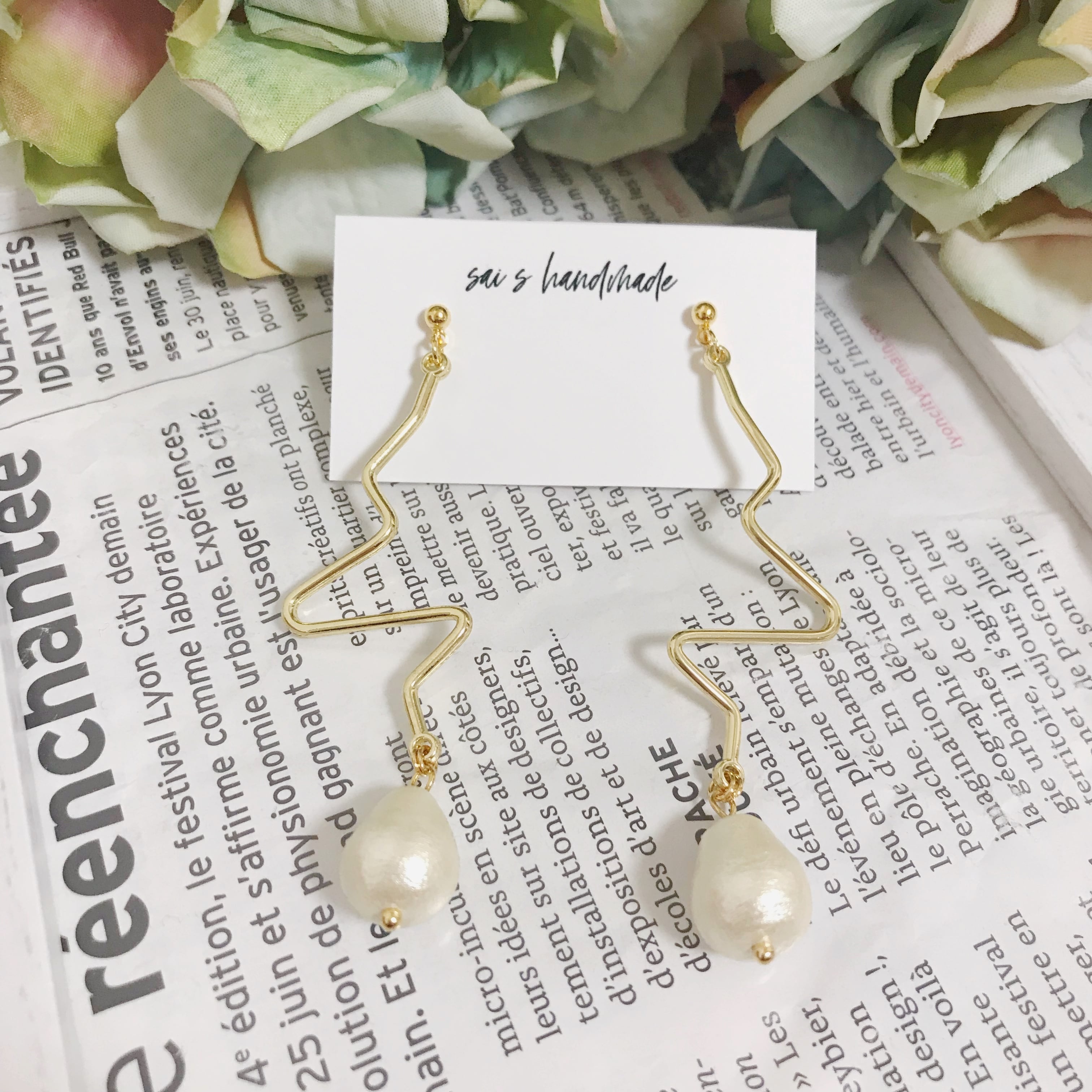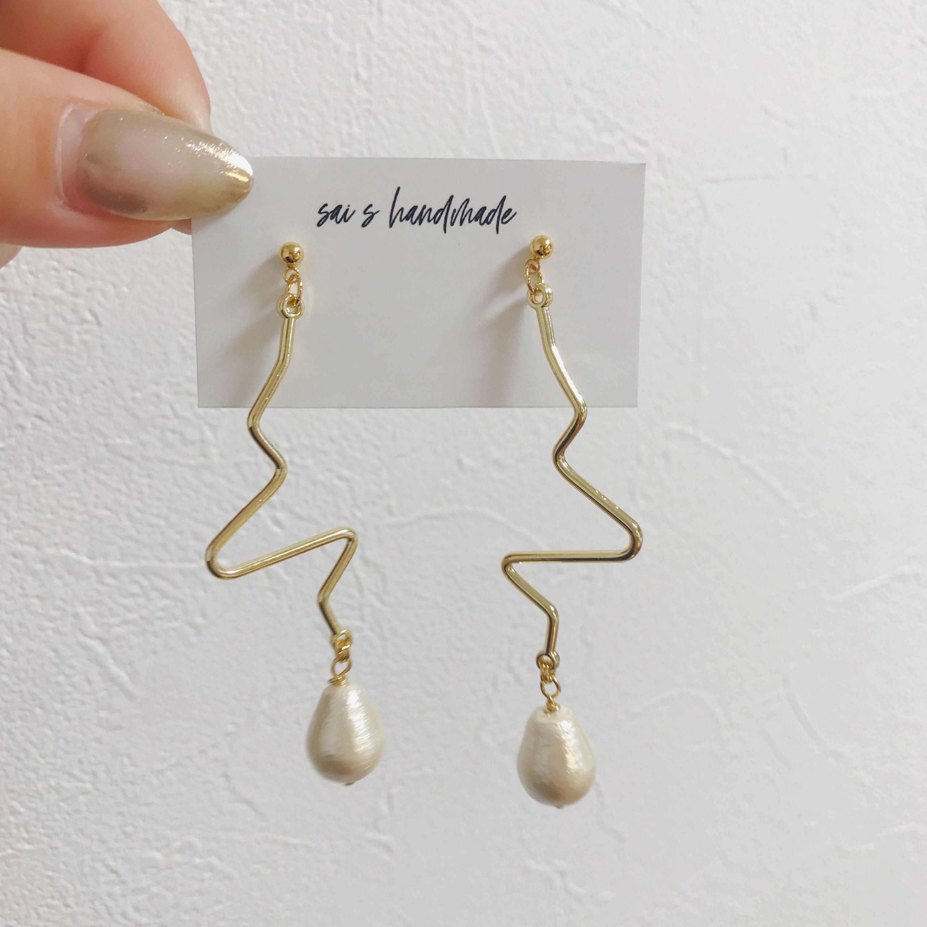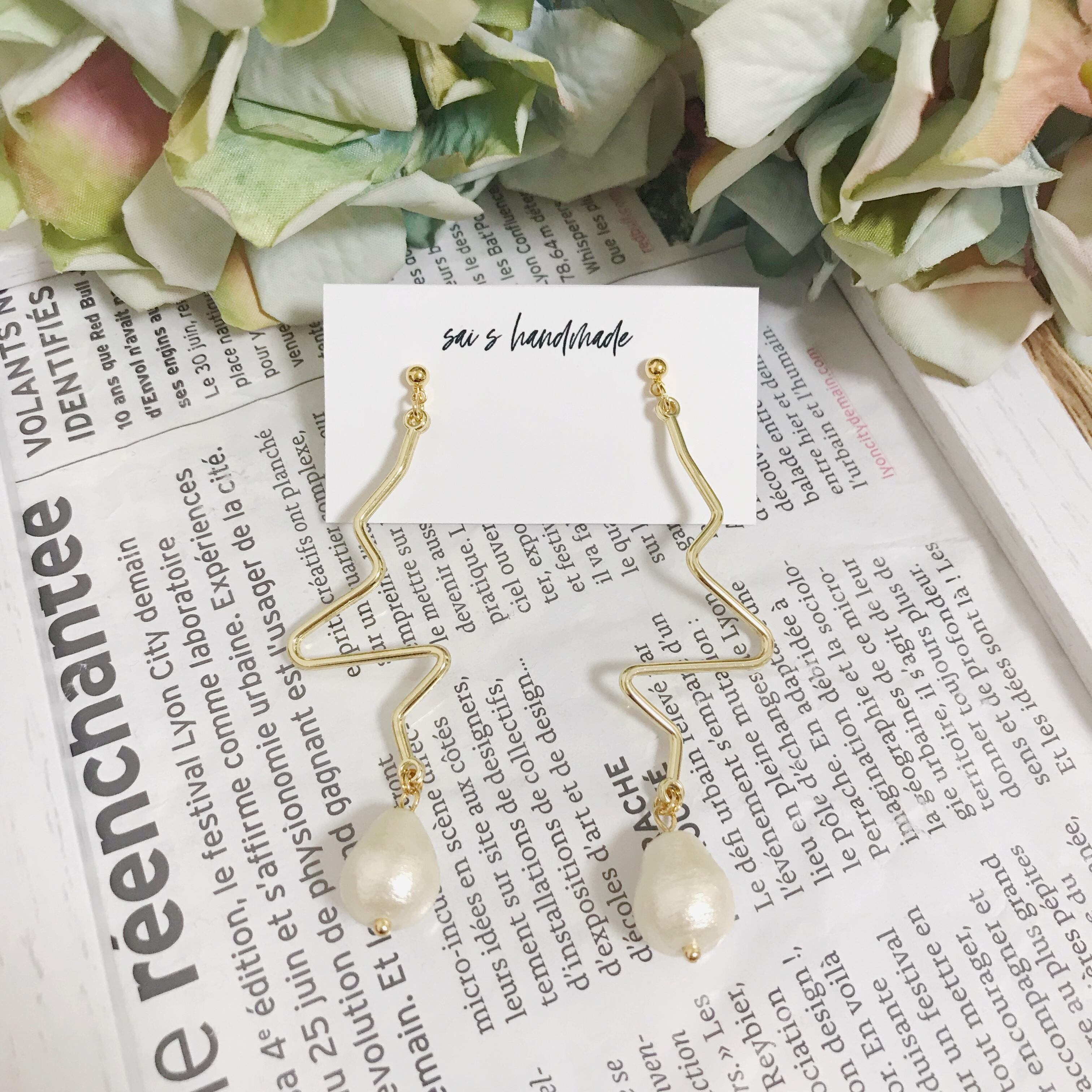 変形チャームに雫コットンパールを合わせたシンプルなpierce/earringです⌄̈⃝❁