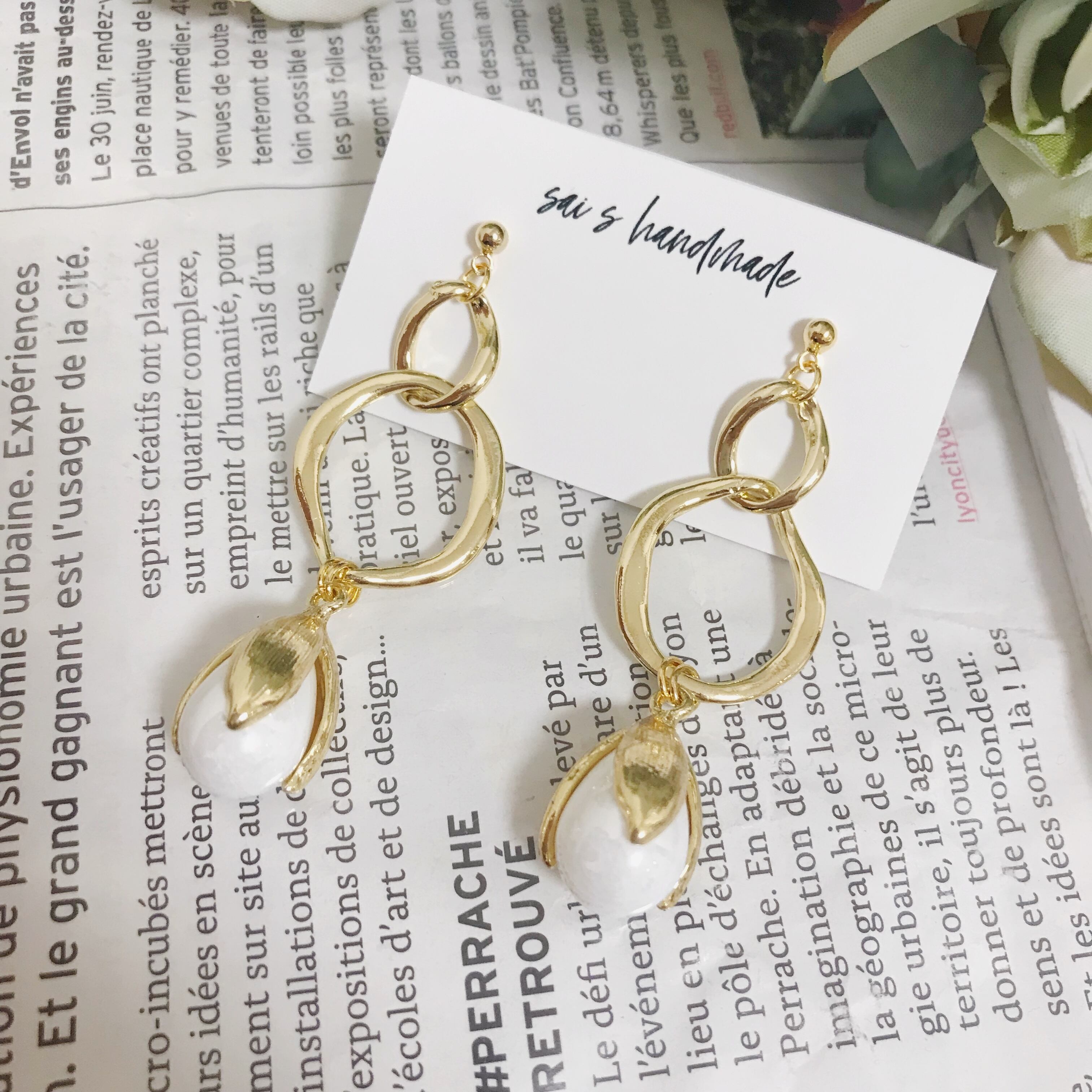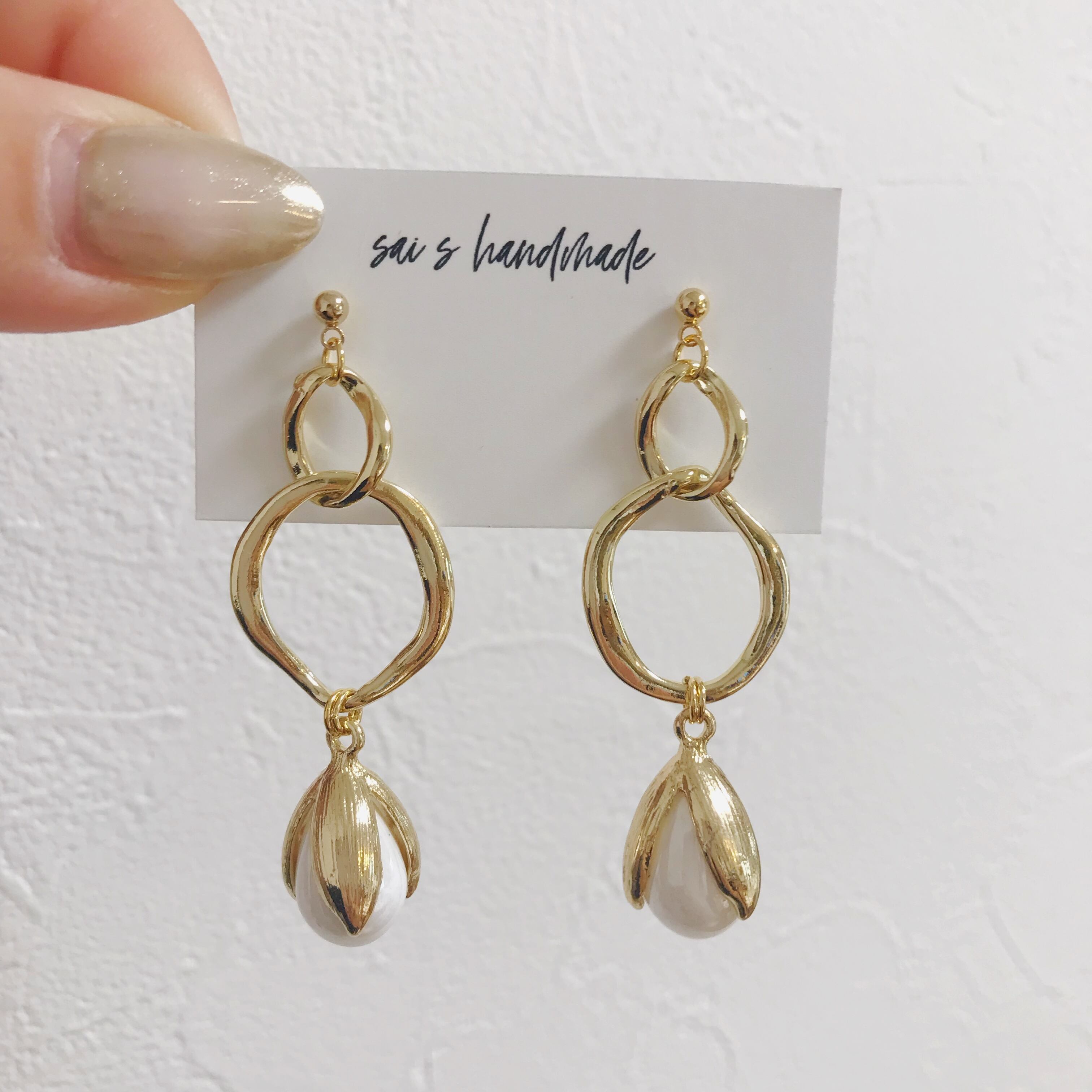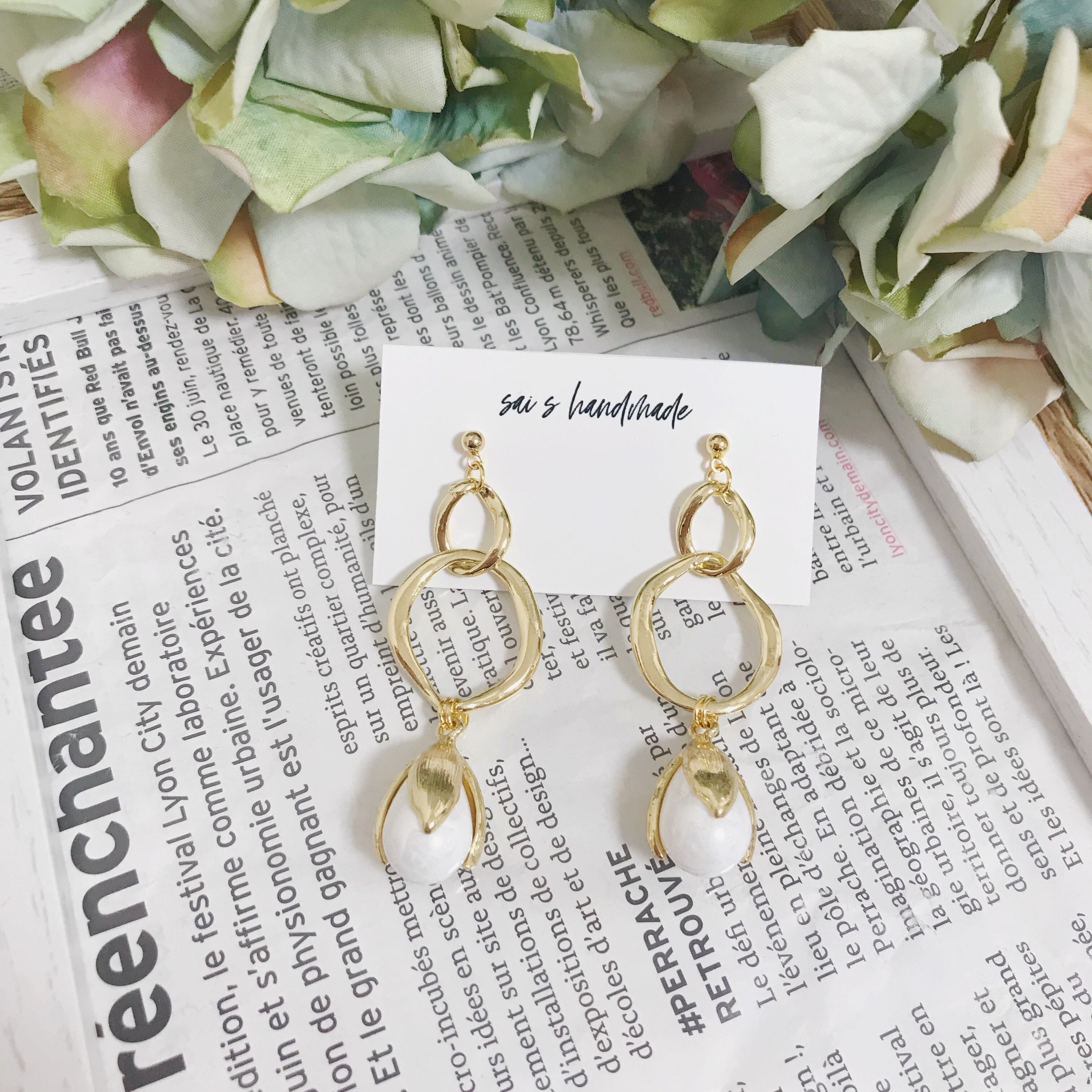 ゴールドの二連リングに蕾チャームを合わせたシンプルなpierce/earringです⌄̈⃝❁