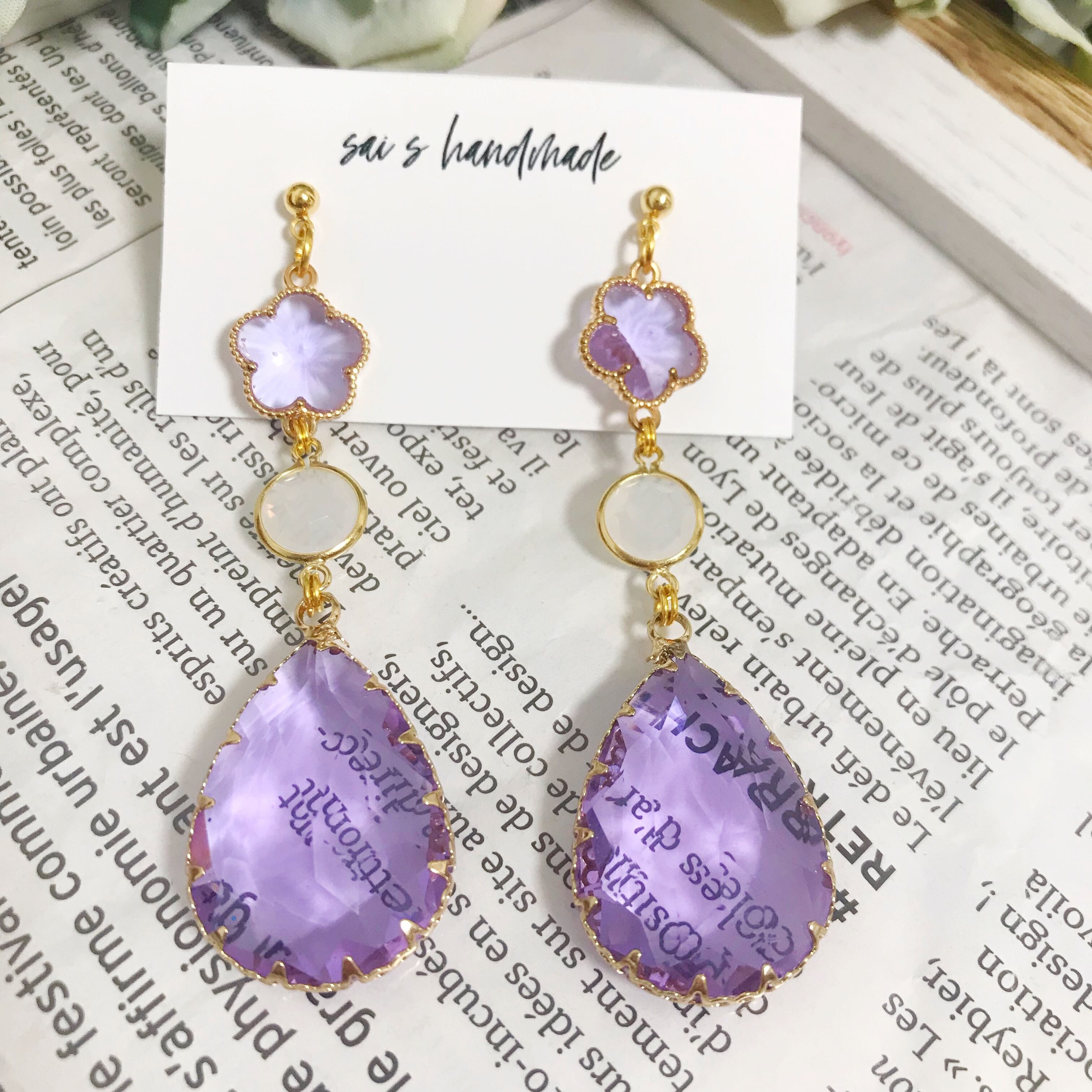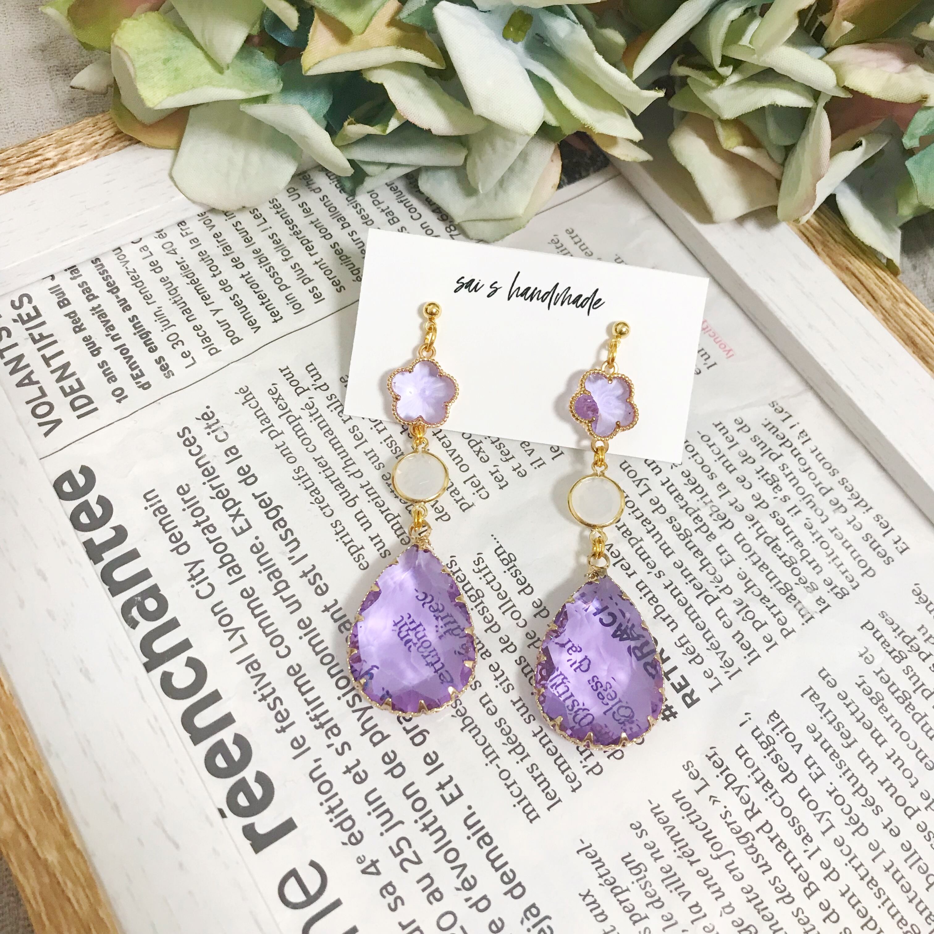 お花と雫の高品質なパープルガラスを合わせた華やかなpierce/earringです⌄̈⃝❁