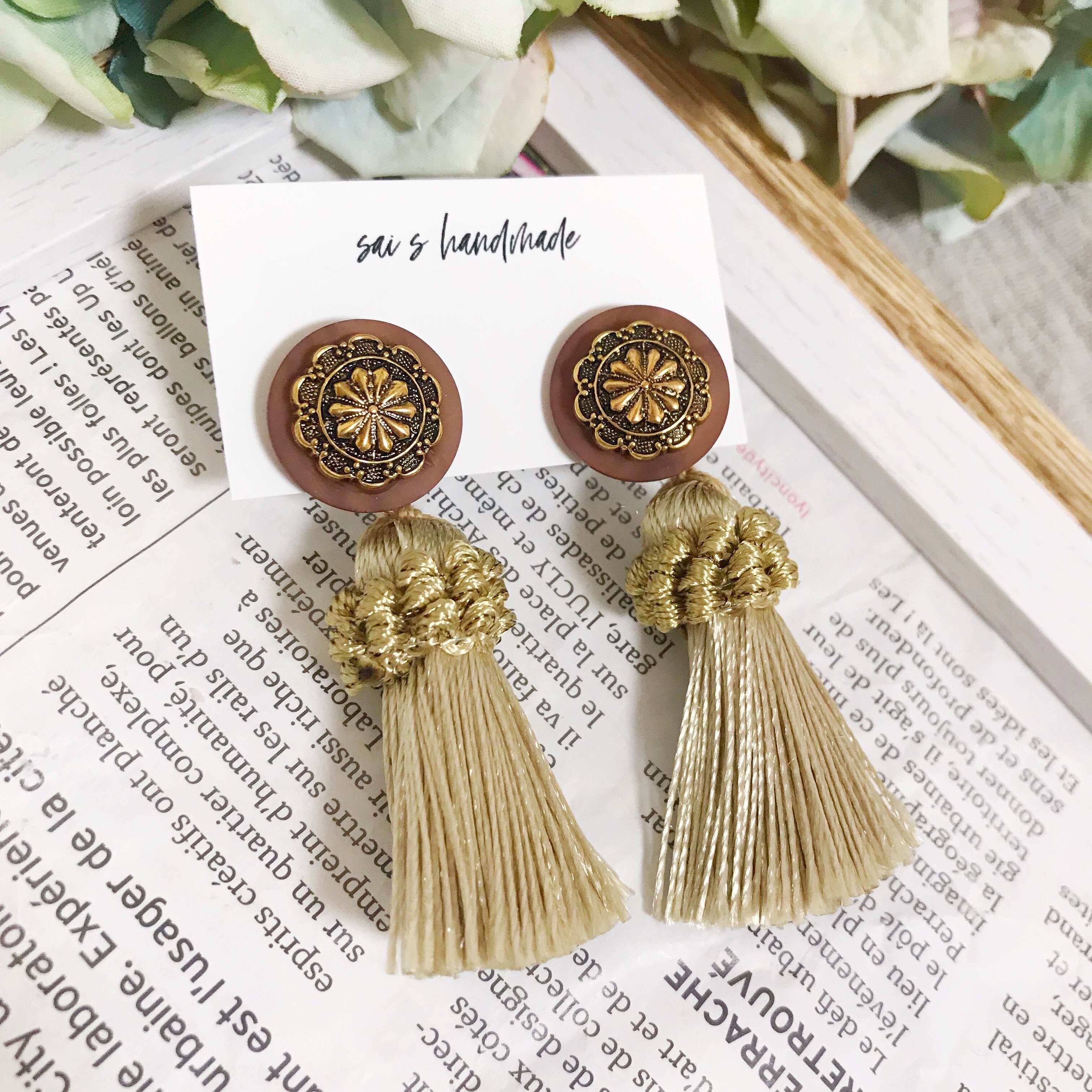 秋色の落ち着いたデザインのボタン×タッセル⌄̈⃝❤︎