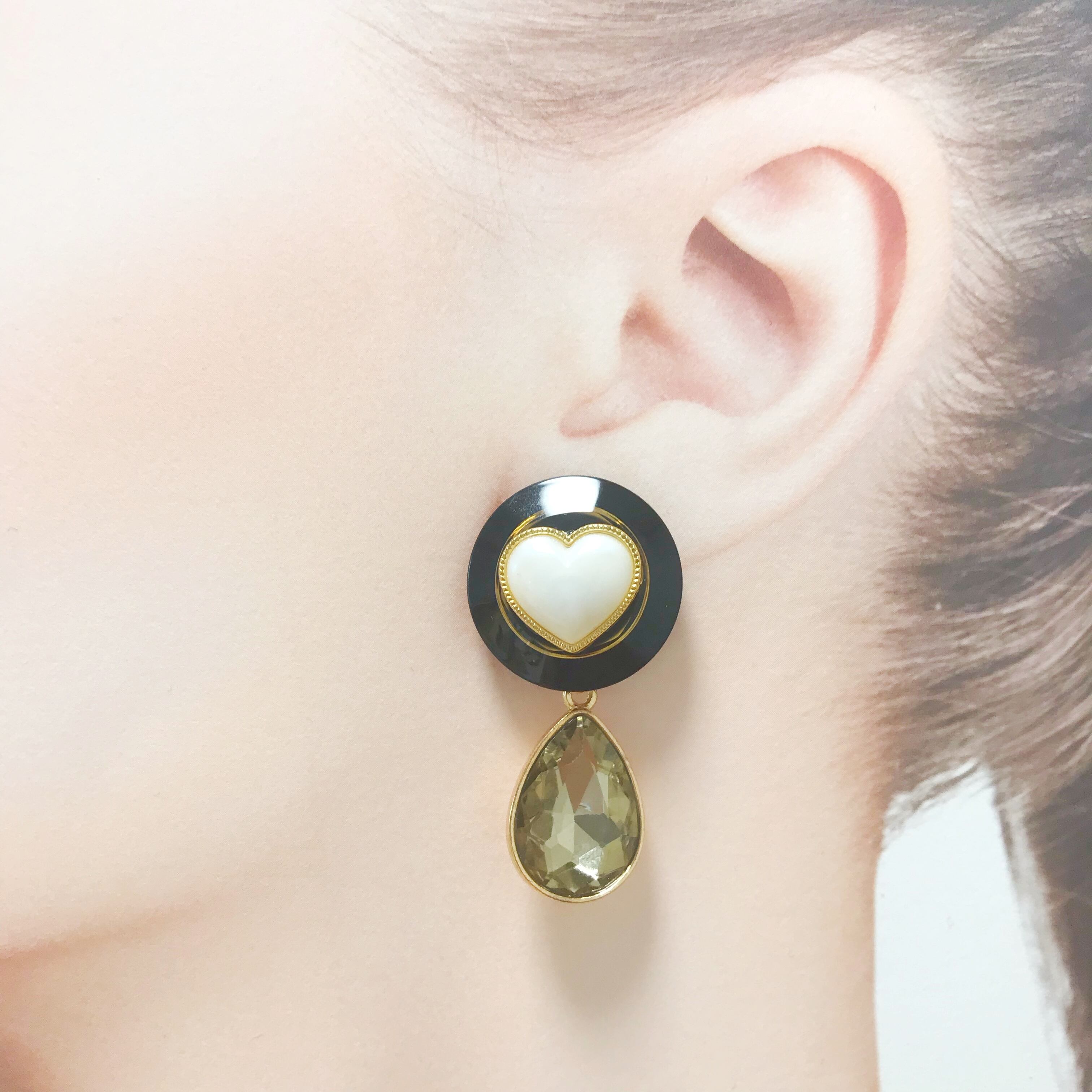 ハートの重ねボタンにガラスチャームを合わせました⌄̈⃝❤︎