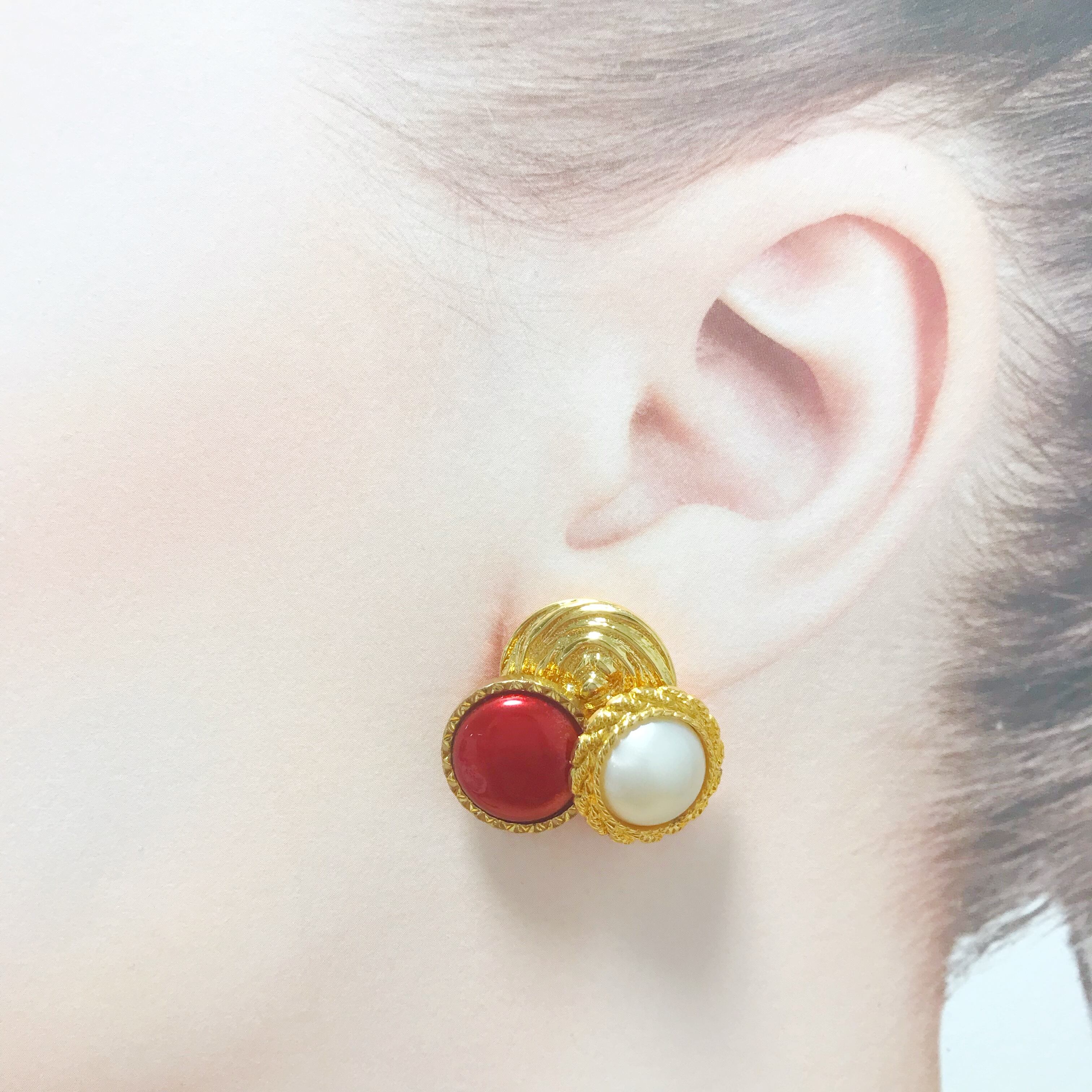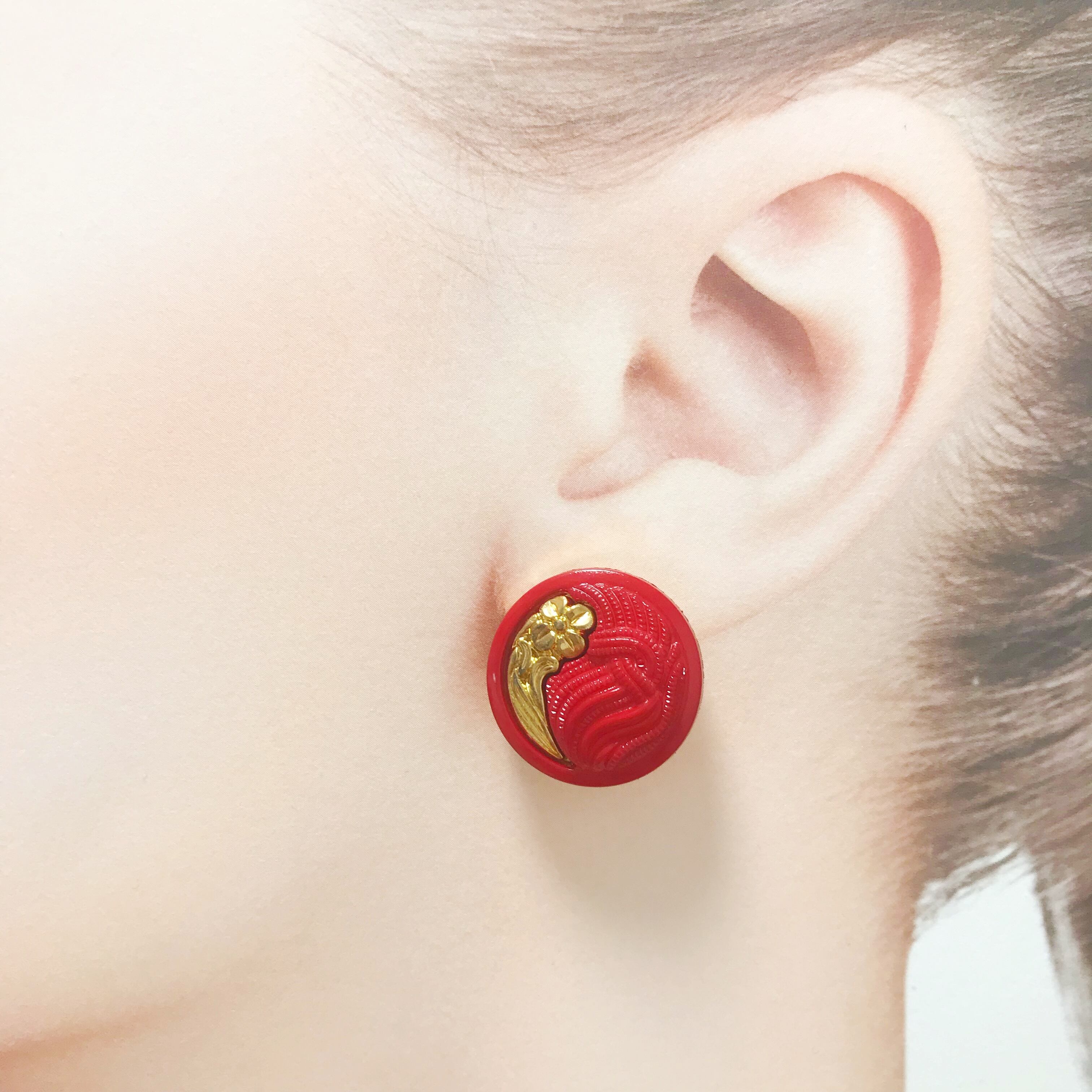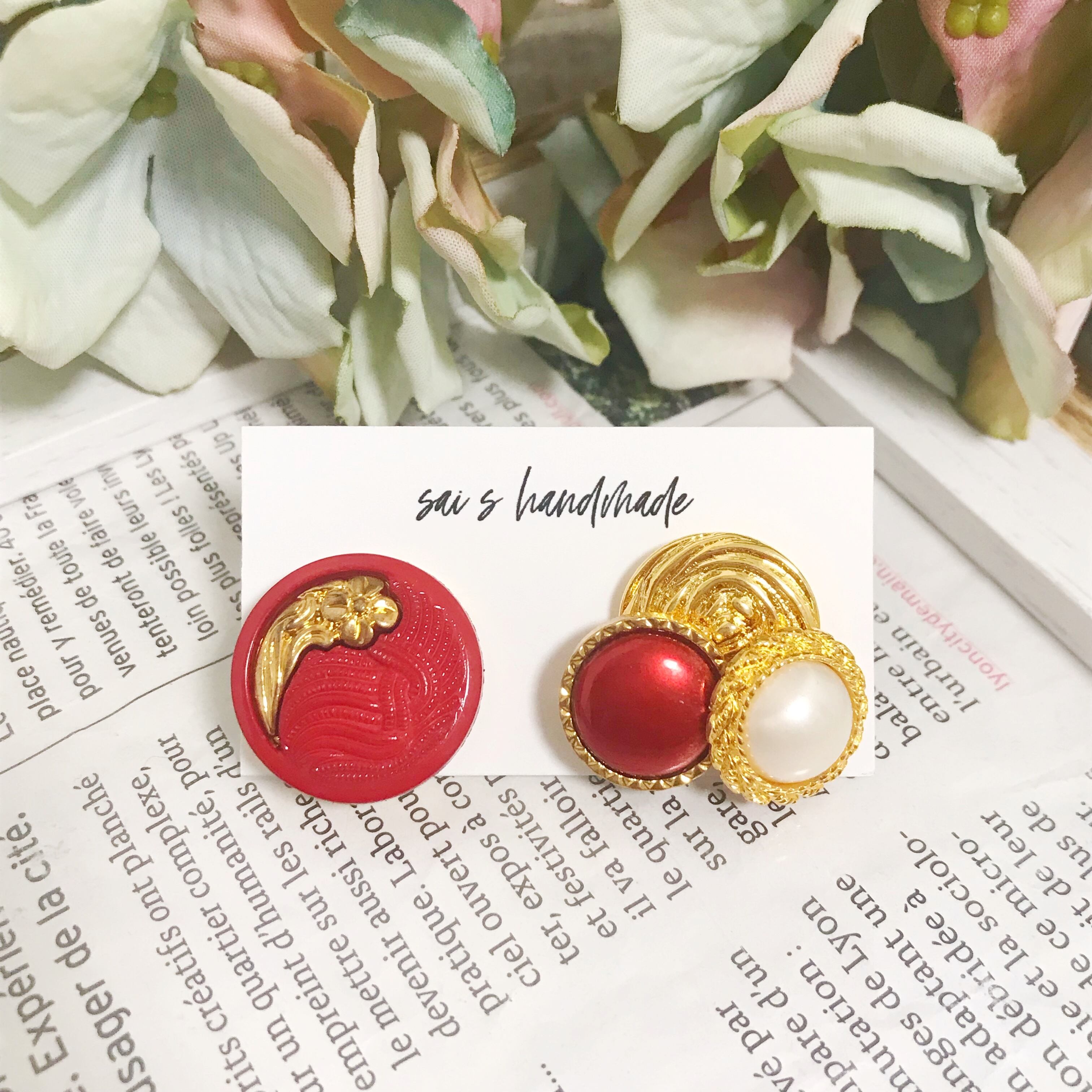 ポーランドのビンテージボタンを使ったアシメントリーpierce/earringです⌄̈⃝❤︎