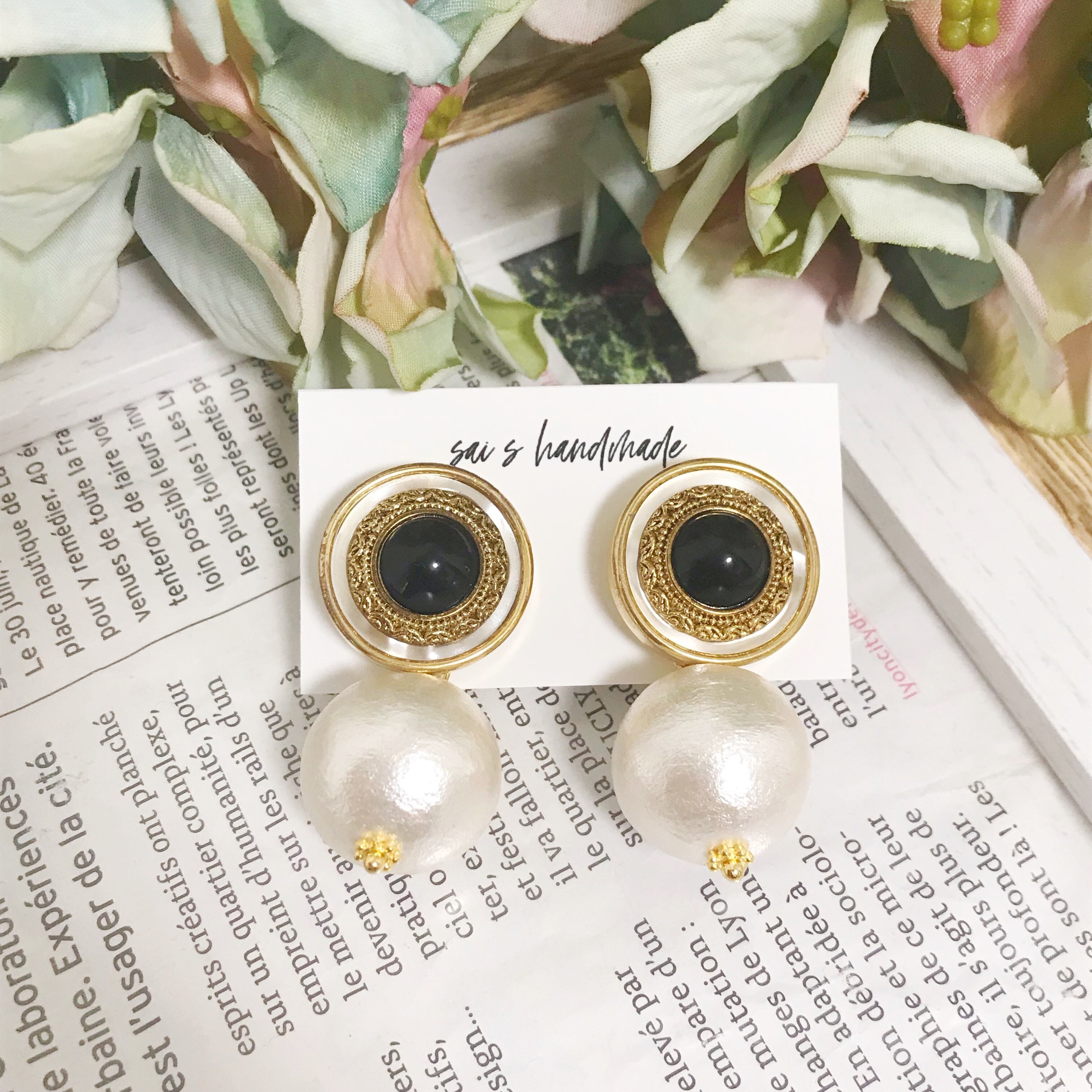 ビンテージボタン×大ぶりのコットンパール⌄̈⃝❤︎