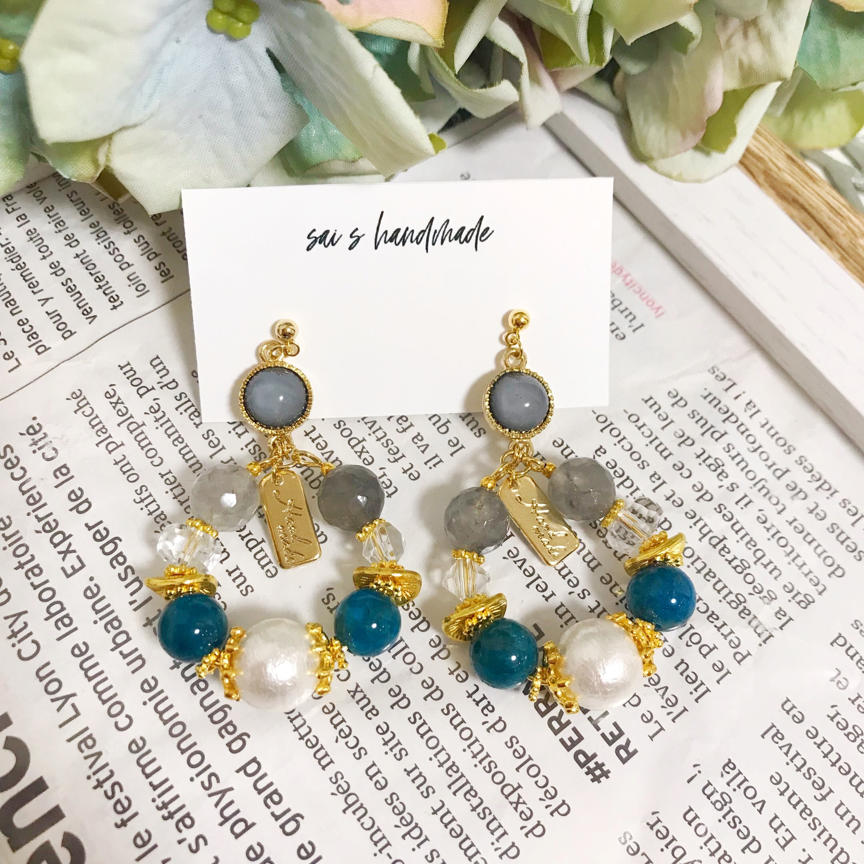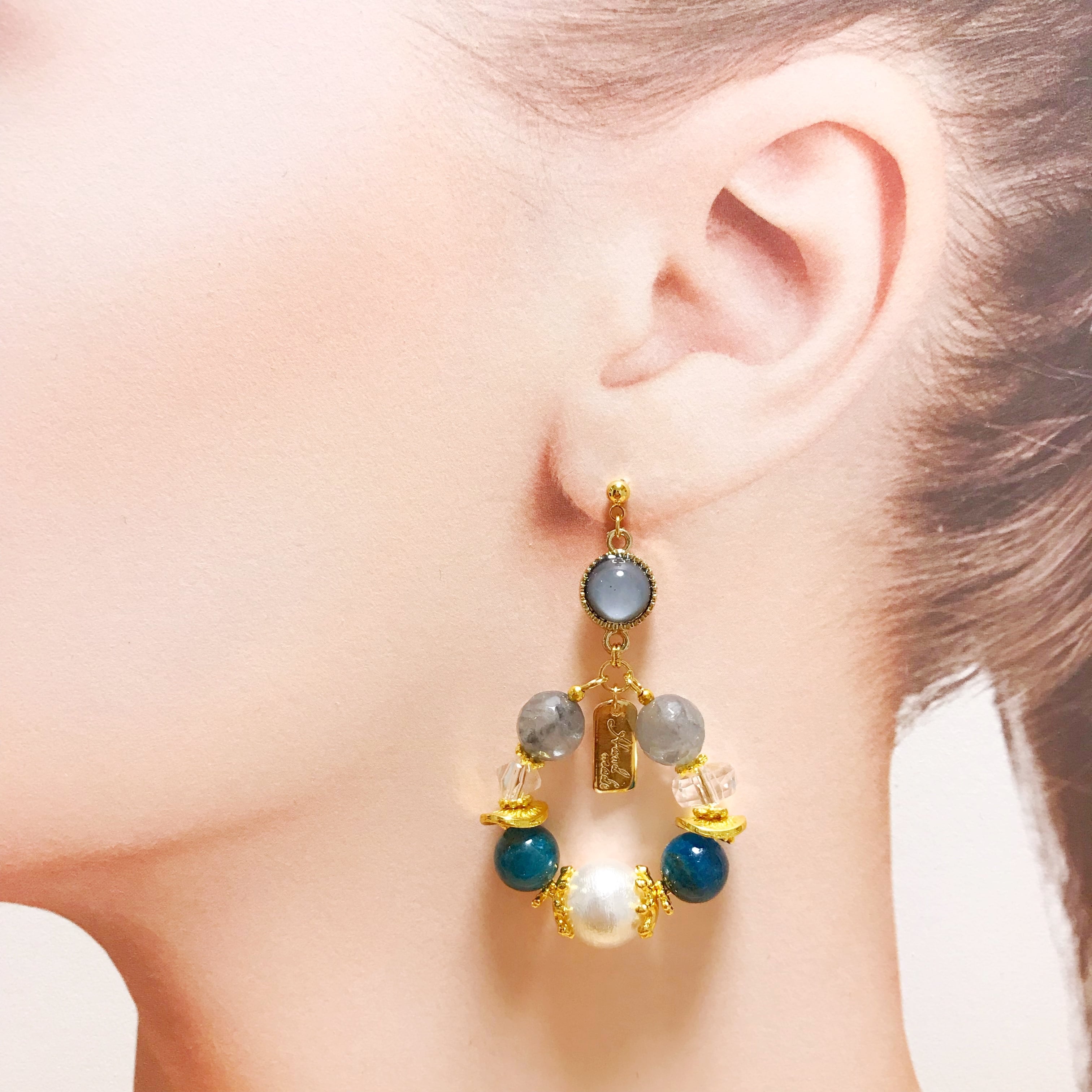 天然石×ガラス×コットンパールの華やかなフープデザインです⌄̈⃝❤︎