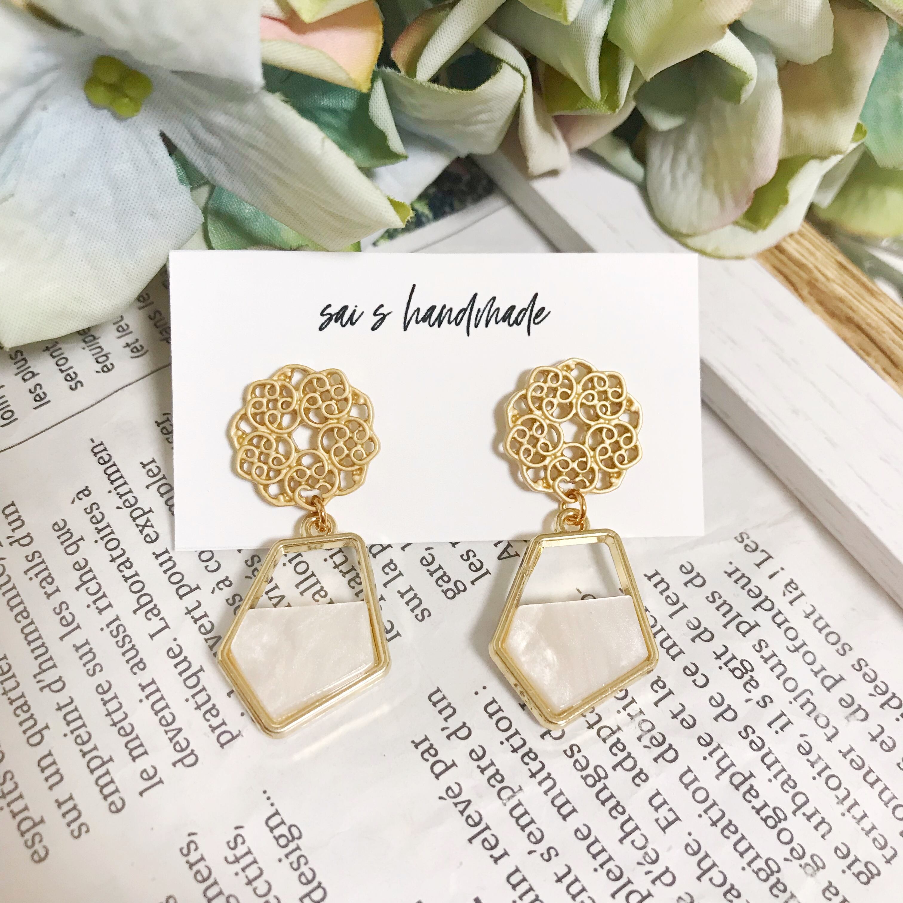 レースのデザインポスト×マーブルチャーム⌄̈⃝❤︎