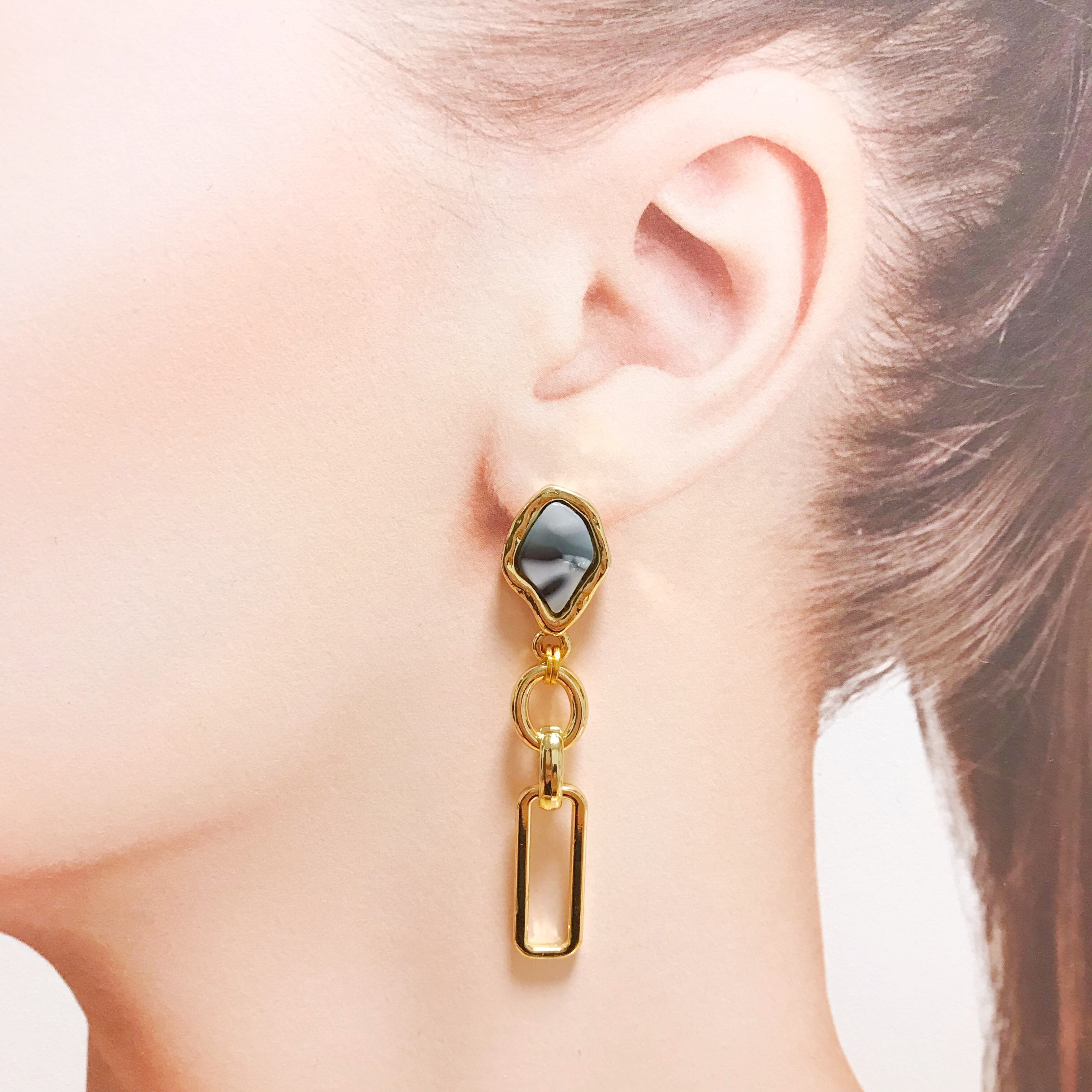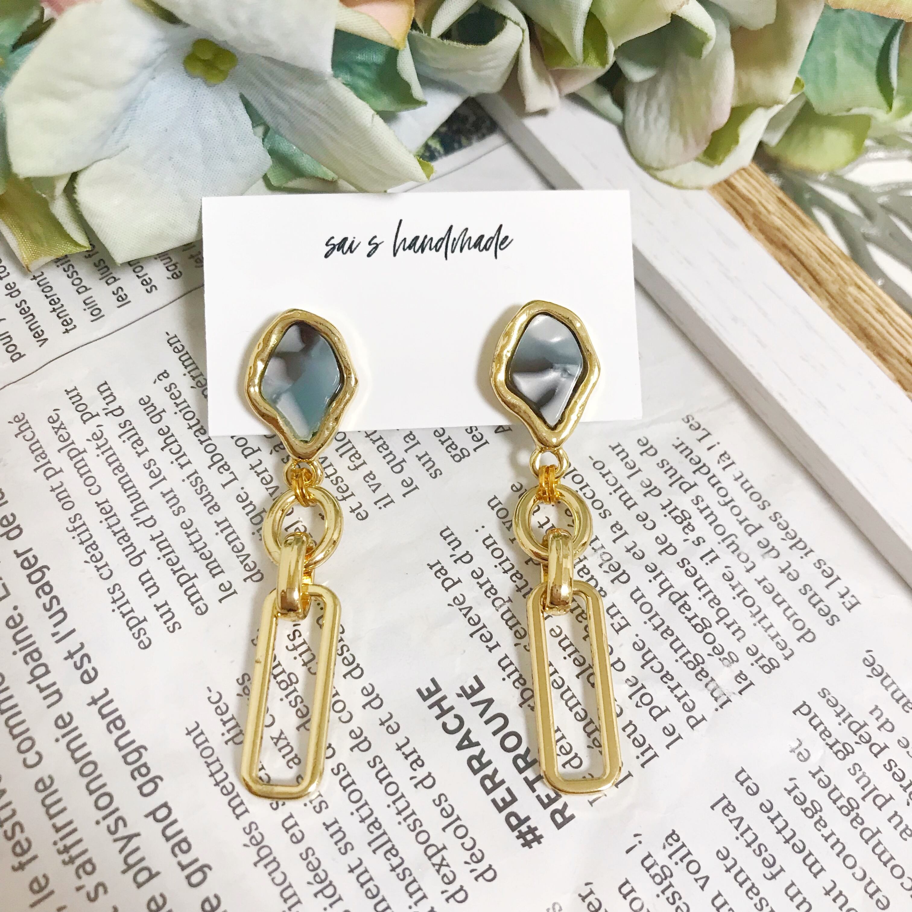 シェル調のデザインポストピアスに、幾何学チャームを合わせました⌄̈⃝❁