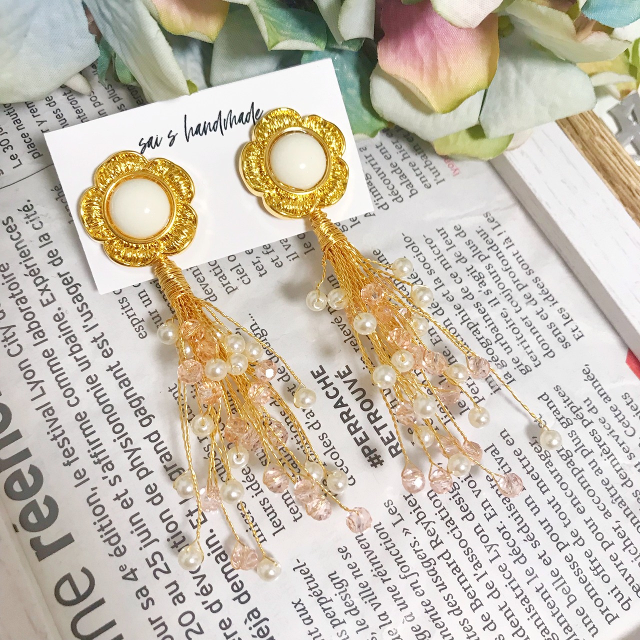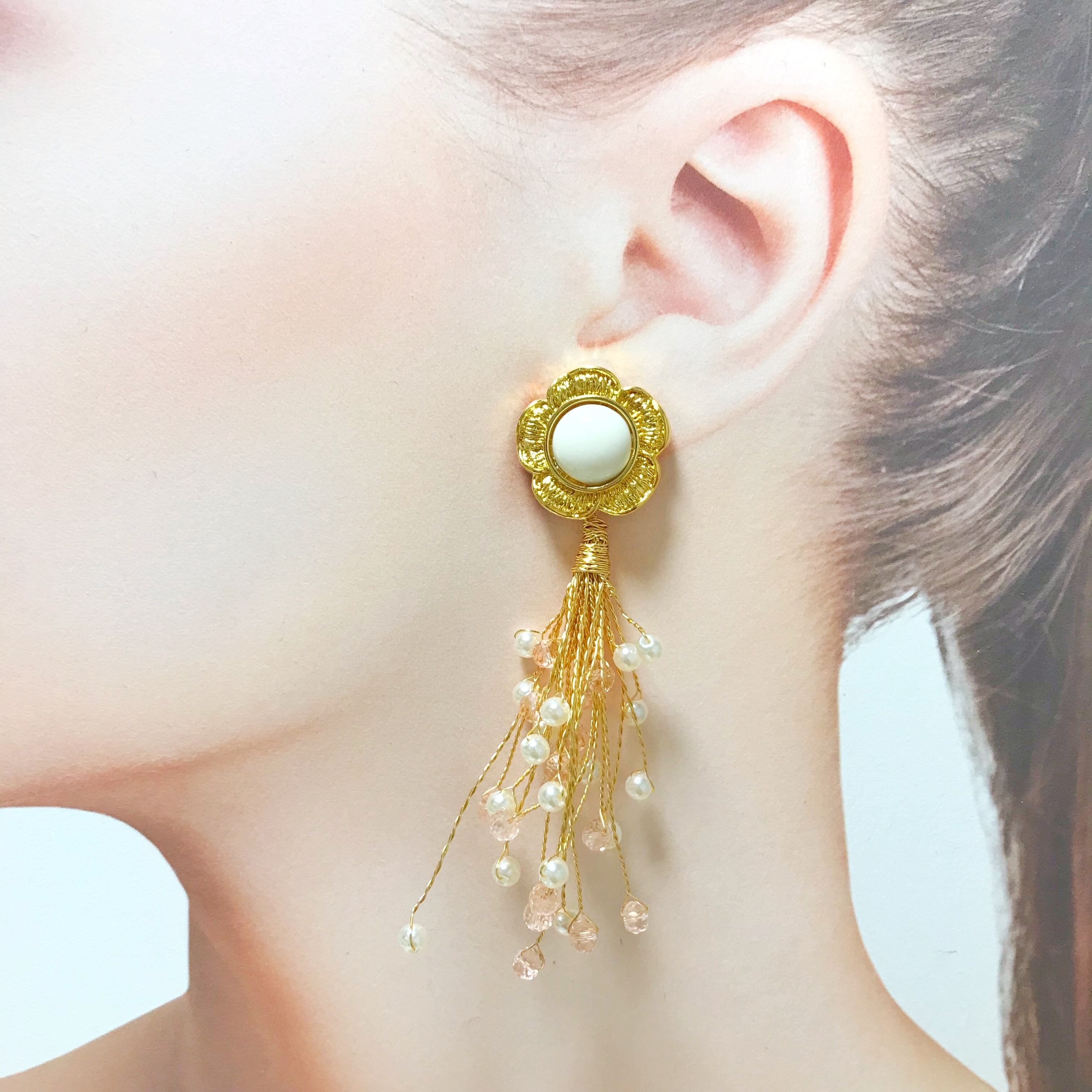 インポートのフラワーのボタンに、ワイヤーパールを合わせた華やかなpierce/earringです⌄̈⃝❤︎