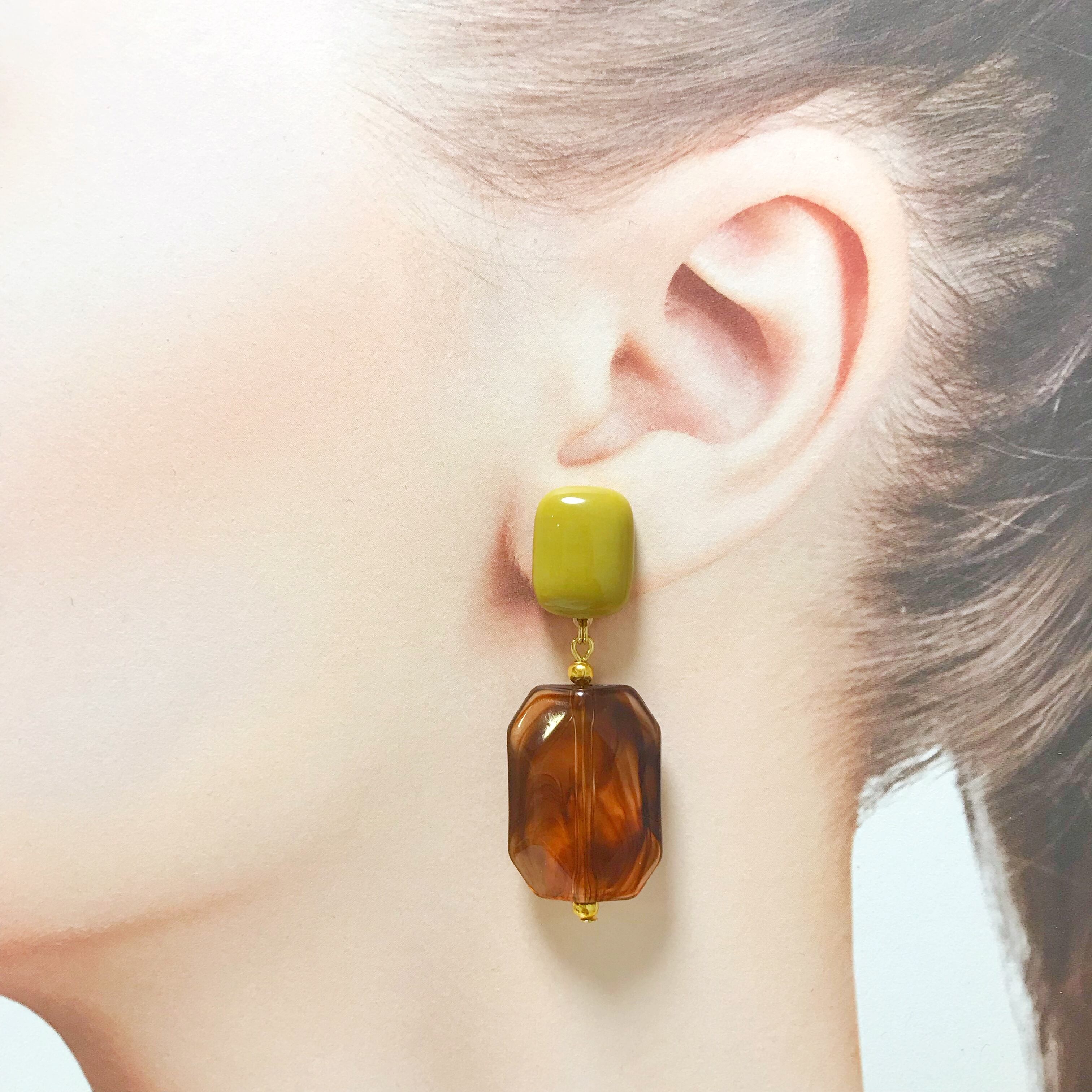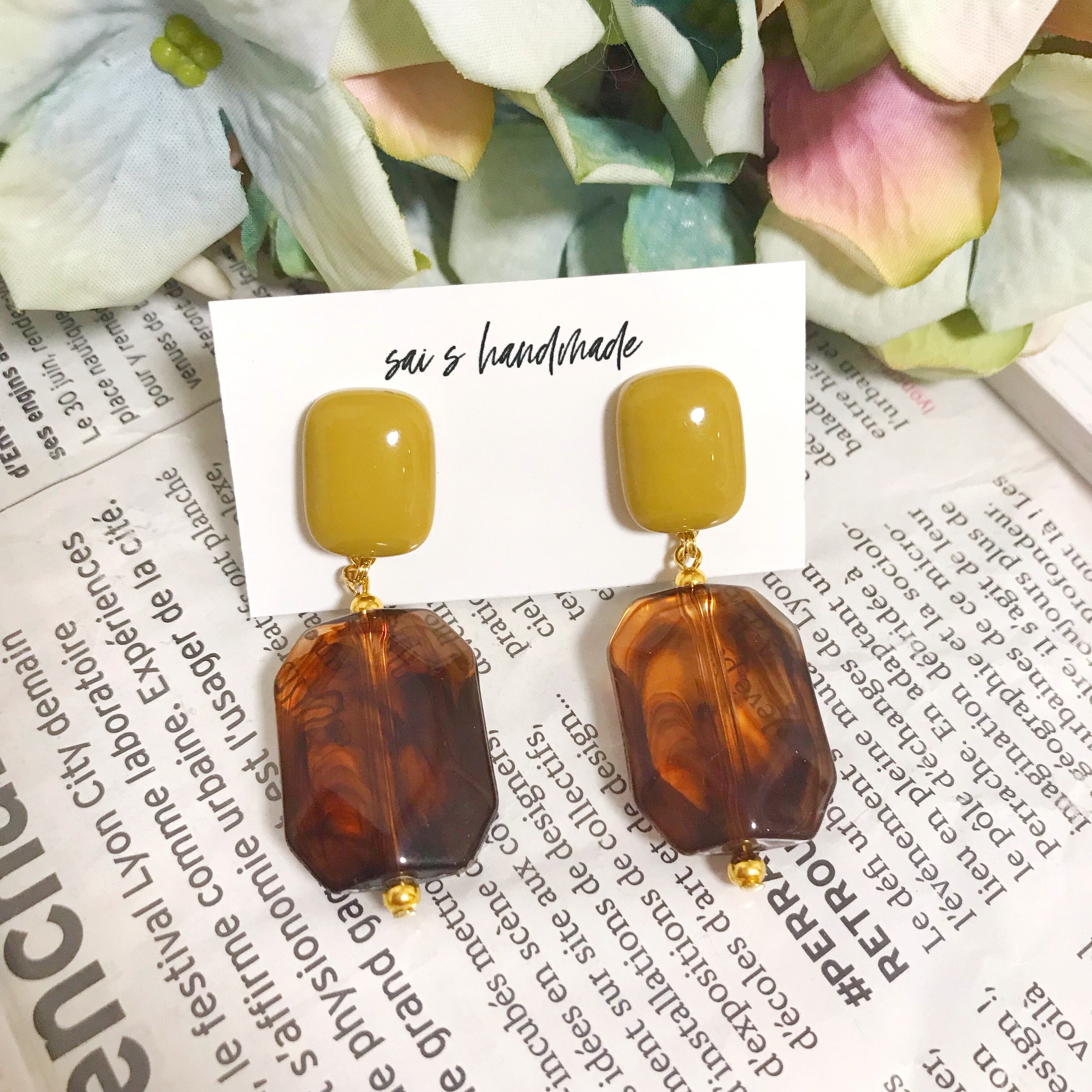 くすみカラーのマスタードとべっ甲が秋におすすめのpierce/earringです⌄̈⃝❤︎